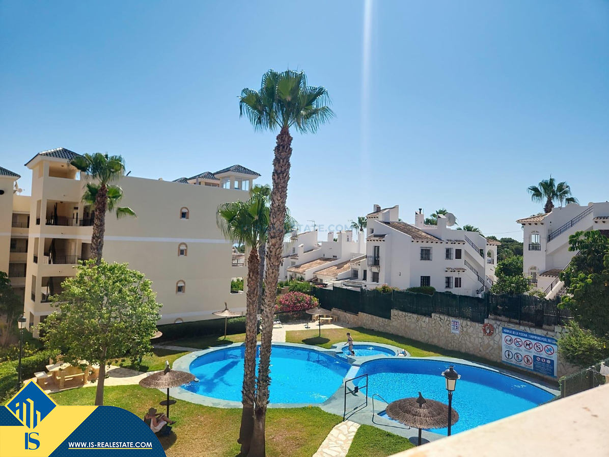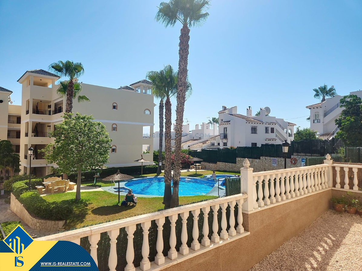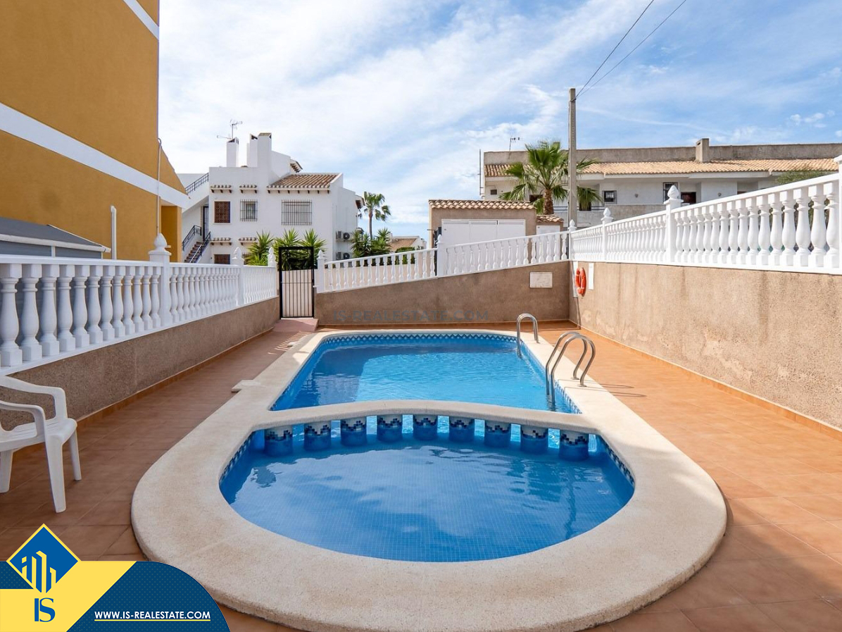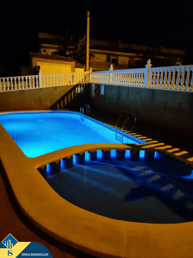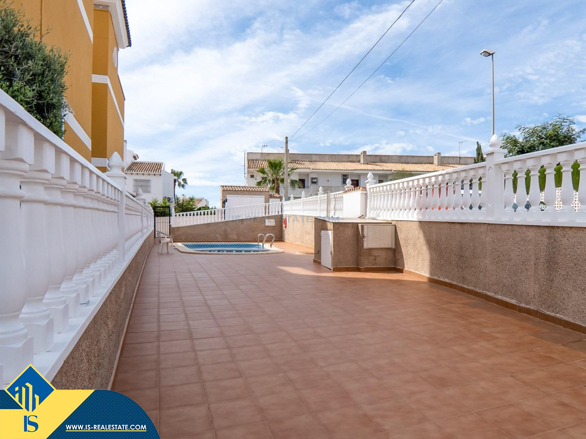 3-jų kambarių bungalas su bendru baseinu, Ispanijoje, Alicante provincijoje, Orihuela Costa mieste, bendras plotas 69 m², 4 kilometrai iki jūros, 55 kilometrai iki Alicante oro uosto. Turtui priklauso bendras baseinas, terasa. Netoli turto yra parduotuvės, restoranai, autobusų stotelės, vaikų zonos, degalinės, žalios zonos, kavinės, ligoninė