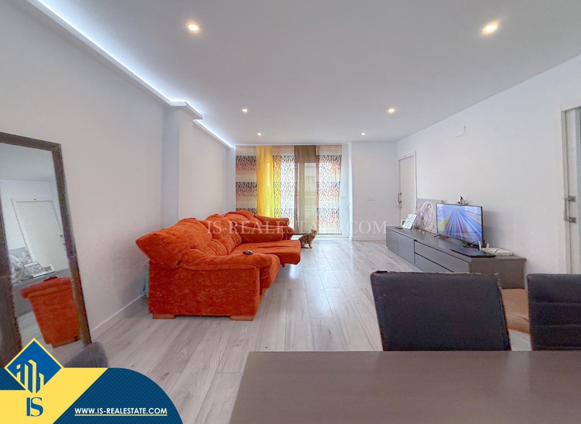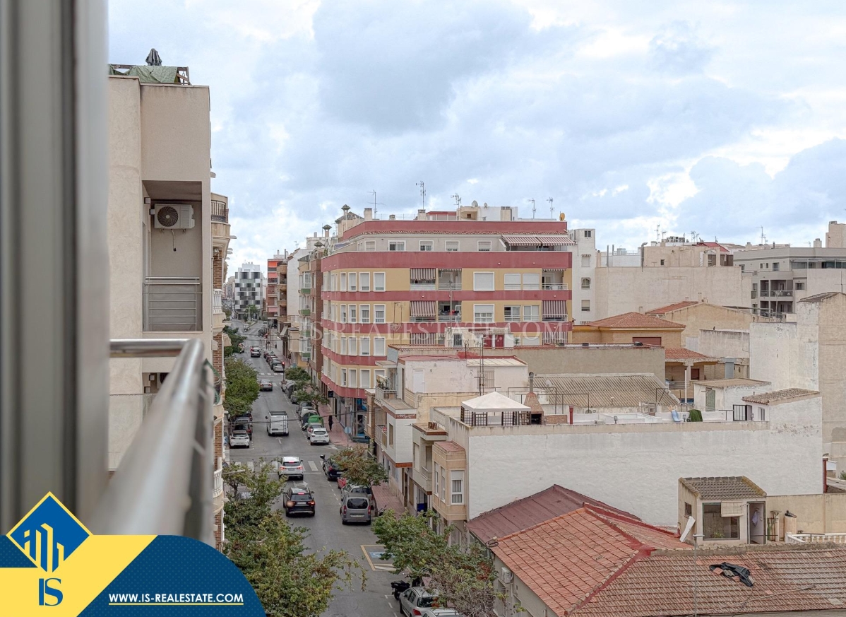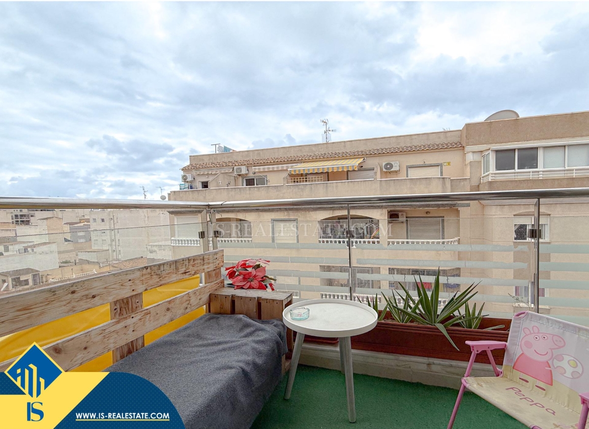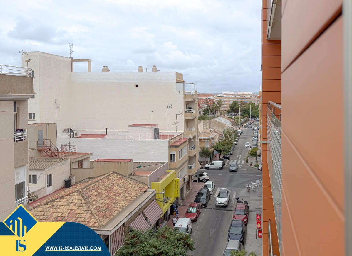 4-ių kambarių renovuotas apartamentas su terasa, Ispanijoje, Alicante provincijoje, Torrevieja mieste, bendras plotas 132 m², 150 metrų iki jūros, 45 kilometrai iki Alicante oro uosto. Turtui priklauso terasa, liftas, garažas. Netoli turto yra parduotuvės, restoranai, vaistinės, autobusų stotelės, degalinės, žalios zonos, kavinės