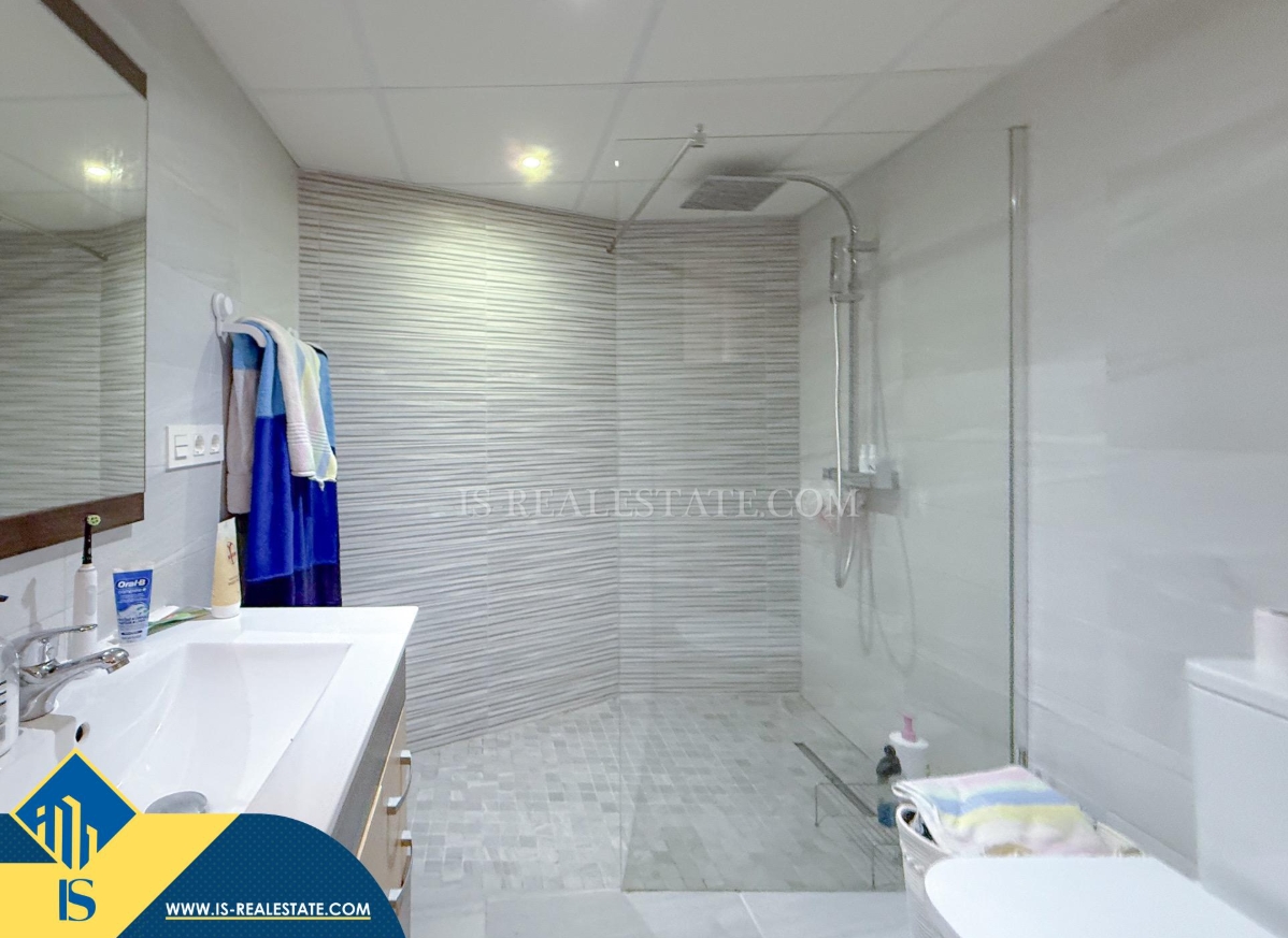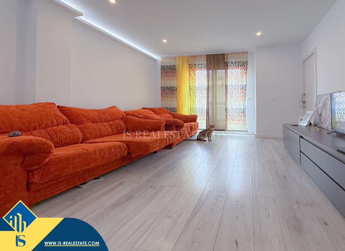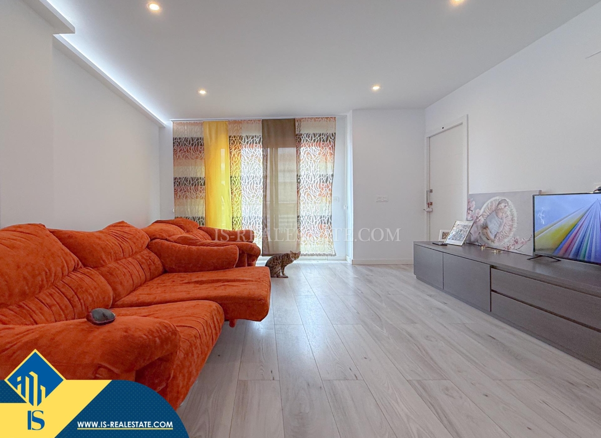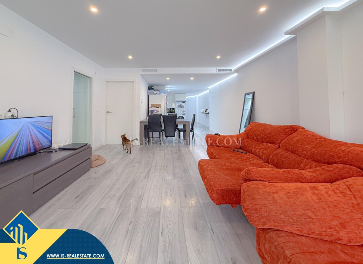 4-ių kambarių renovuotas apartamentas su terasa, Ispanijoje, Alicante provincijoje, Torrevieja mieste, bendras plotas 132 m², 150 metrų iki jūros, 45 kilometrai iki Alicante oro uosto. Turtui priklauso terasa, liftas, garažas. Netoli turto yra parduotuvės, restoranai, vaistinės, autobusų stotelės, degalinės, žalios zonos, kavinės