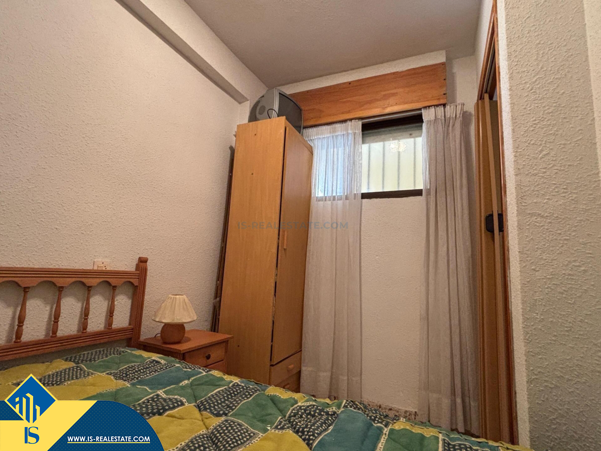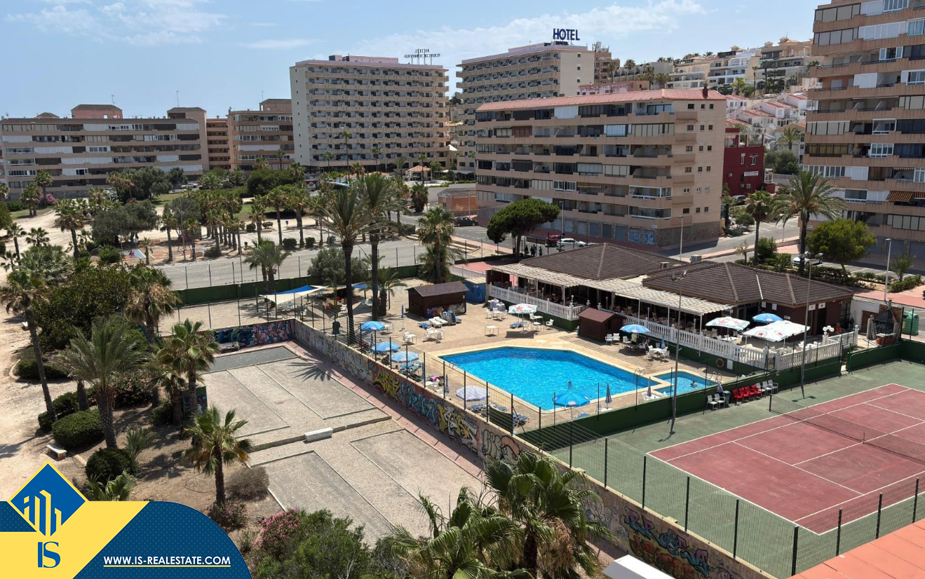 2-jų kambarių apartamentas su bendru baseinu, Ispanijoje, Alicante provincijoje, Torrevieja mieste, bendras plotas 32 m², 70 metrų iki jūros, 45 kilometrai iki Alicante oro uosto. Turtui priklauso bendras baseinas, terasa, liftas, vieta automobiliui. Netoli turto yra parduotuvės, restoranai, vaistinės, autobusų stotelės, degalinės, žalios zonos, kavinės