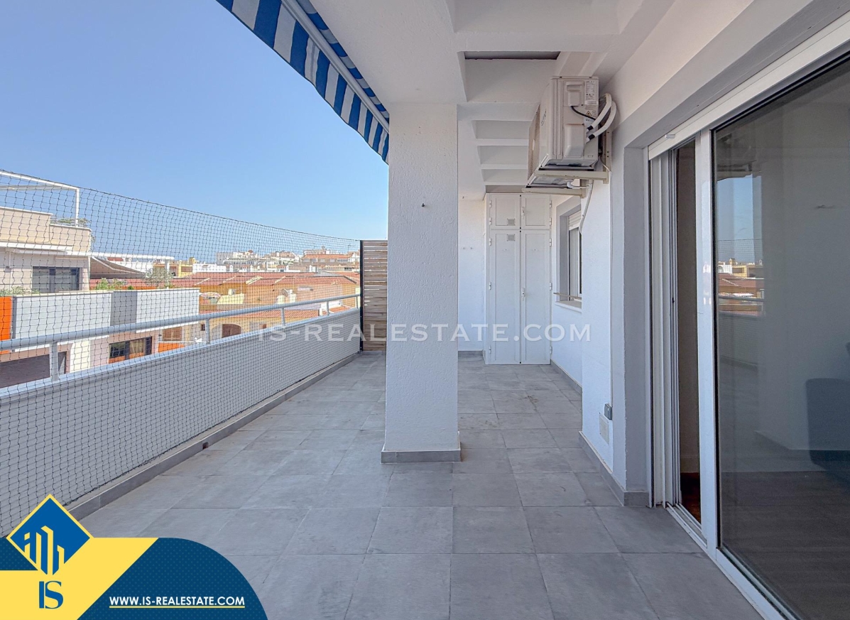 3-jų kambarių renovuotas penthouse apartamentas su terasa, Ispanijoje, Alicante provincijoje, Torrevieja mieste, Playa del Cura rajone, bendras plotas 71 m², 750 metrų iki jūros, 45 kilometrai iki Alicante oro uosto. Turtui priklauso terasa, liftas. Netoli turto yra parduotuvės, restoranai, autobusų stotelės, degalinės, žalios zonos, kavinės, vaistinės