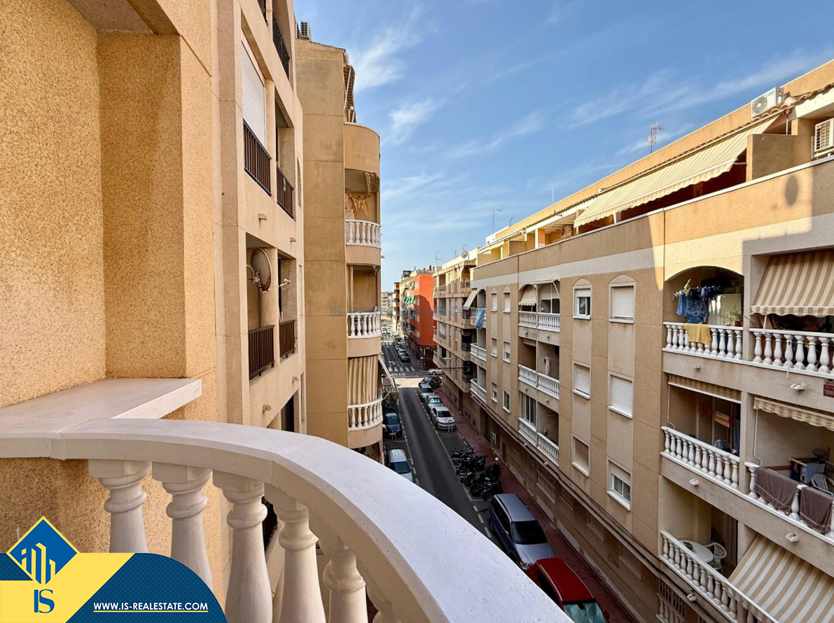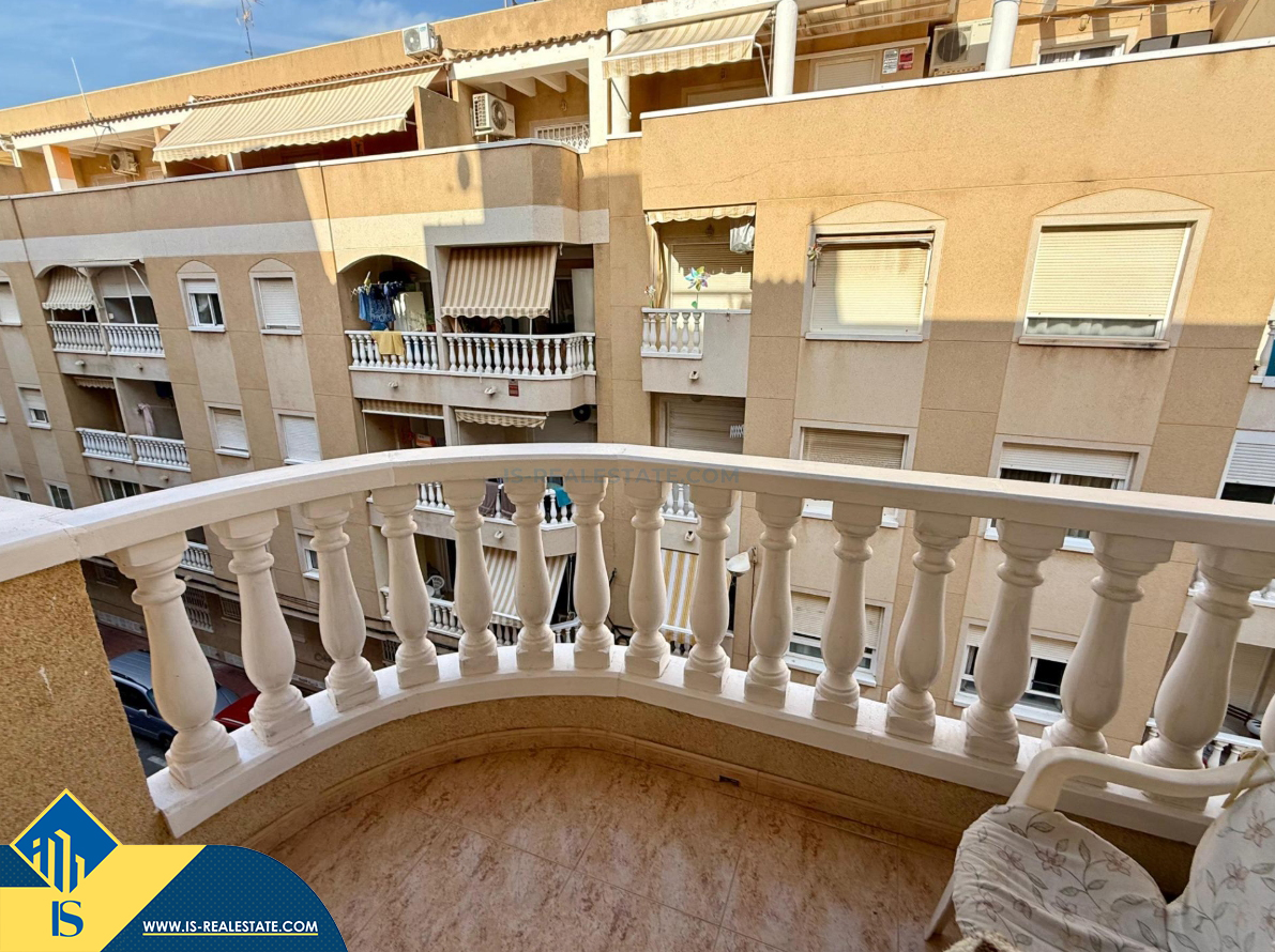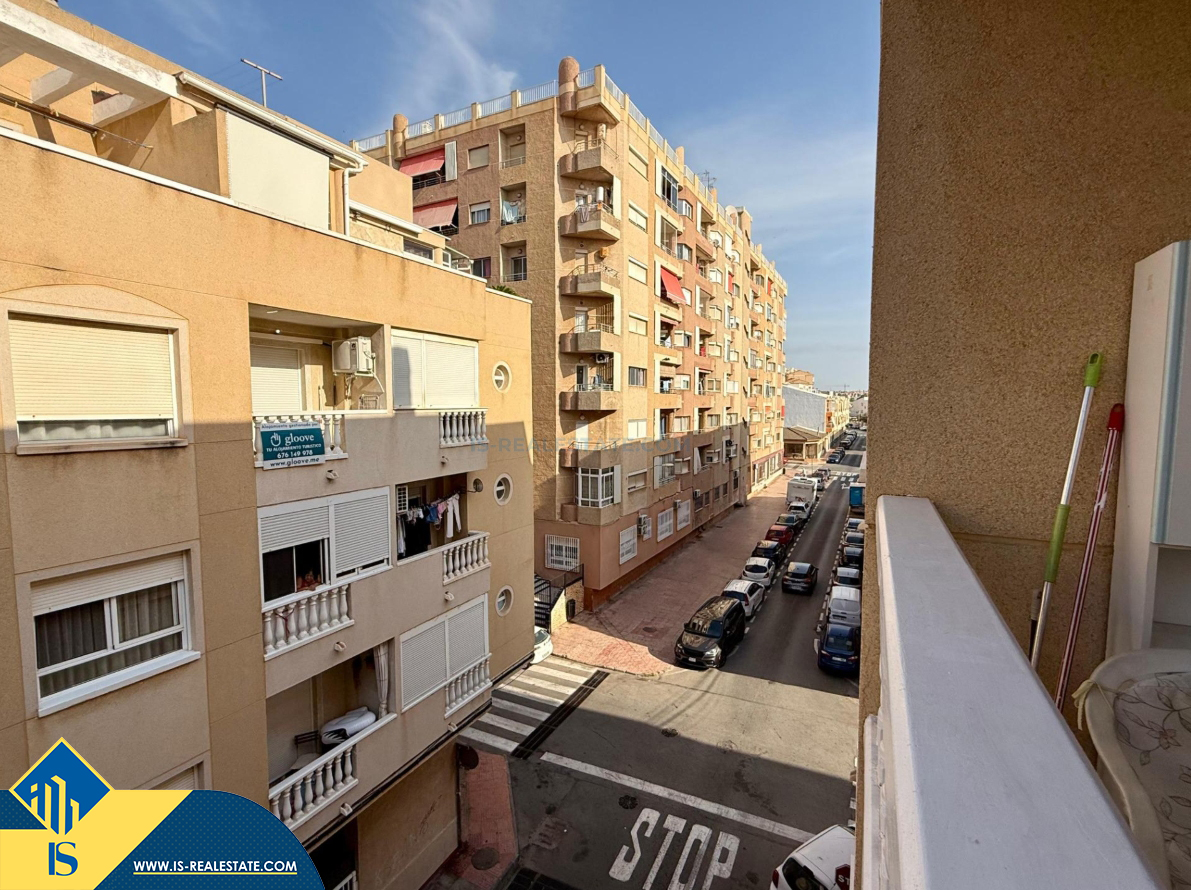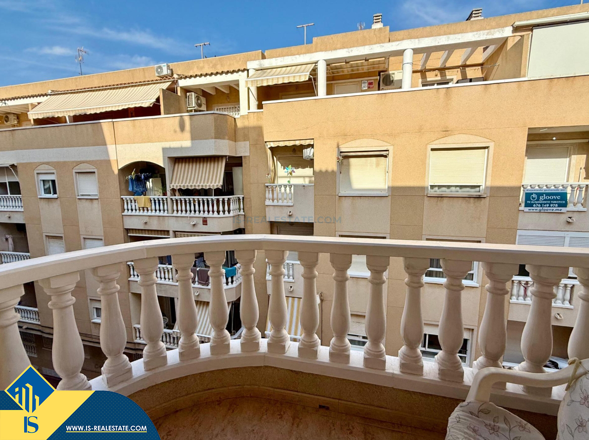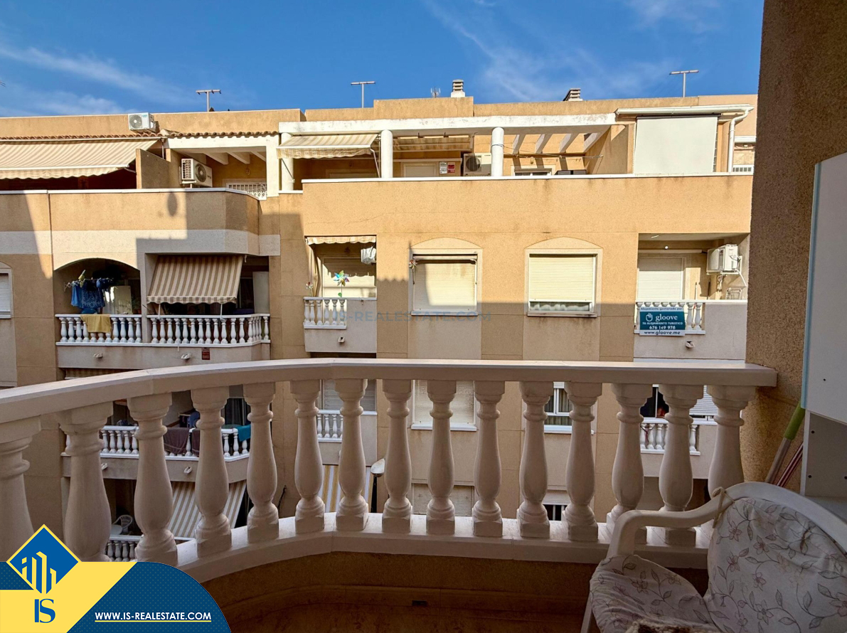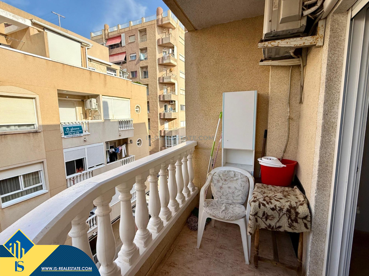 2-jų kambarių apartamentas su terasa, Ispanijoje, Alicante provincijoje, Torrevieja mieste, bendras plotas 45 m², 200 metrų iki jūros, 45 kilometrai iki Alicante oro uosto. Turtui priklauso terasa, liftas. Netoli turto yra parduotuvės, restoranai, vaistinės, autobusų stotelės, degalinės, žalios zonos, kavinės
