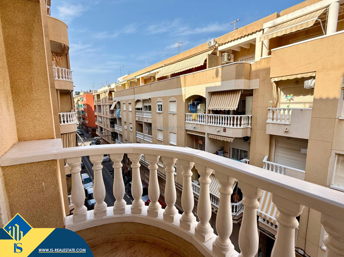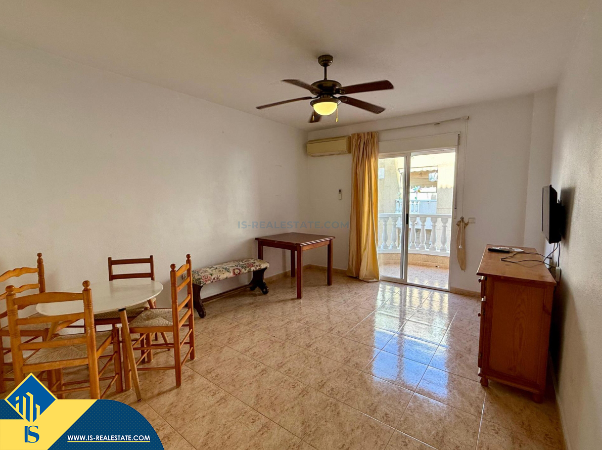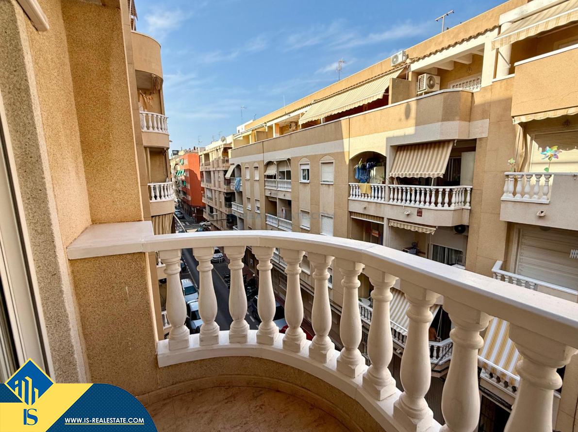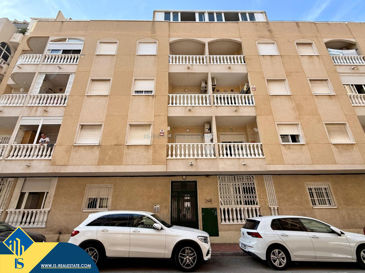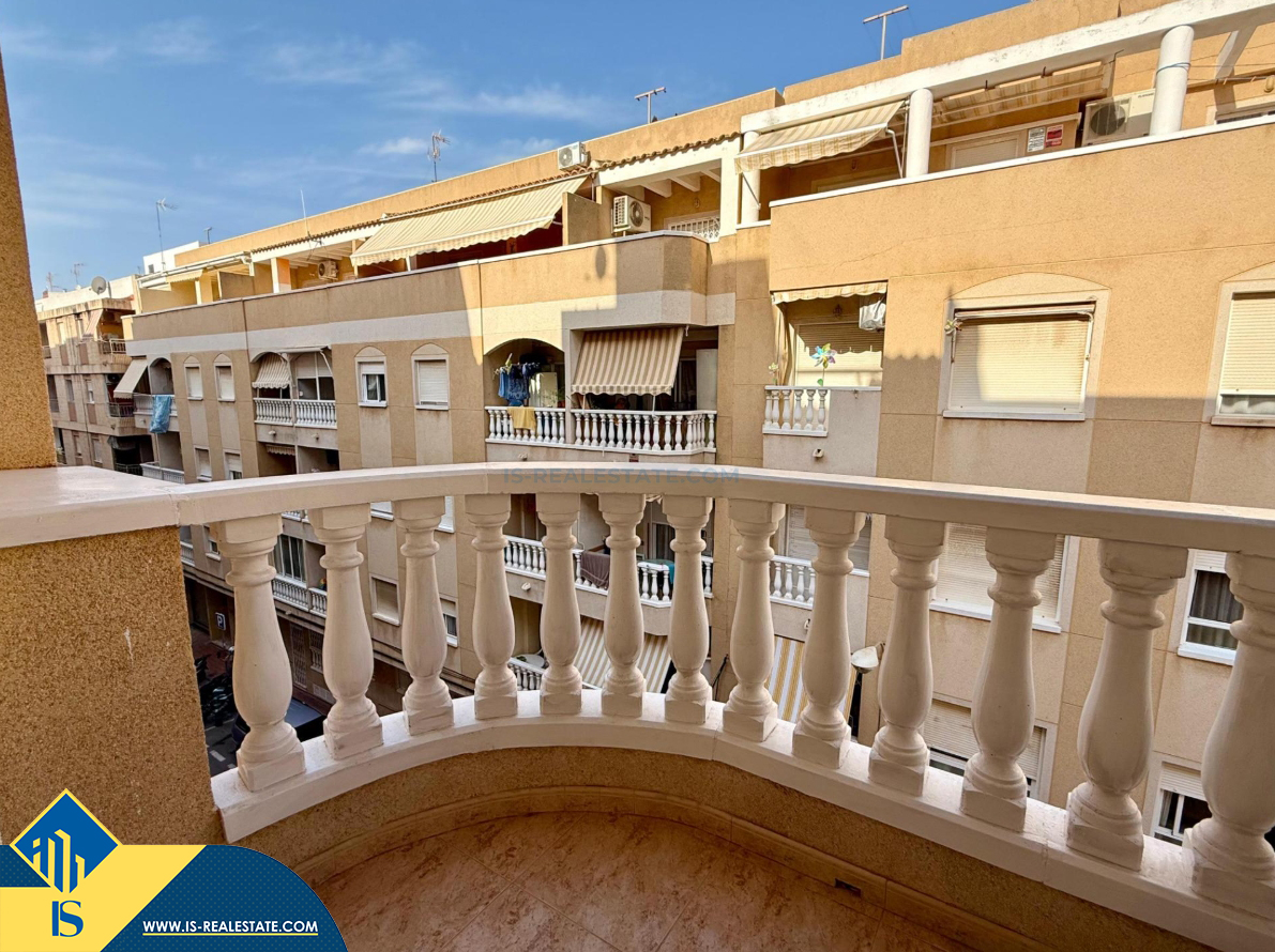 2-jų kambarių apartamentas su terasa, Ispanijoje, Alicante provincijoje, Torrevieja mieste, bendras plotas 45 m², 200 metrų iki jūros, 45 kilometrai iki Alicante oro uosto. Turtui priklauso terasa, liftas. Netoli turto yra parduotuvės, restoranai, vaistinės, autobusų stotelės, degalinės, žalios zonos, kavinės