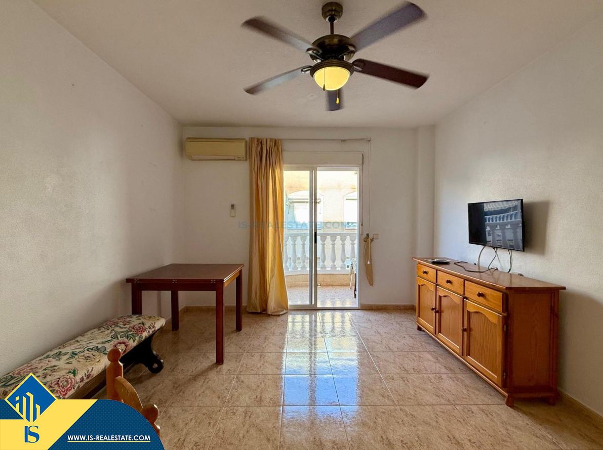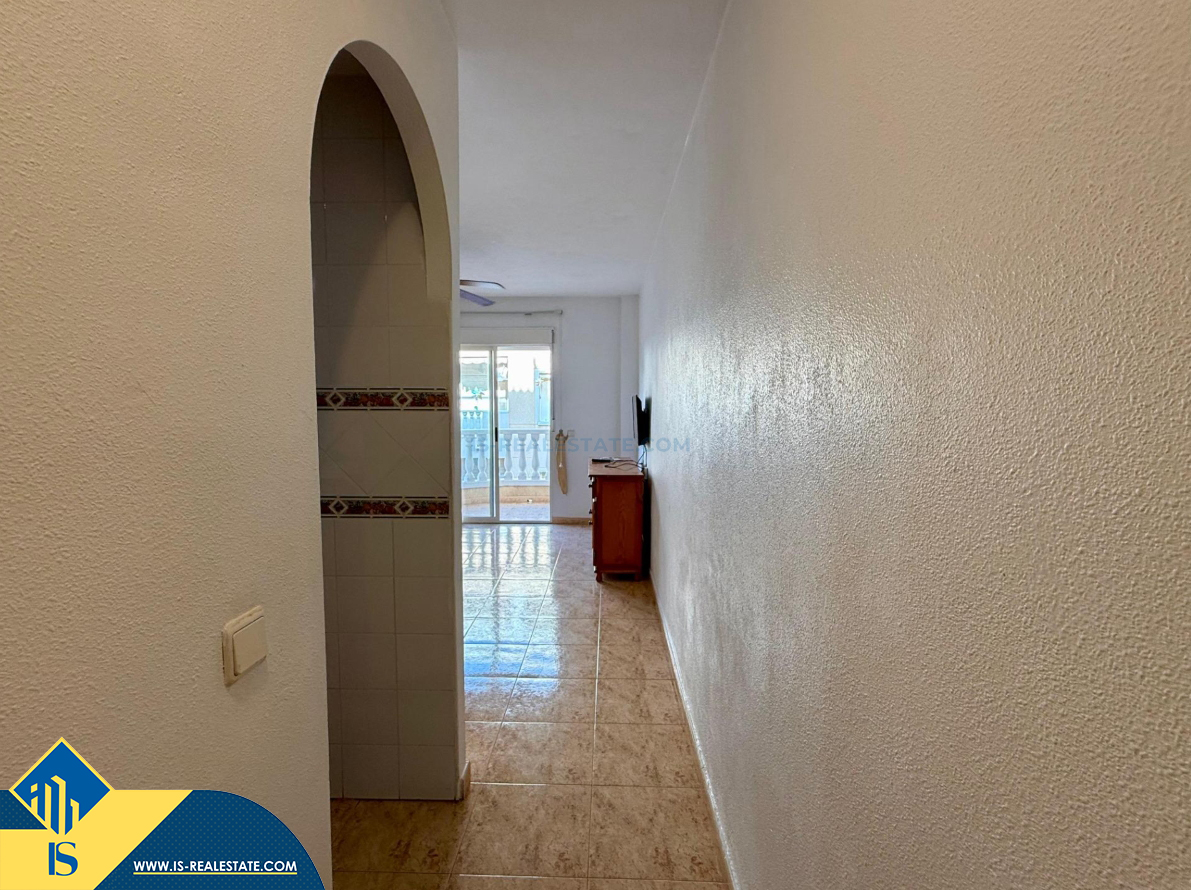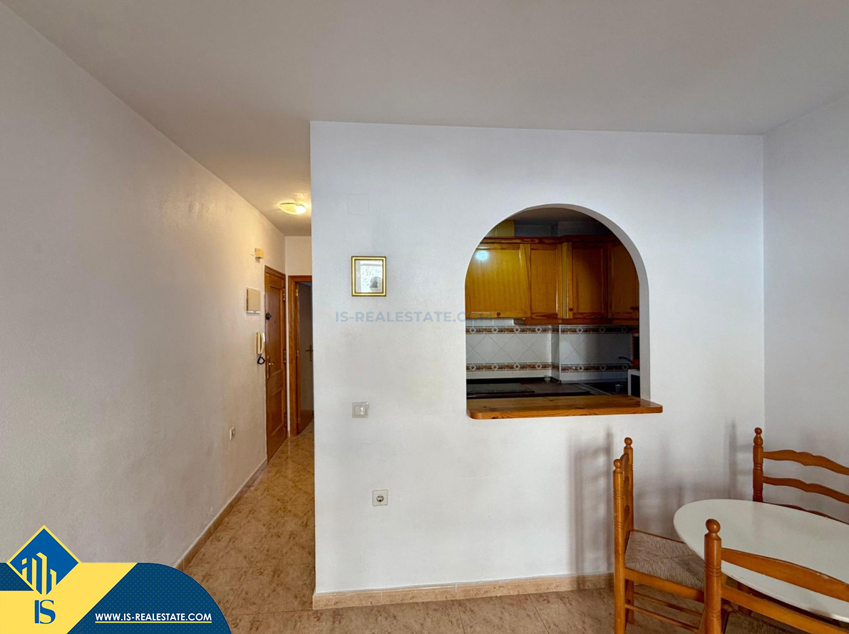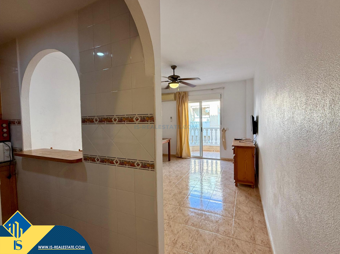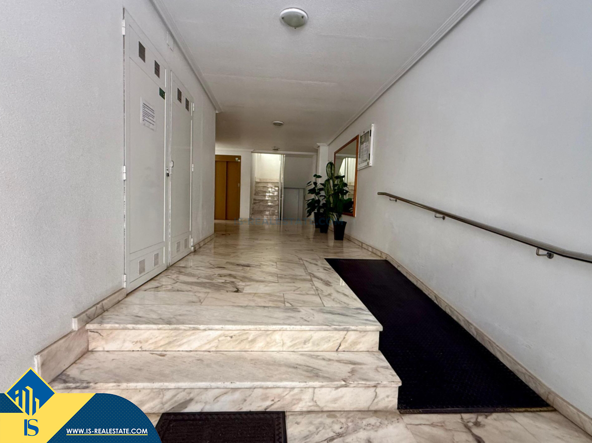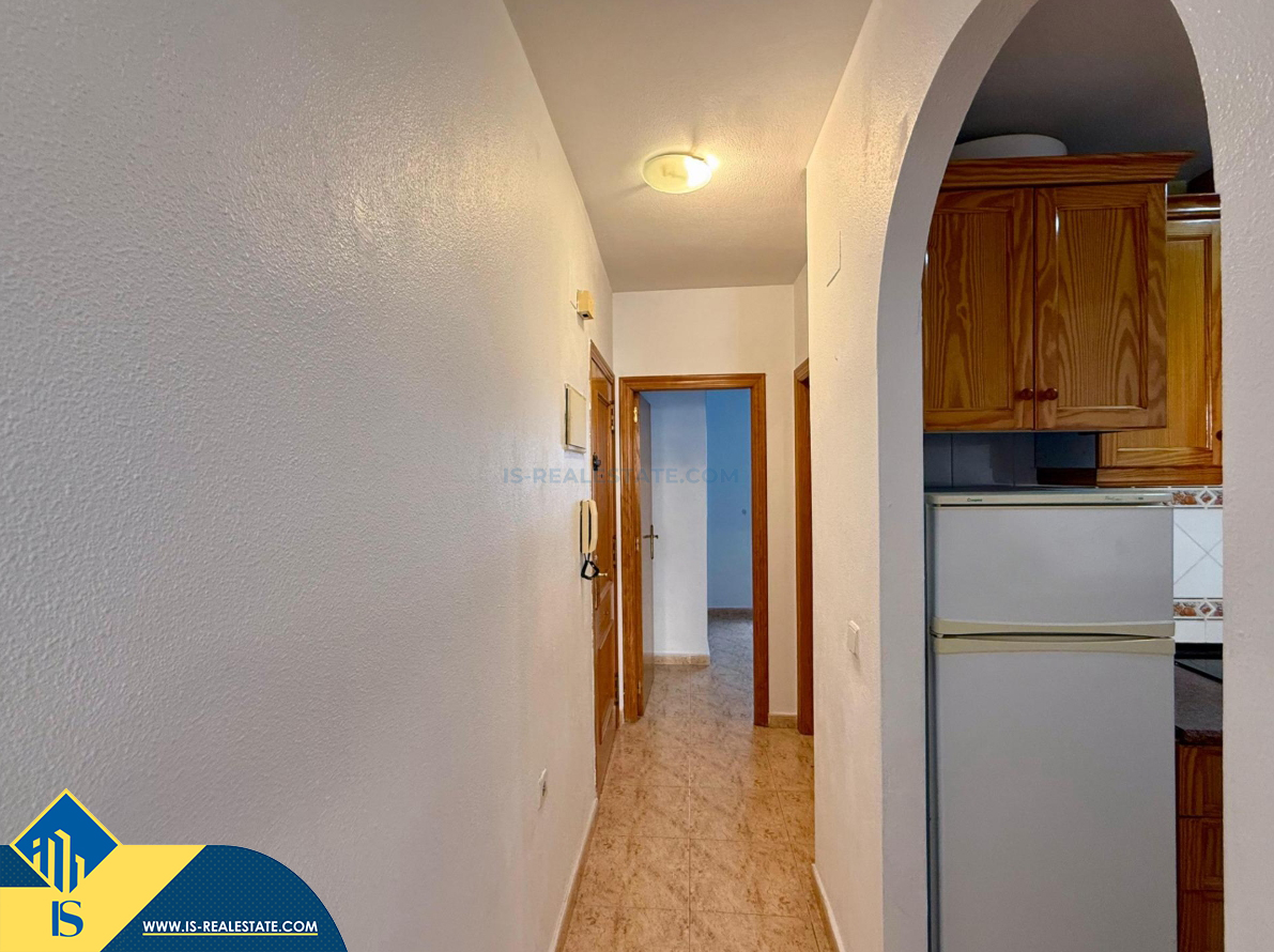 2-jų kambarių apartamentas su terasa, Ispanijoje, Alicante provincijoje, Torrevieja mieste, bendras plotas 45 m², 200 metrų iki jūros, 45 kilometrai iki Alicante oro uosto. Turtui priklauso terasa, liftas. Netoli turto yra parduotuvės, restoranai, vaistinės, autobusų stotelės, degalinės, žalios zonos, kavinės