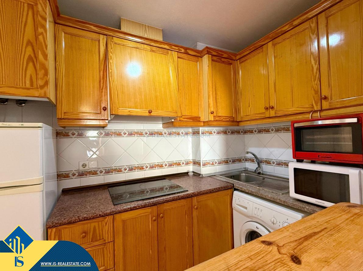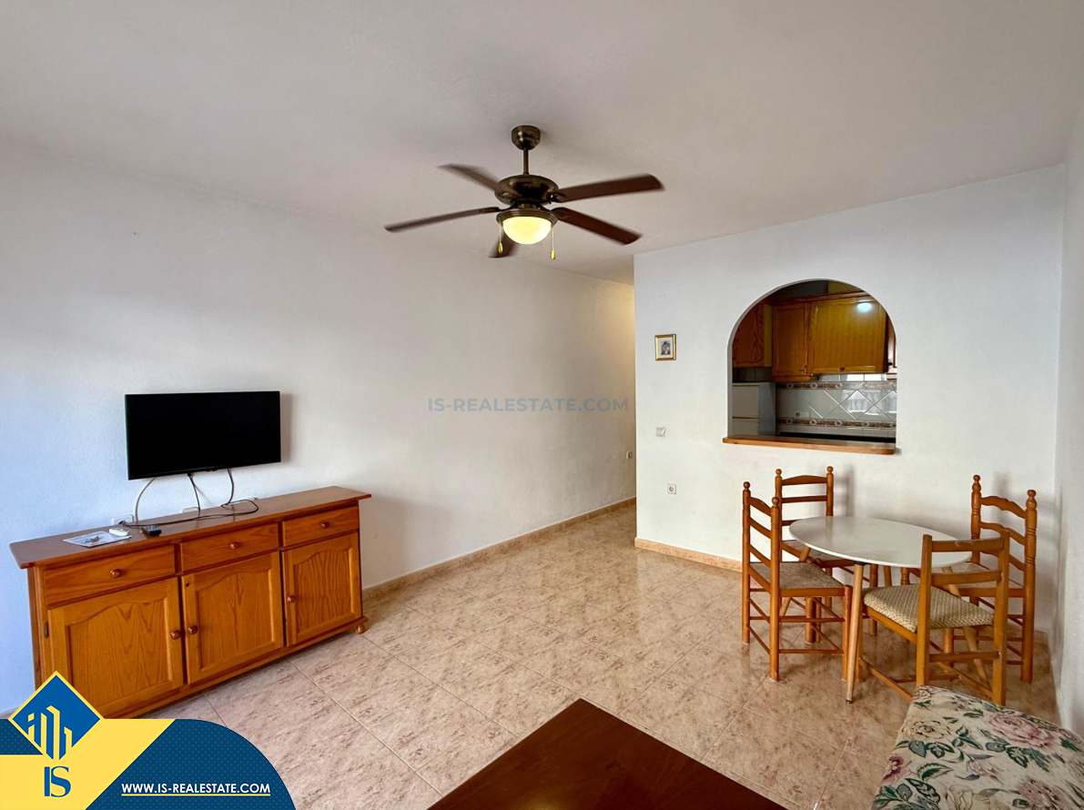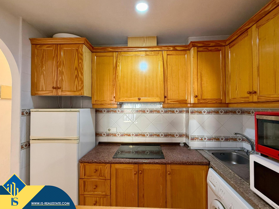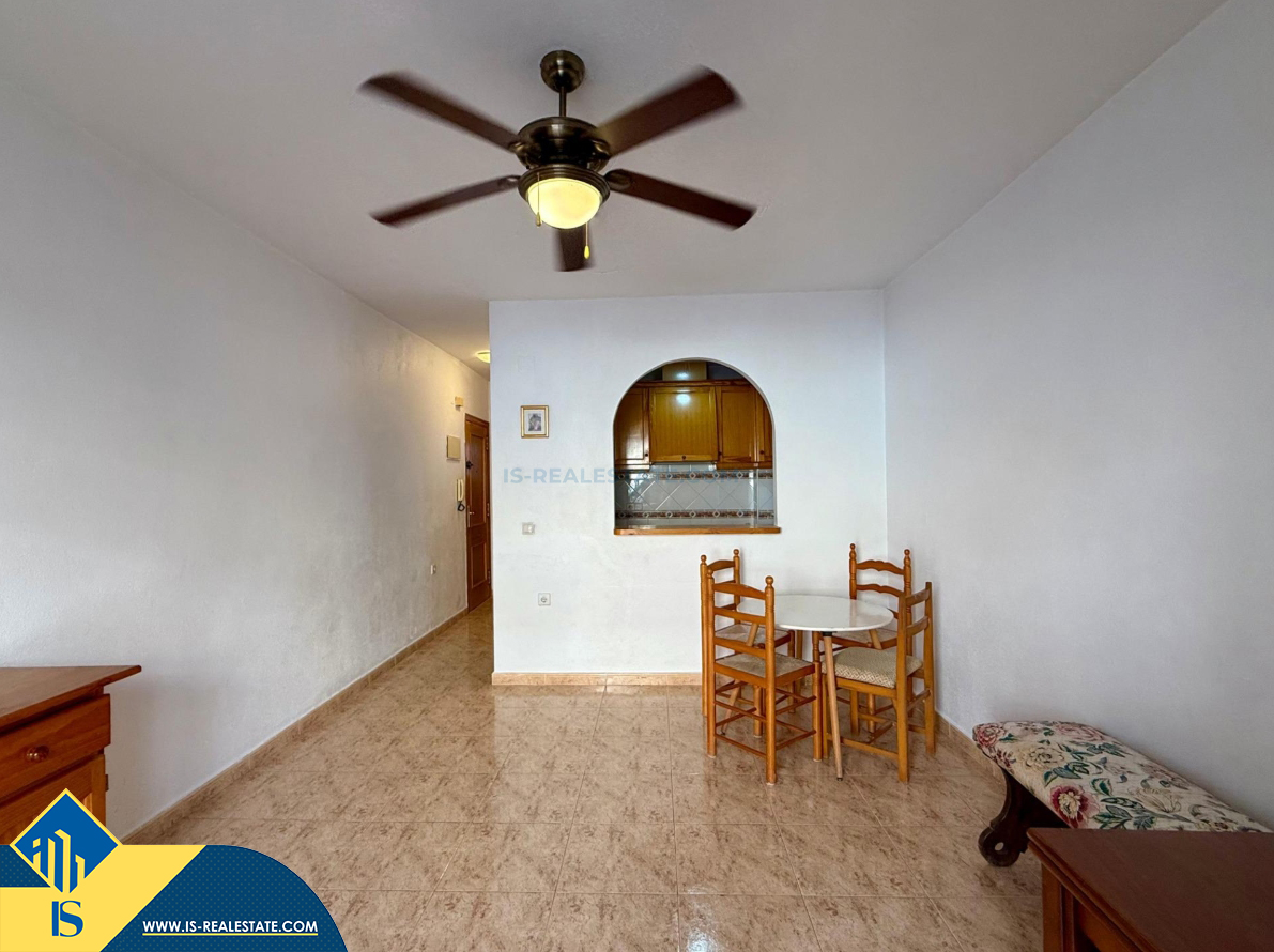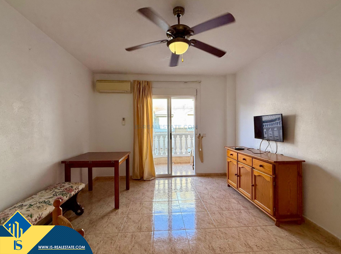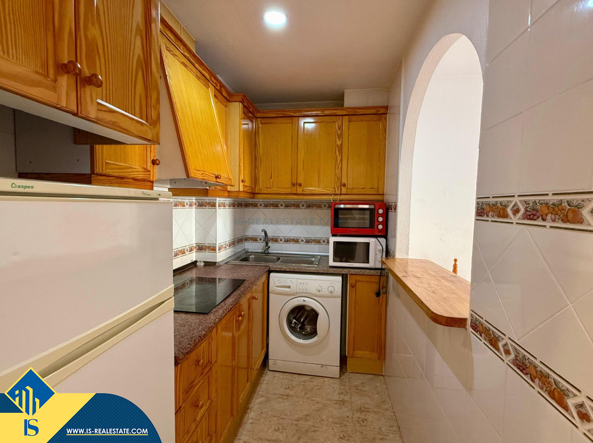 2-jų kambarių apartamentas su terasa, Ispanijoje, Alicante provincijoje, Torrevieja mieste, bendras plotas 45 m², 200 metrų iki jūros, 45 kilometrai iki Alicante oro uosto. Turtui priklauso terasa, liftas. Netoli turto yra parduotuvės, restoranai, vaistinės, autobusų stotelės, degalinės, žalios zonos, kavinės