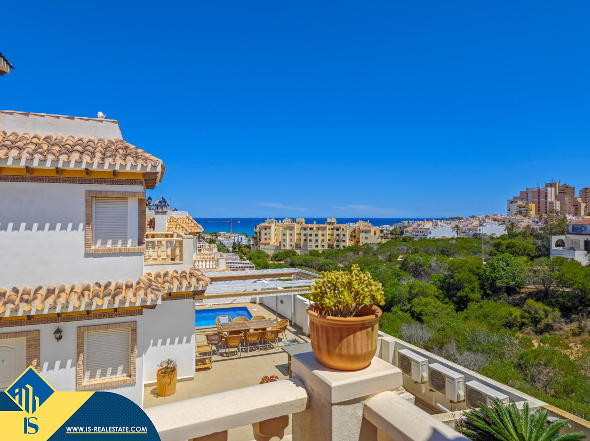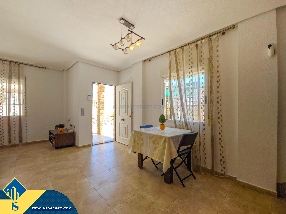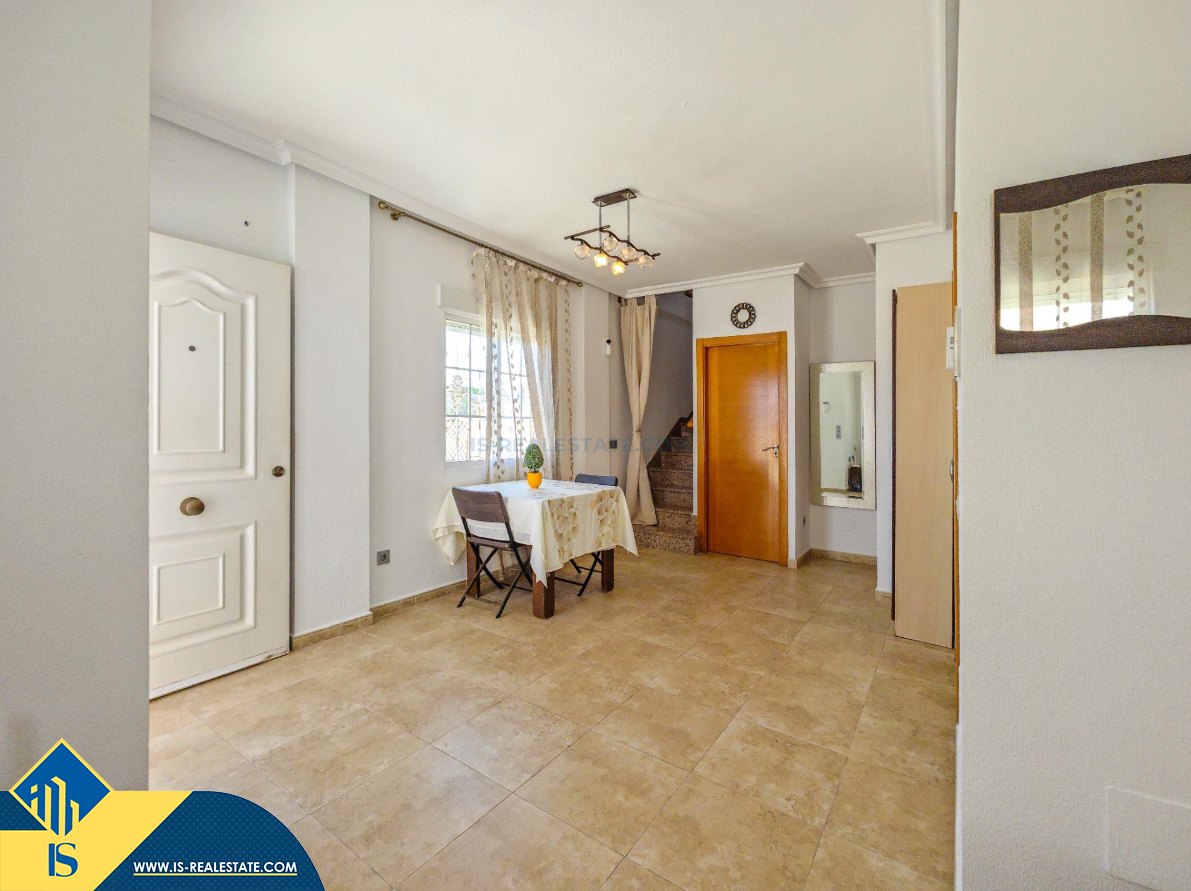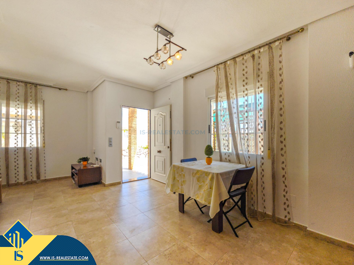 4-ių kambarių vila su terasa, Ispanijoje, Alicante provincijoje, Torrevieja mieste, La Mata rajone, bendras plotas 97 m², 600 metrų iki jūros, 38 kilometrai iki Alicante oro uosto. Turtui priklauso terasa, soliariumas, privatus baseinas, garažas, sandėliukas. Netoli turto yra parduotuvės, restoranai, autobusų stotelės, vaikų zonos, degalinės, žalios zonos, kavinės, vaistinės