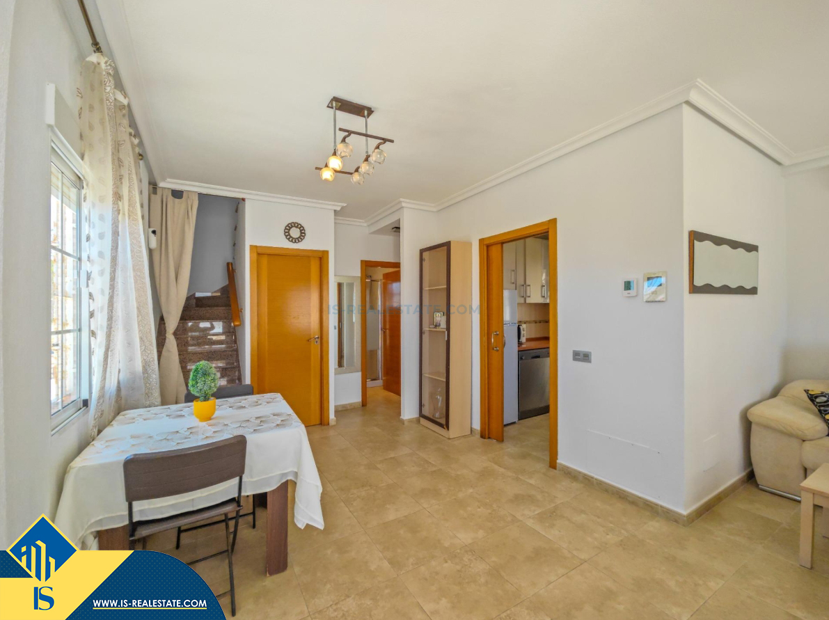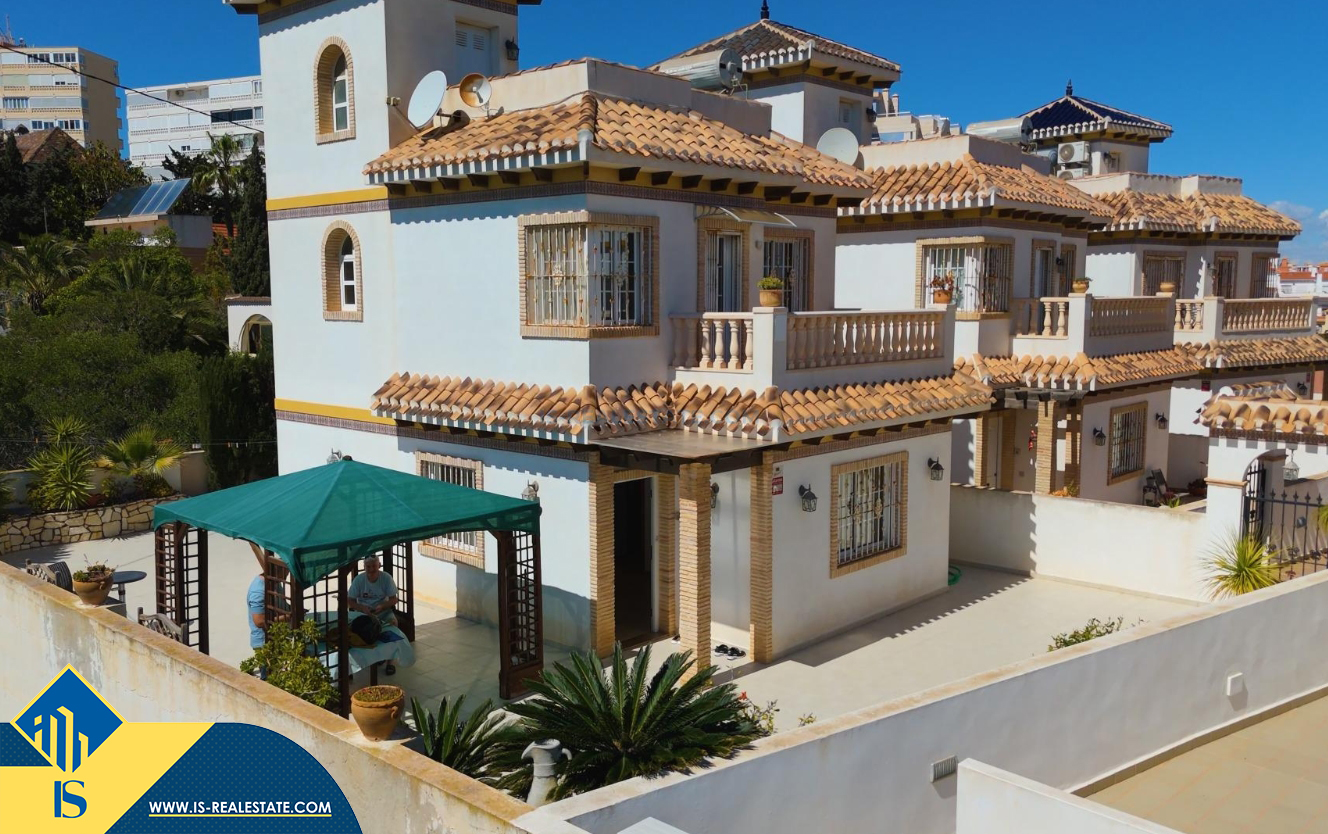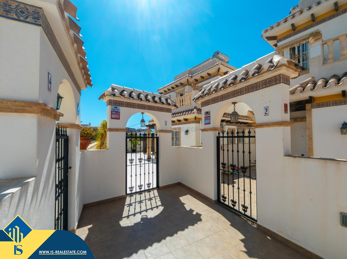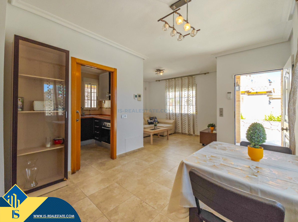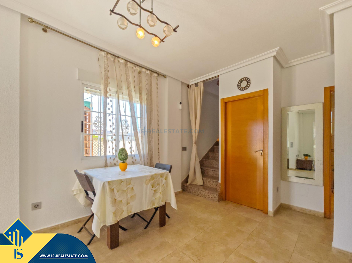 4-ių kambarių vila su terasa, Ispanijoje, Alicante provincijoje, Torrevieja mieste, La Mata rajone, bendras plotas 97 m², 600 metrų iki jūros, 38 kilometrai iki Alicante oro uosto. Turtui priklauso terasa, soliariumas, privatus baseinas, garažas, sandėliukas. Netoli turto yra parduotuvės, restoranai, autobusų stotelės, vaikų zonos, degalinės, žalios zonos, kavinės, vaistinės