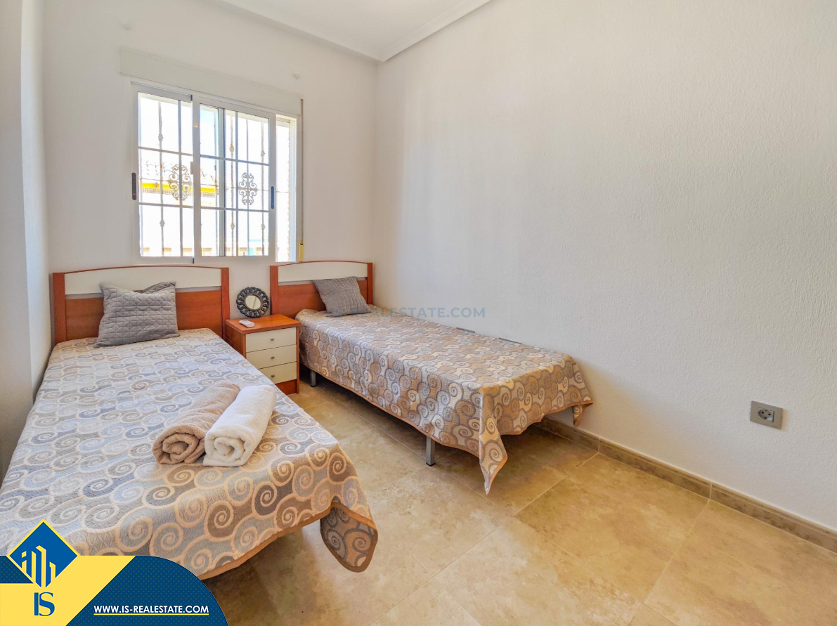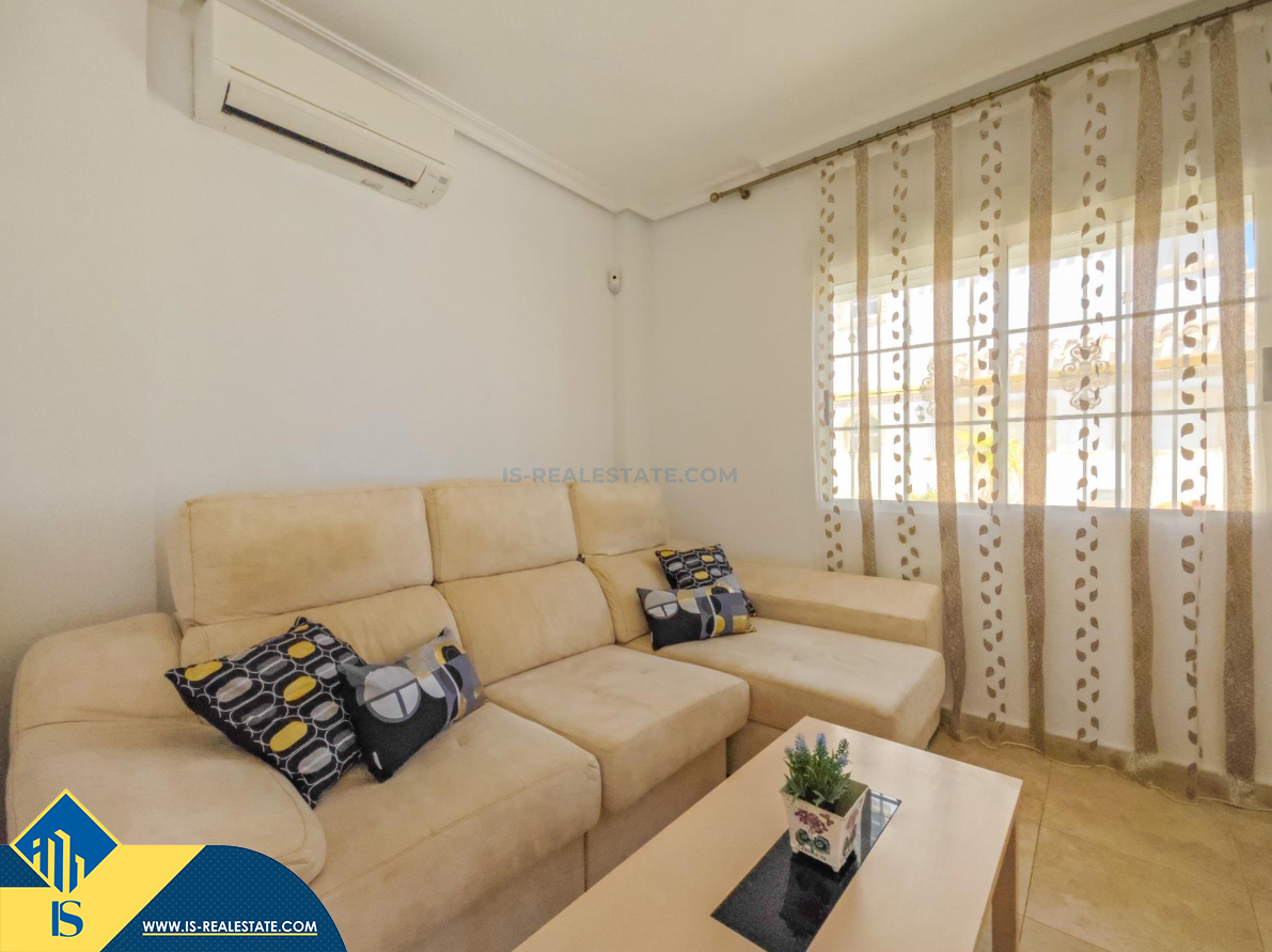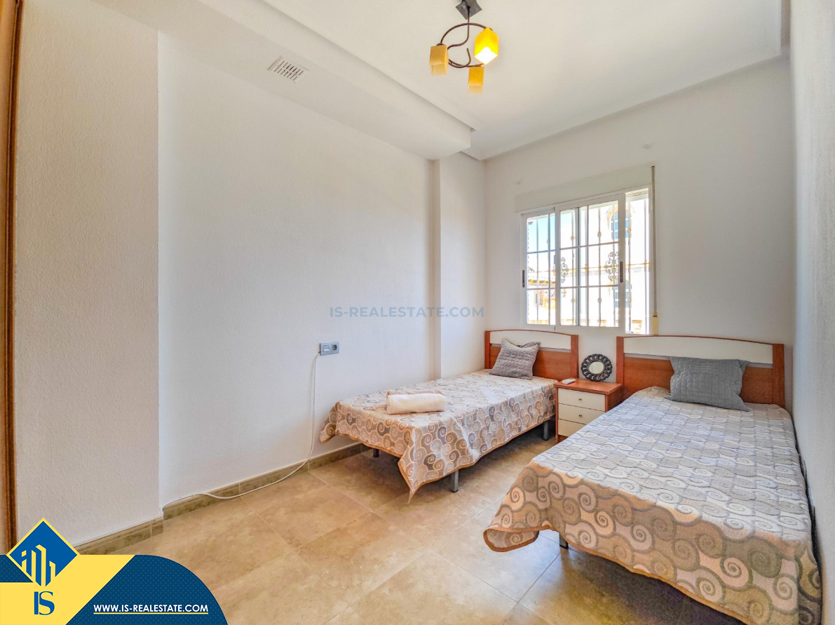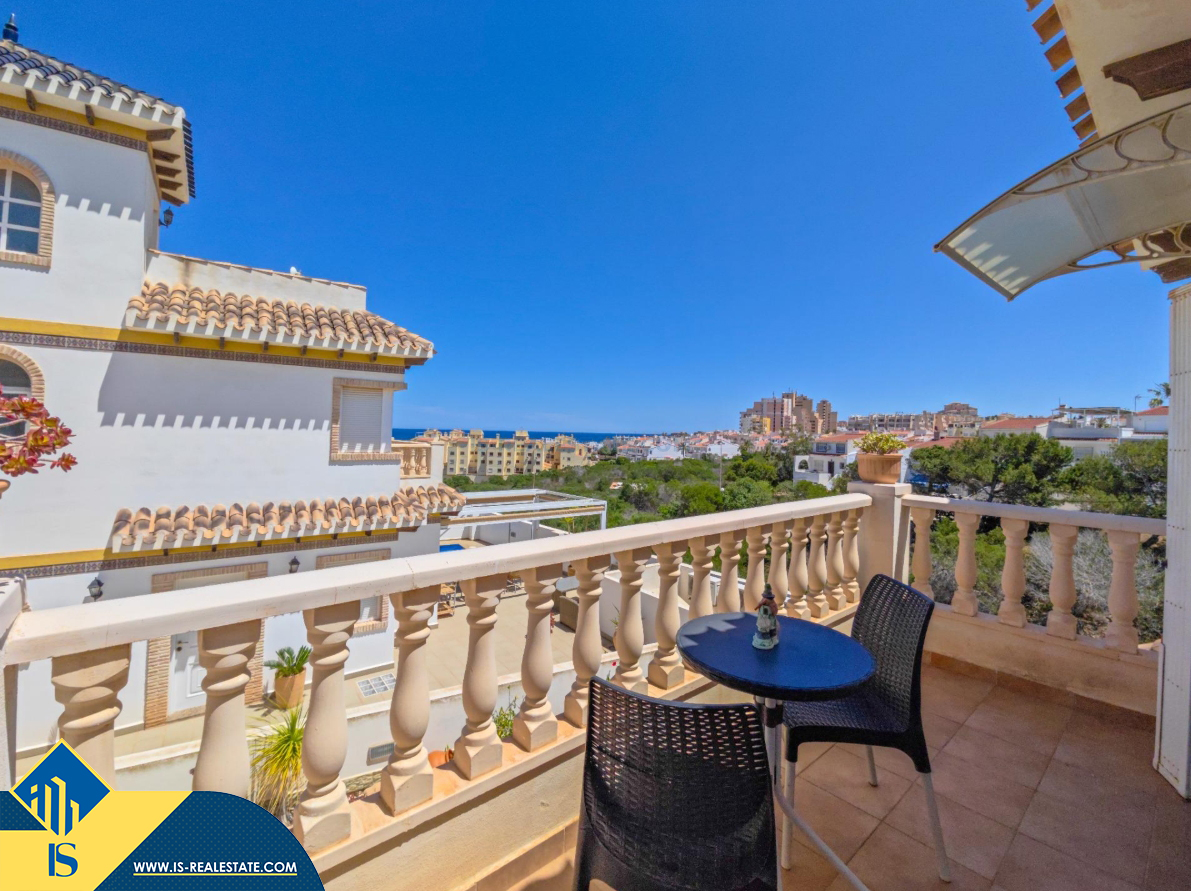 4-ių kambarių vila su terasa, Ispanijoje, Alicante provincijoje, Torrevieja mieste, La Mata rajone, bendras plotas 97 m², 600 metrų iki jūros, 38 kilometrai iki Alicante oro uosto. Turtui priklauso terasa, soliariumas, privatus baseinas, garažas, sandėliukas. Netoli turto yra parduotuvės, restoranai, autobusų stotelės, vaikų zonos, degalinės, žalios zonos, kavinės, vaistinės