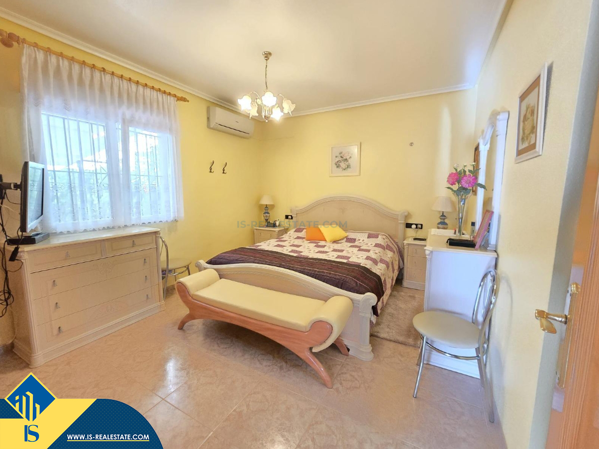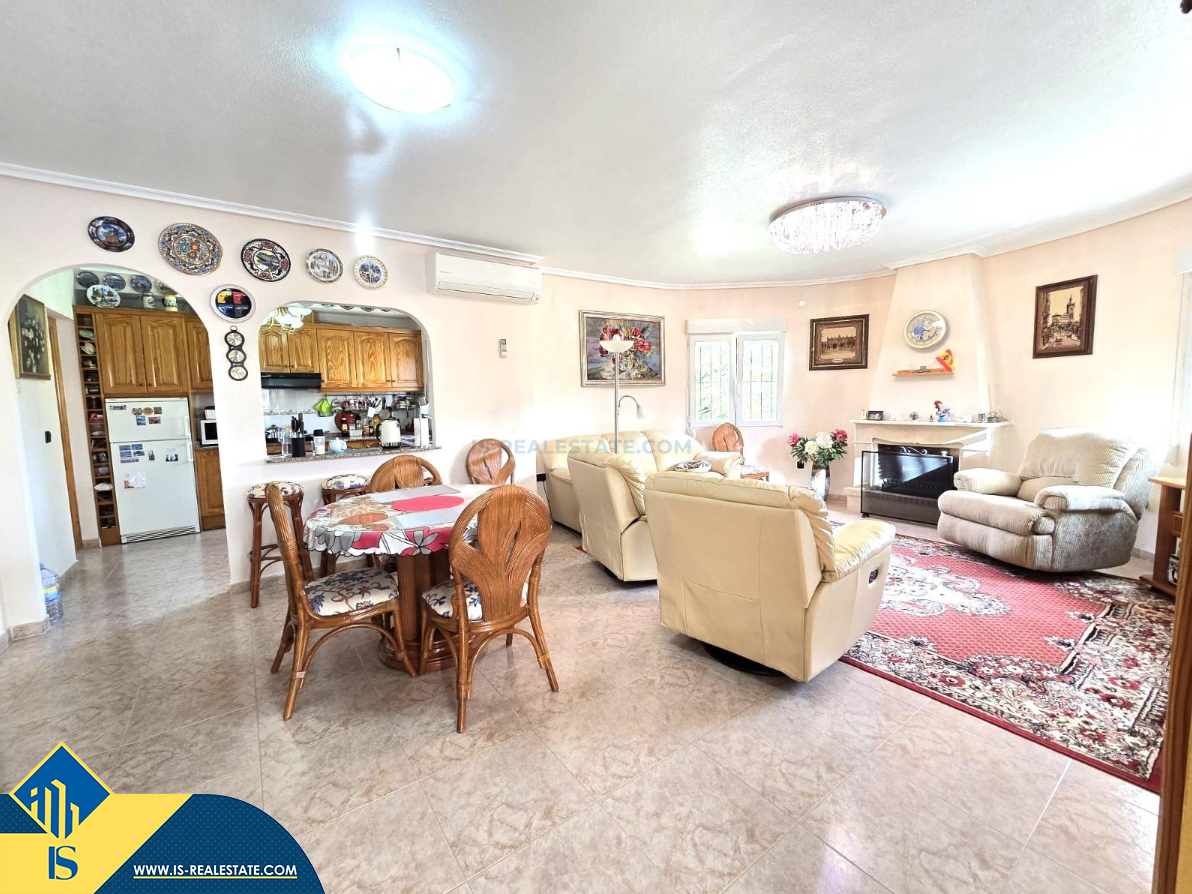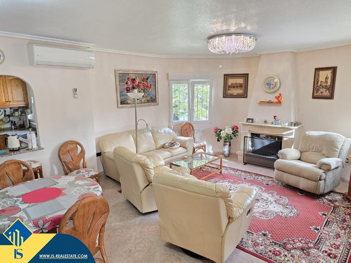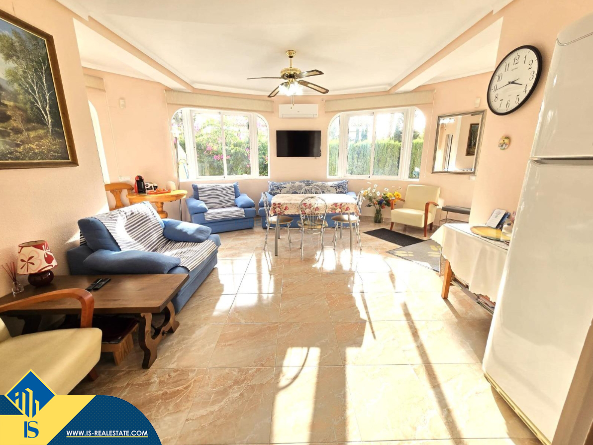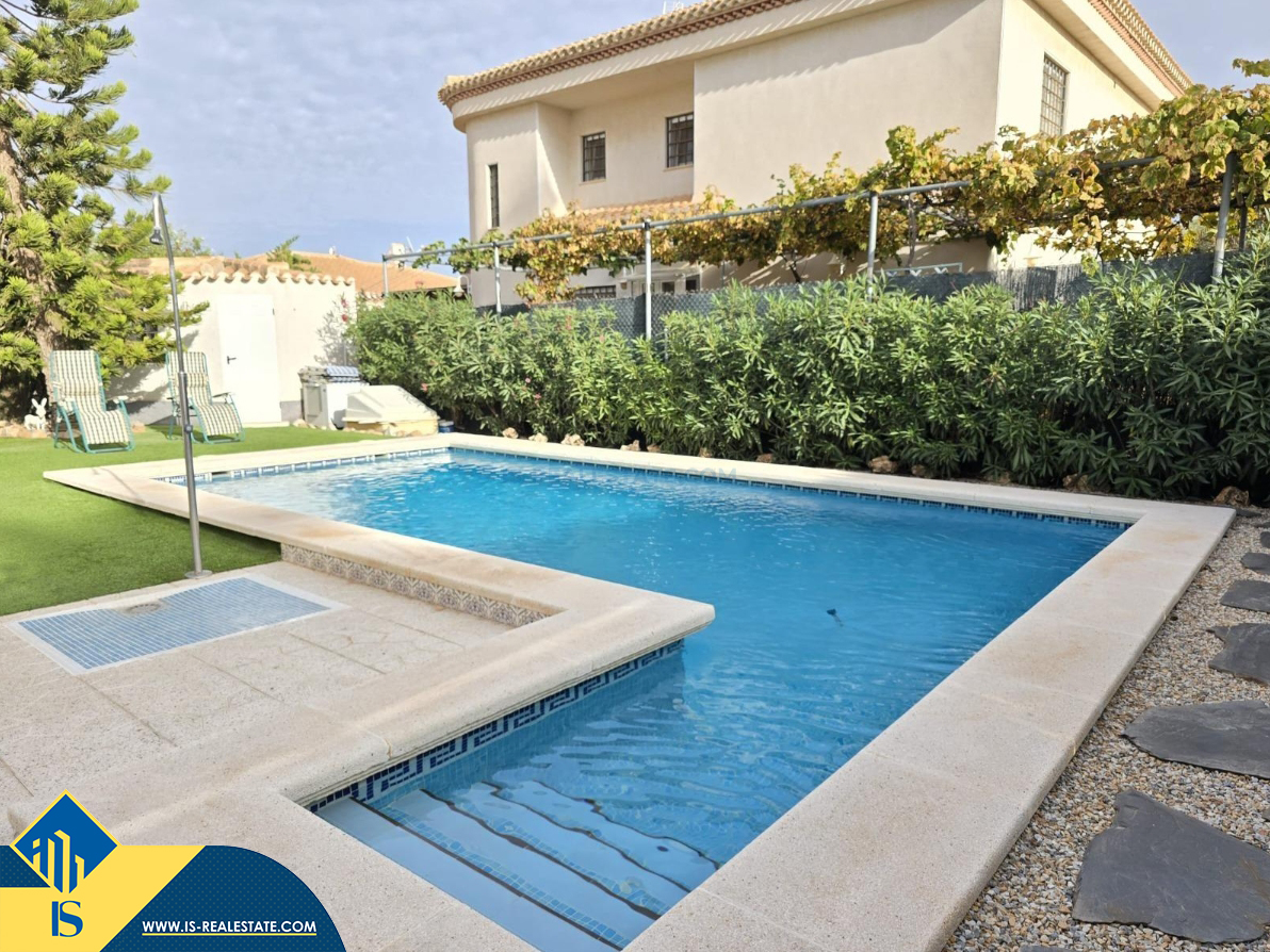 4-ių kambarių vila su privačiu baseinu, Ispanijoje, Alicante provincijoje, Orihuela Costa mieste, bendras plotas 105 m², 1 kilometras iki jūros, 57 kilometrai iki Alicante oro uosto. Turtui priklauso terasa, privatus baseinas, vieta automobiliui, sandėliukas, privatus kiemas. Netoli turto yra parduotuvės, restoranai, autobusų stotelės, vaikų zonos, degalinės, žalios zonos, kavinės, ligoninė