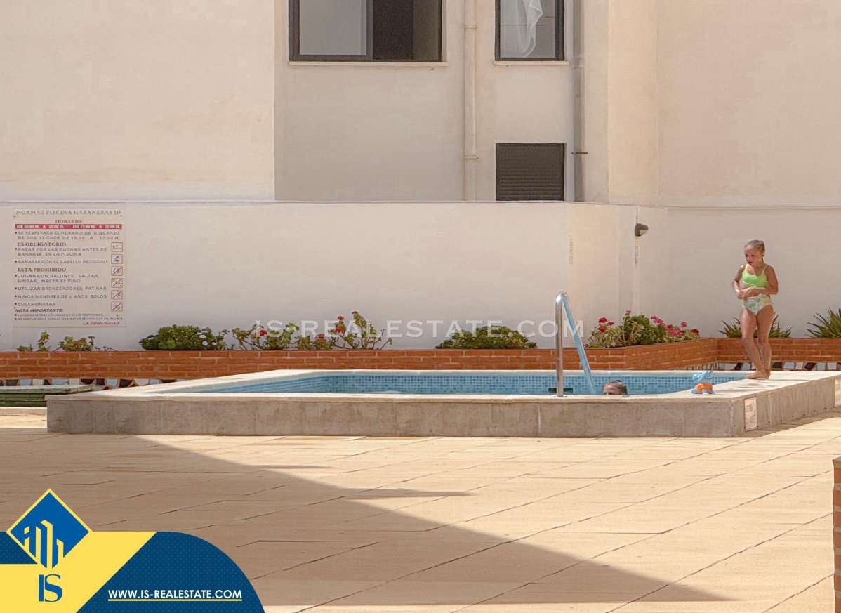 2-jų kambarių apartamentas su bendru baseinu, Ispanijoje, Alicante provincijoje, Torrevieja mieste, Playa del Cura rajone, bendras plotas 42 m², 450 metrų iki jūros, 45 kilometrai iki Alicante oro uosto. Turtui priklauso bendras baseinas, terasa, liftas. Netoli turto yra parduotuvės, restoranai, vaistinės, autobusų stotelės, degalinės, žalios zonos, kavinės, Habaneras alėja