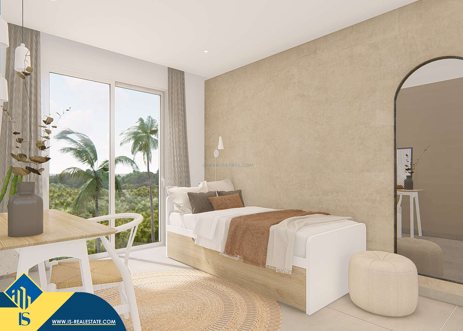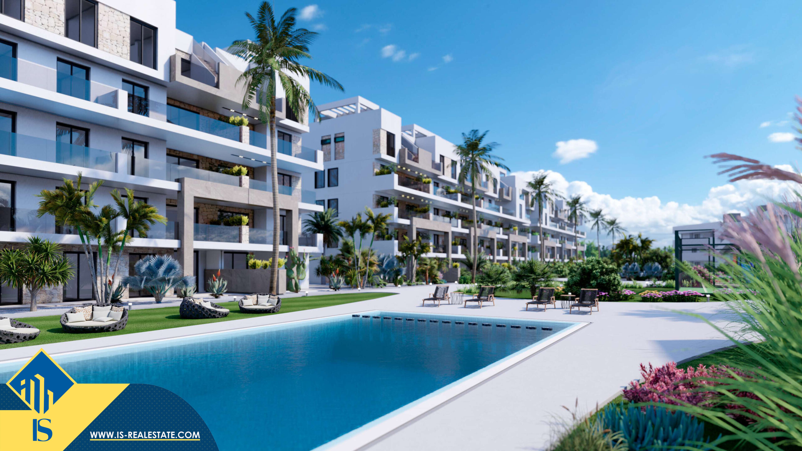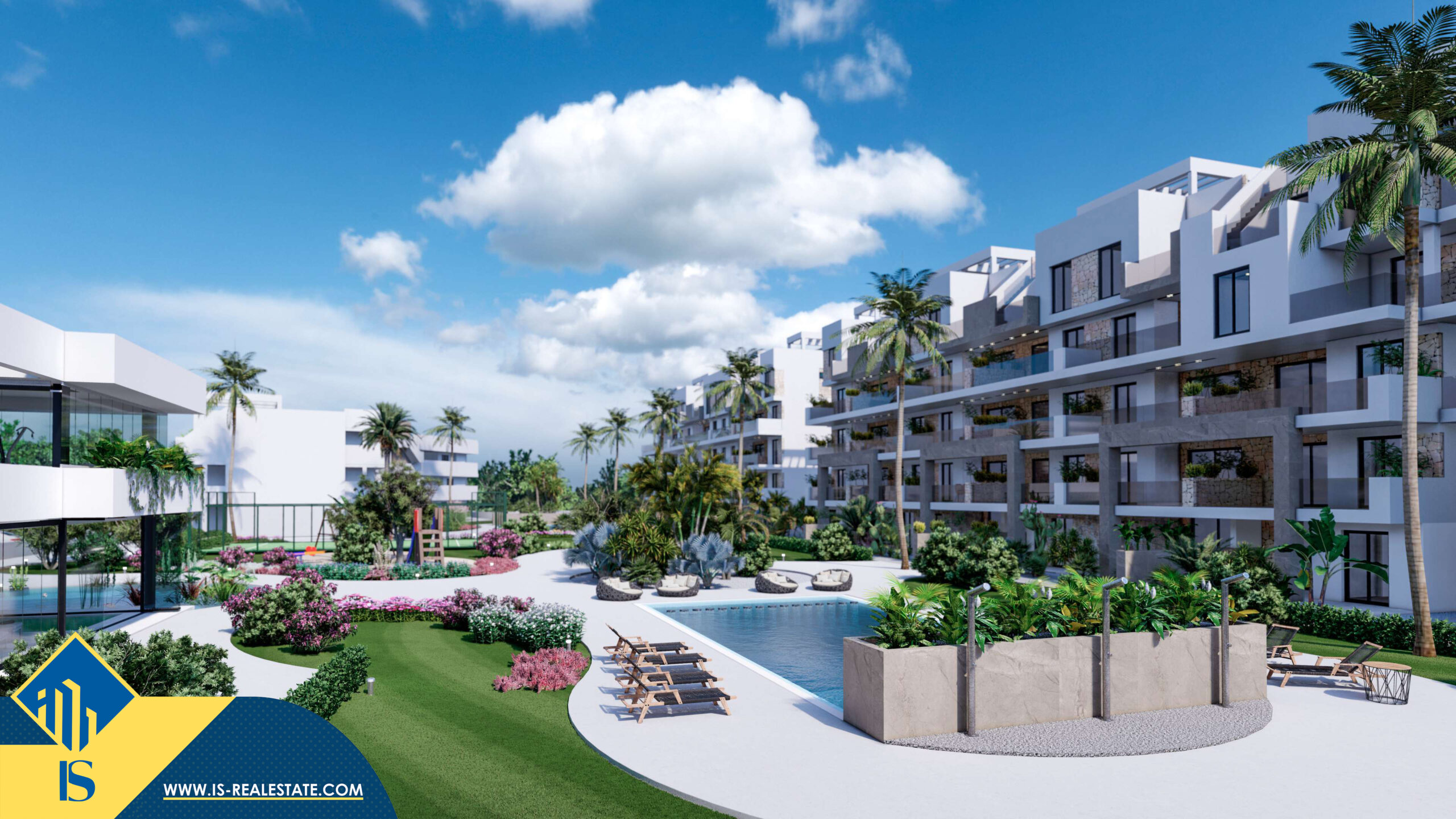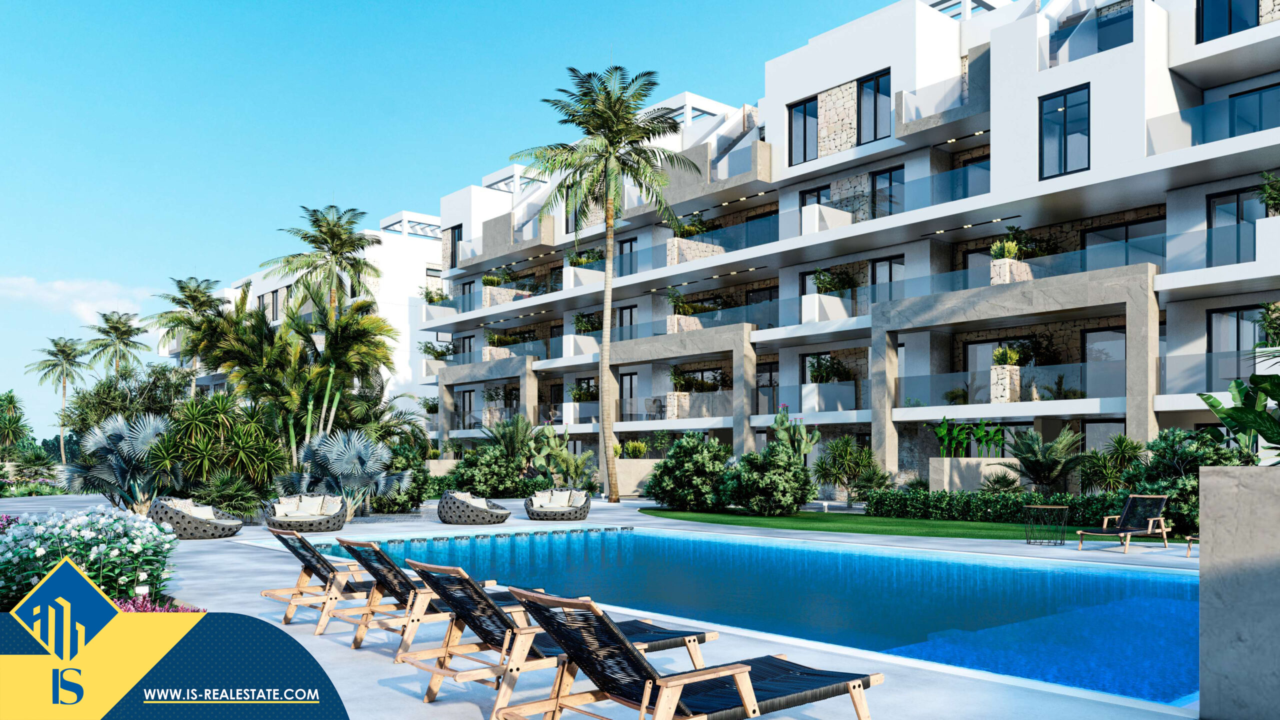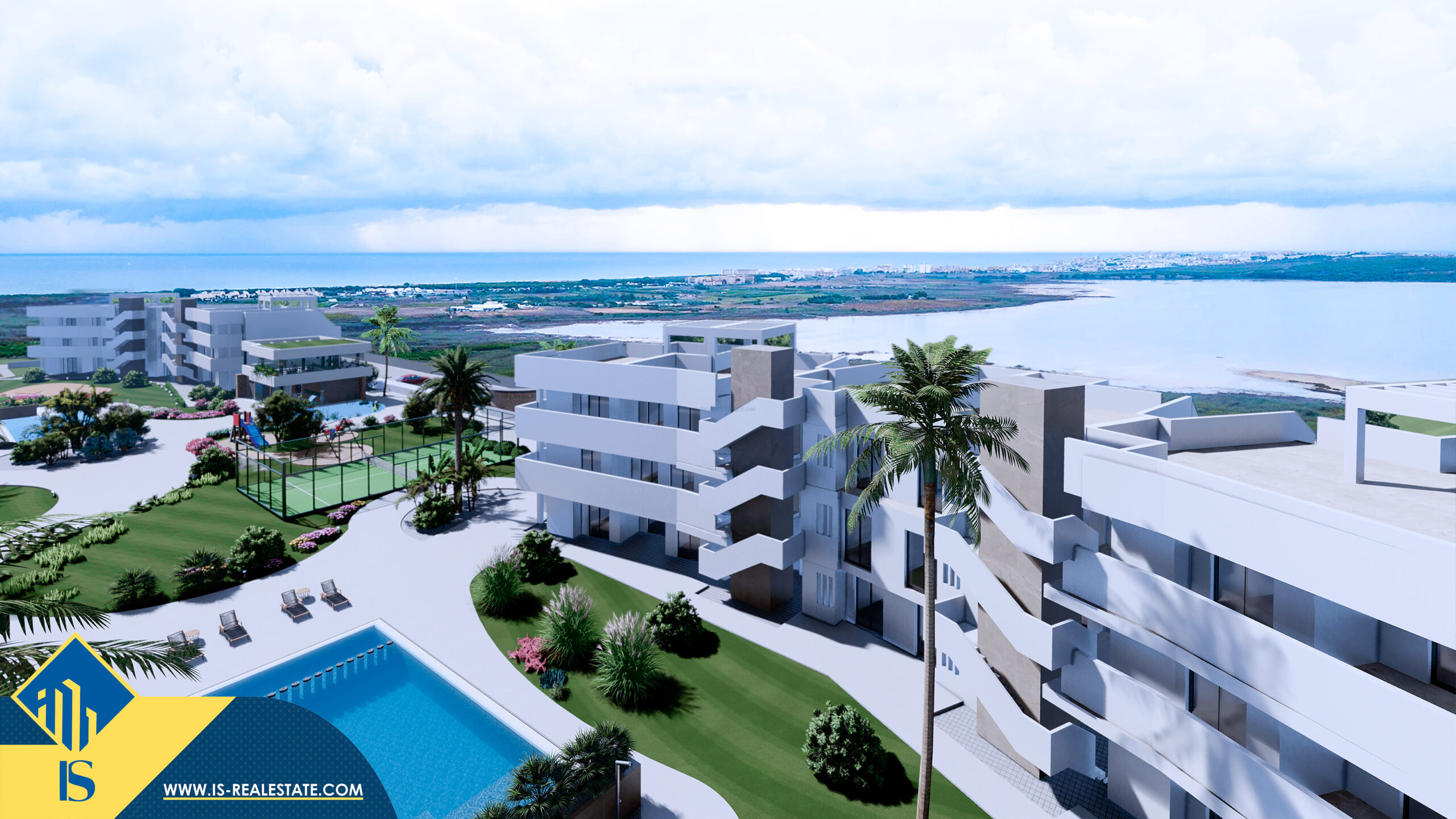 3-jų kambarių statomi apartamentai, Ispanijoje, Alicante provincijoje, Guardamar del Segura mieste, bendras plotas 80 m², 4 kilometrai iki jūros, 32 kilometrai iki oro uosto. Turtui priklauso bendras baseinas, terasa, soliariumas, liftas. Netoli turto yra parduotuvės, restoranai, autobusų stotelės, degalinės, žalios zonos, kavinės, vaistinės
