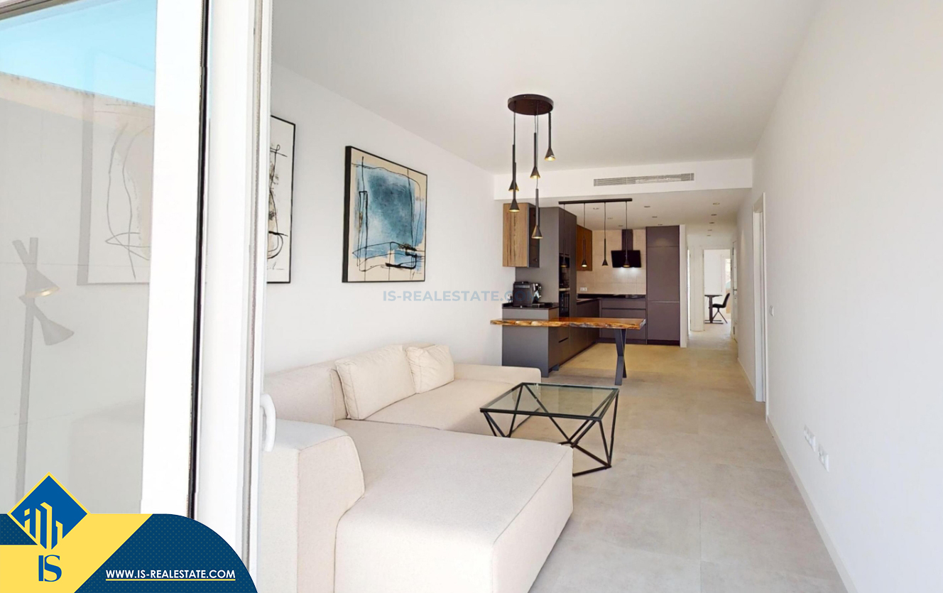 4-ių kambarių apartamentas su terasa, Ispanijoje, Alicante provincijoje, Orihuela Costa mieste, bendras plotas 97 m², 2.5 kilometro iki jūros, 57 kilometrai iki Alicante oro uosto. Turtui priklauso terasa, liftas. Netoli turto yra parduotuvės, restoranai, autobusų stotelės, vaikų zonos, degalinės, žalios zonos, kavinės, ligoninė