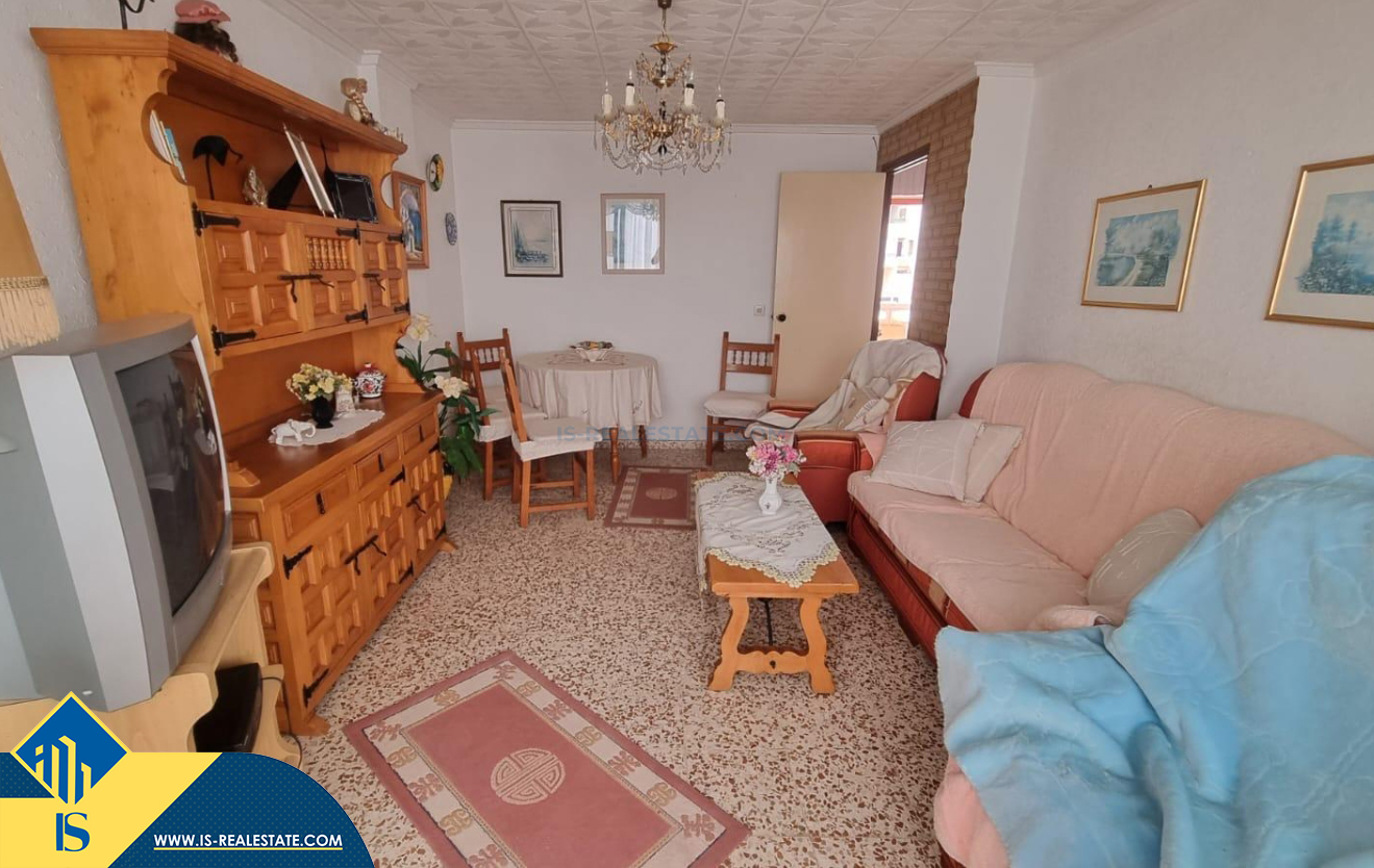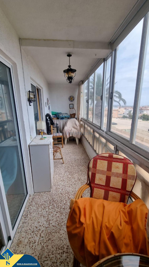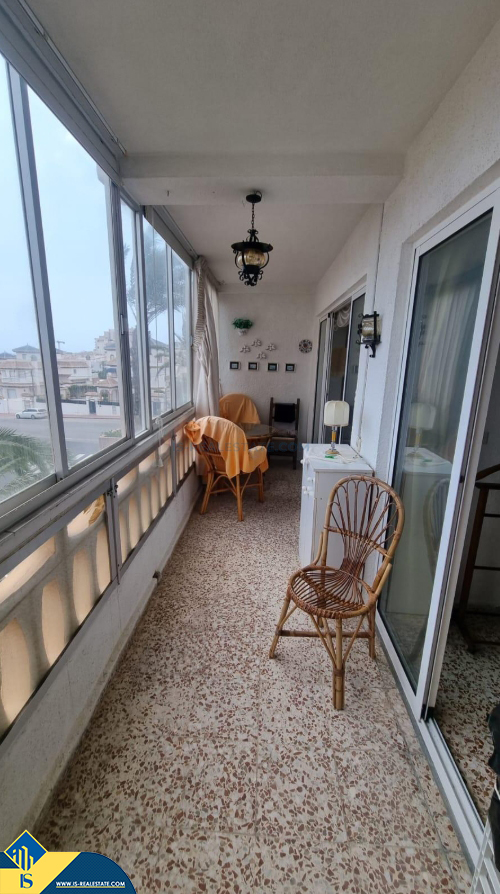 2-jų kambarių apartamentas su terasa, Ispanijoje, Alicante provincijoje, Torrevieja mieste, bendras plotas 49 m², 600 metrų iki jūros, 45 kilometrai iki Alicante oro uosto. Turtui priklauso terasa, liftas. Netoli turto yra parduotuvės, restoranai, vaistinės, autobusų stotelės, degalinės, žalios zonos, kavinės