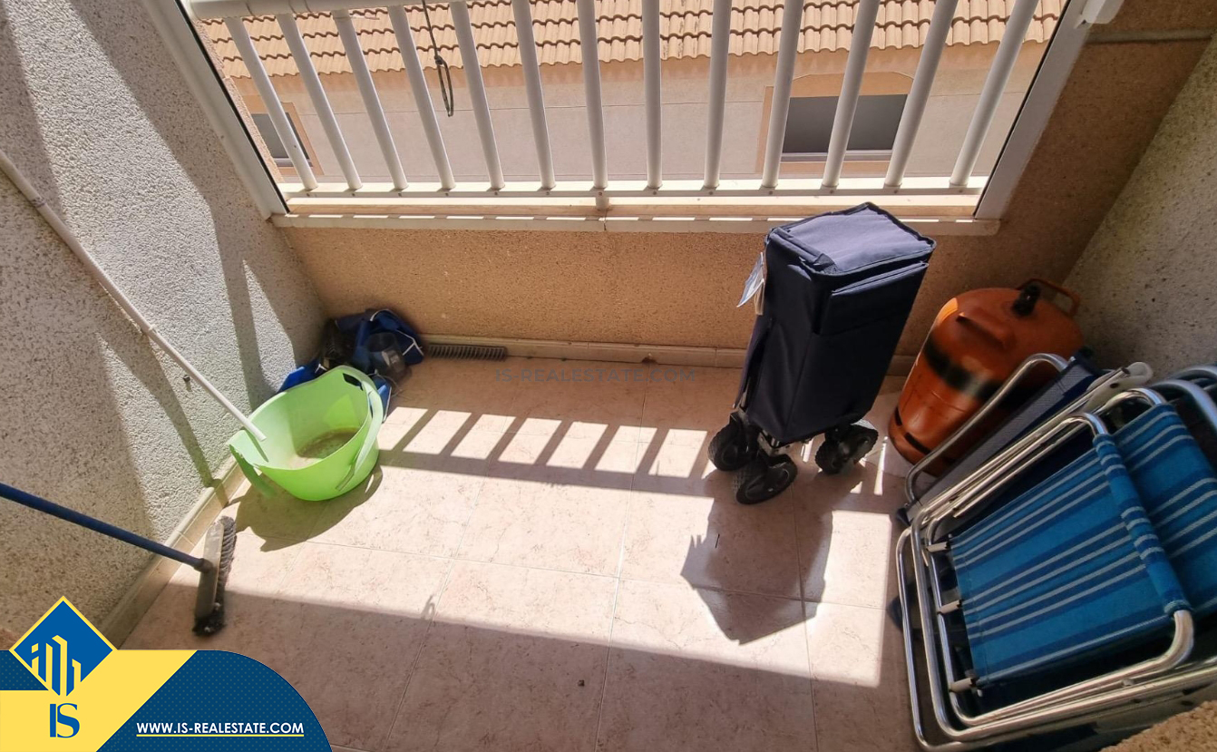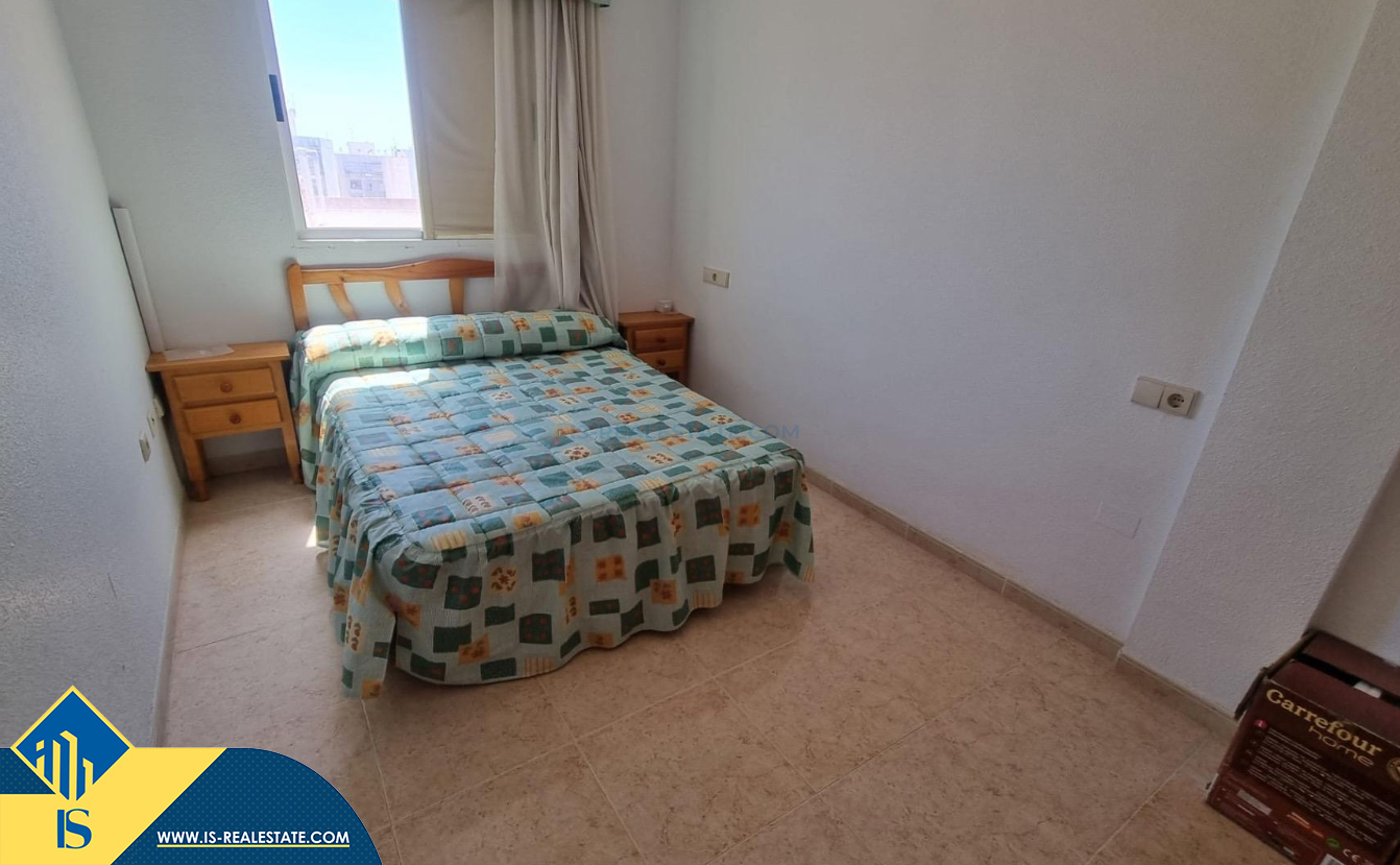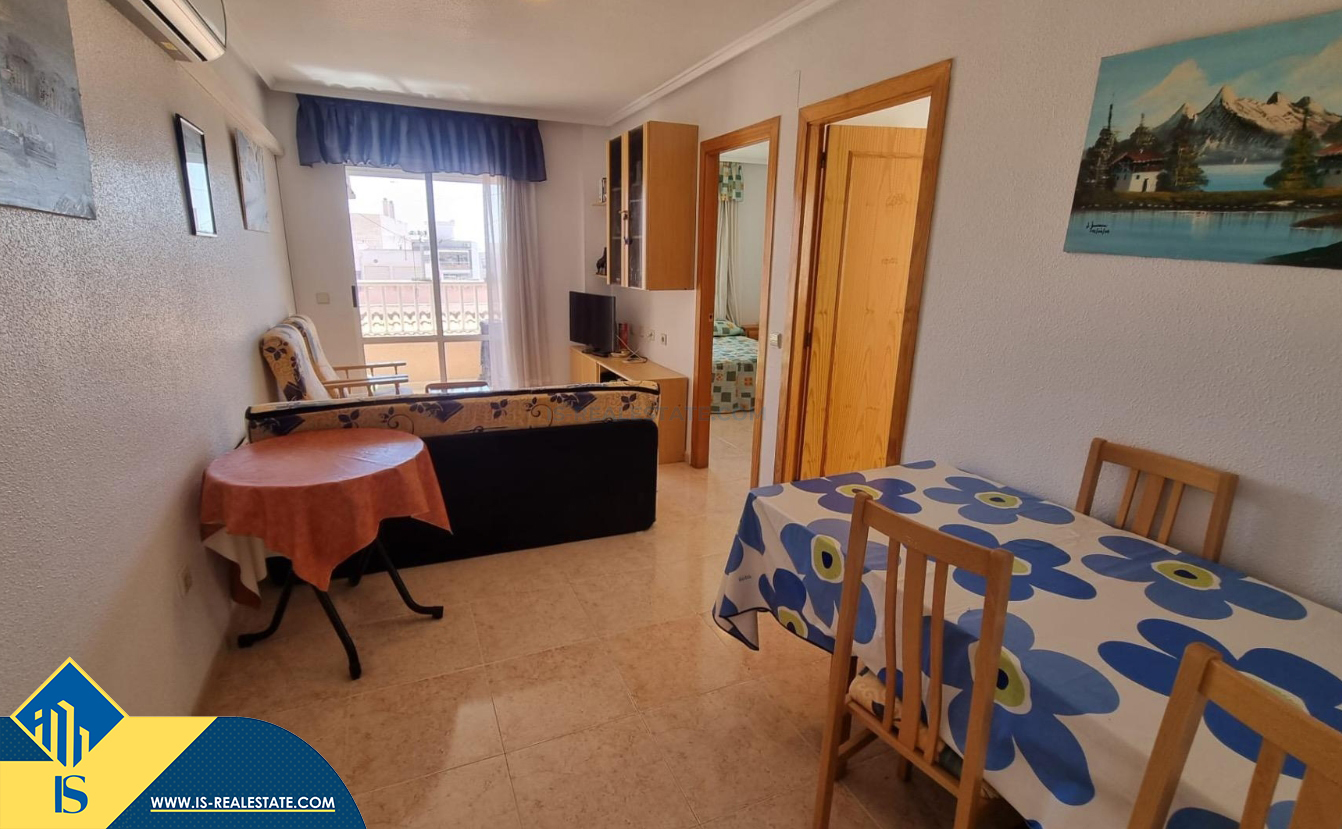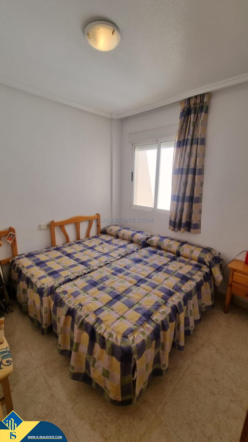3-jų kambarių apartamentas su bendru baseinu, Ispanijoje, Alicante provincijoje, Torrevieja mieste, bendras plotas 57 m², 600 metrų iki jūros, 45 kilometrai iki Alicante oro uosto. Turtui priklauso bendras baseinas, terasa, liftas. Netoli turto yra parduotuvės, restoranai, vaistinės, autobusų stotelės, degalinės, žalios zonos, kavinės