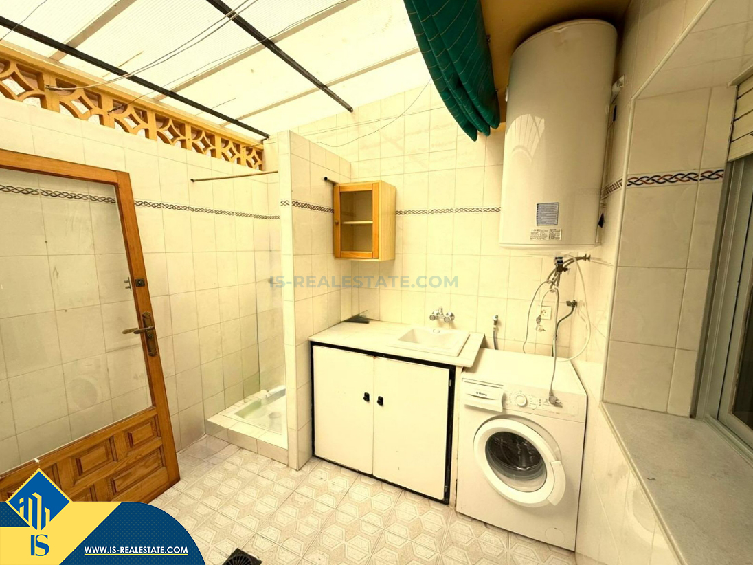 3-jų kambarių namas su balkonu, Ispanijoje, Alicante provincijoje, Torrevieja mieste, Playa del Acequión rajone, bendras plotas 90 m², 250 metrų iki jūros, 45 kilometrai iki Alicante oro uosto. Turtui priklauso balkonas, garažas. Netoli turto yra parduotuvės, restoranai, vaistinės, autobusų stotelės, degalinės, žalios zonos, kavinės