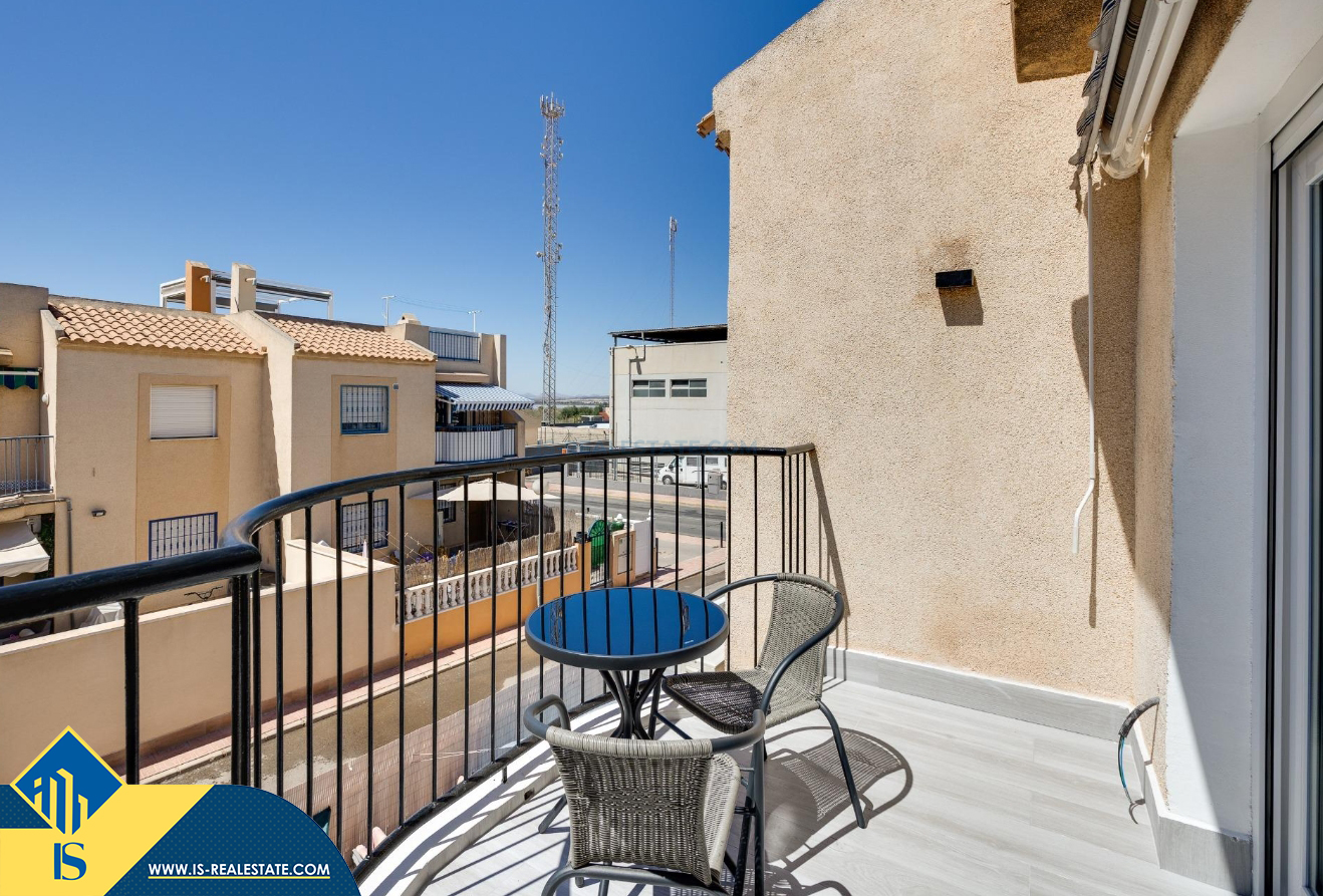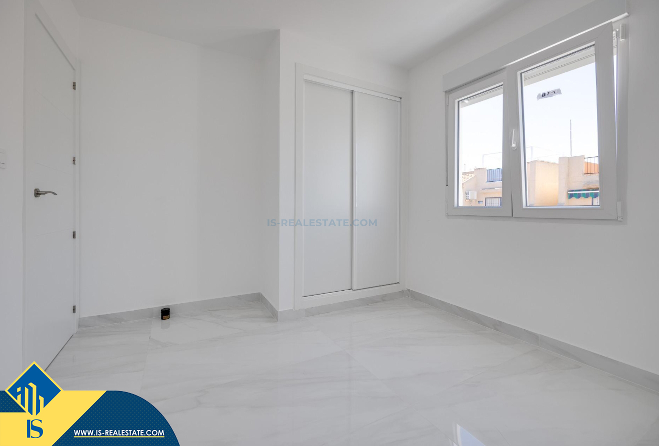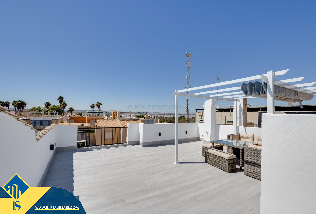 3-jų kambarių renovuotas duplex penthouse apartamentas su bendru baseinu, Ispanijoje, Alicante provincijoje, Torrevieja mieste, Torreta rajone, bendras plotas 55 m², 4 kilometrai iki jūros, 45 kilometrai iki Alicante oro uosto. Turtui priklauso bendras baseinas, terasa, soliariumas, vieta automobiliui. Netoli turto yra parduotuvės, restoranai, autobusų stotelės, degalinės, žalios zonos, kavinės, vaistinės