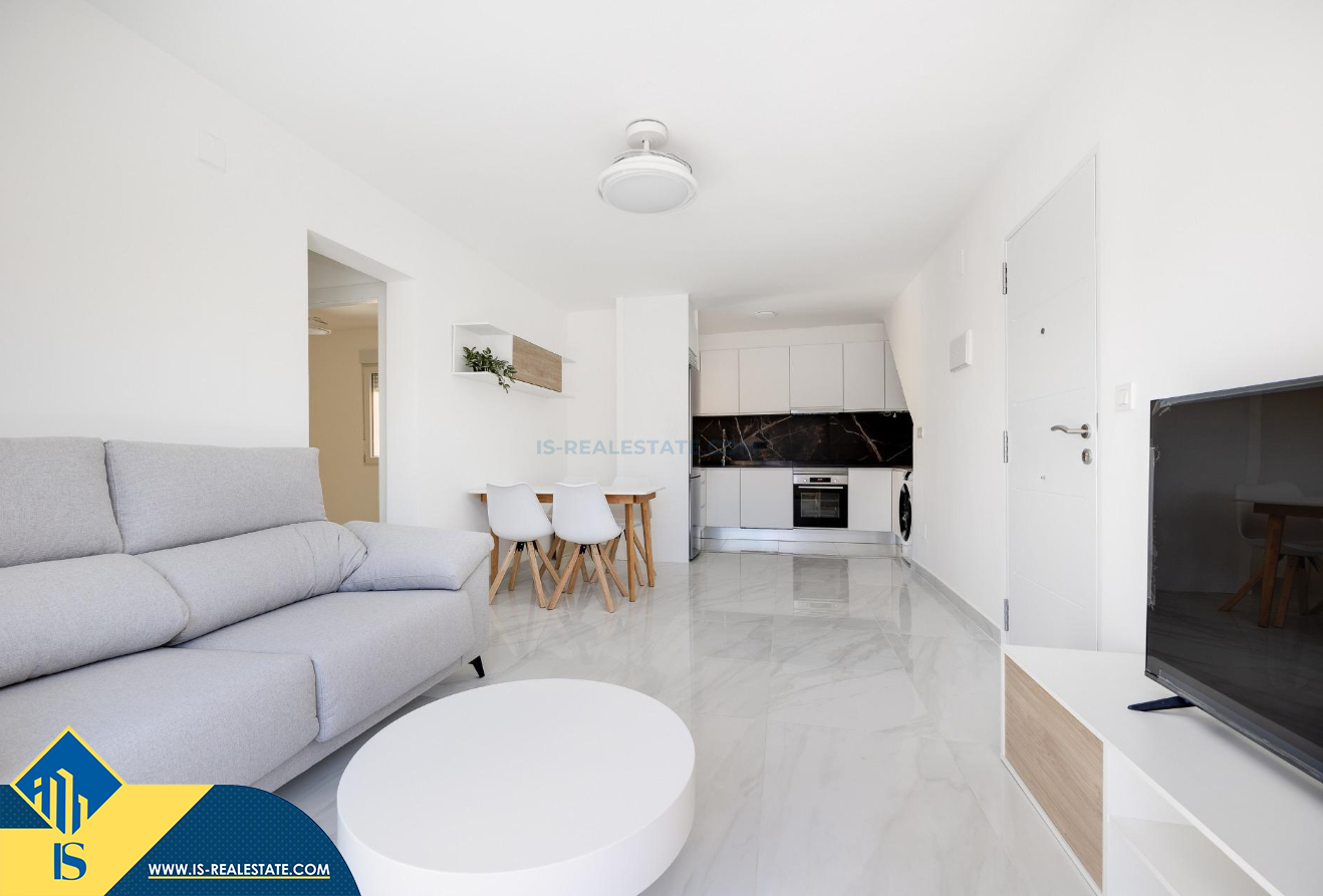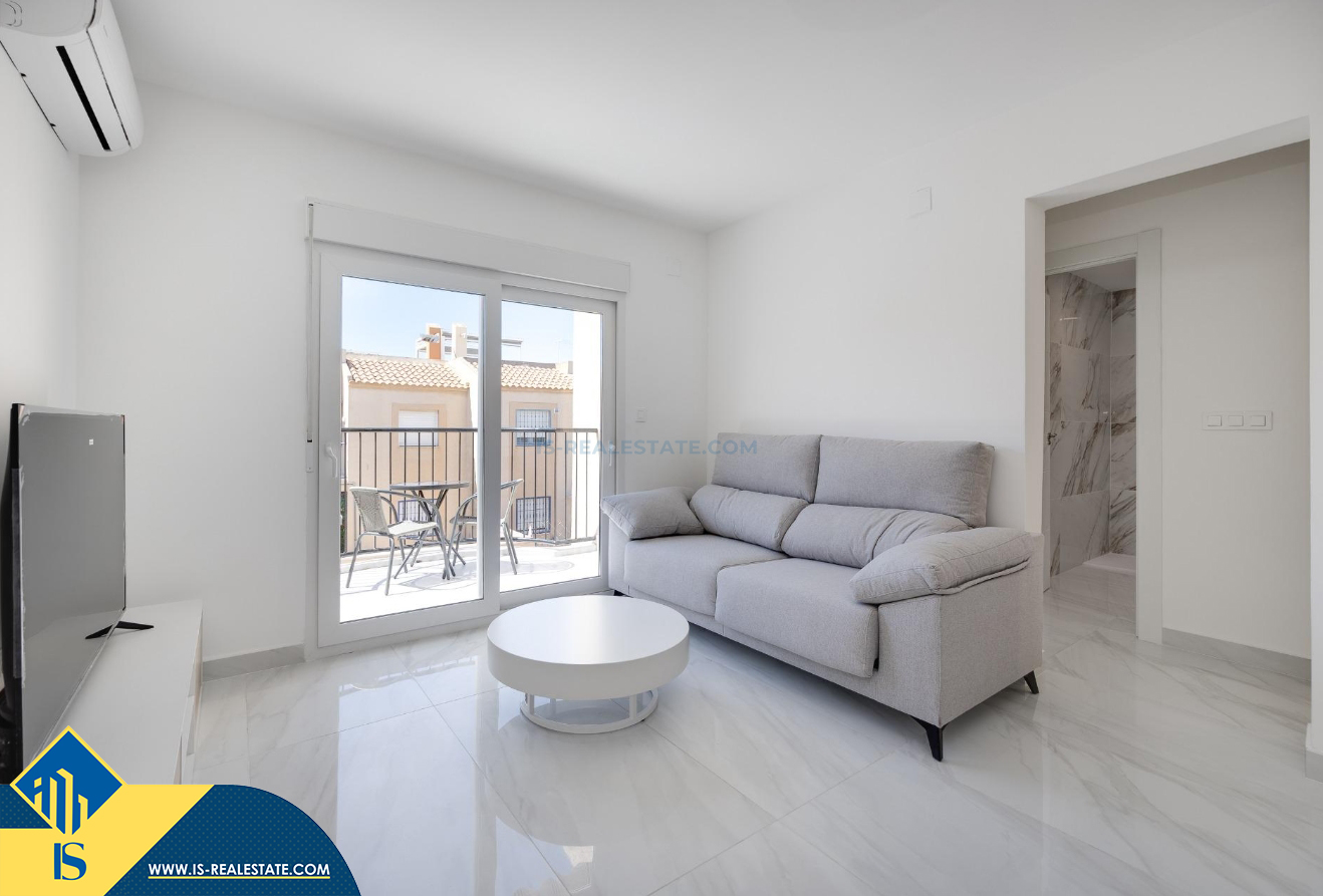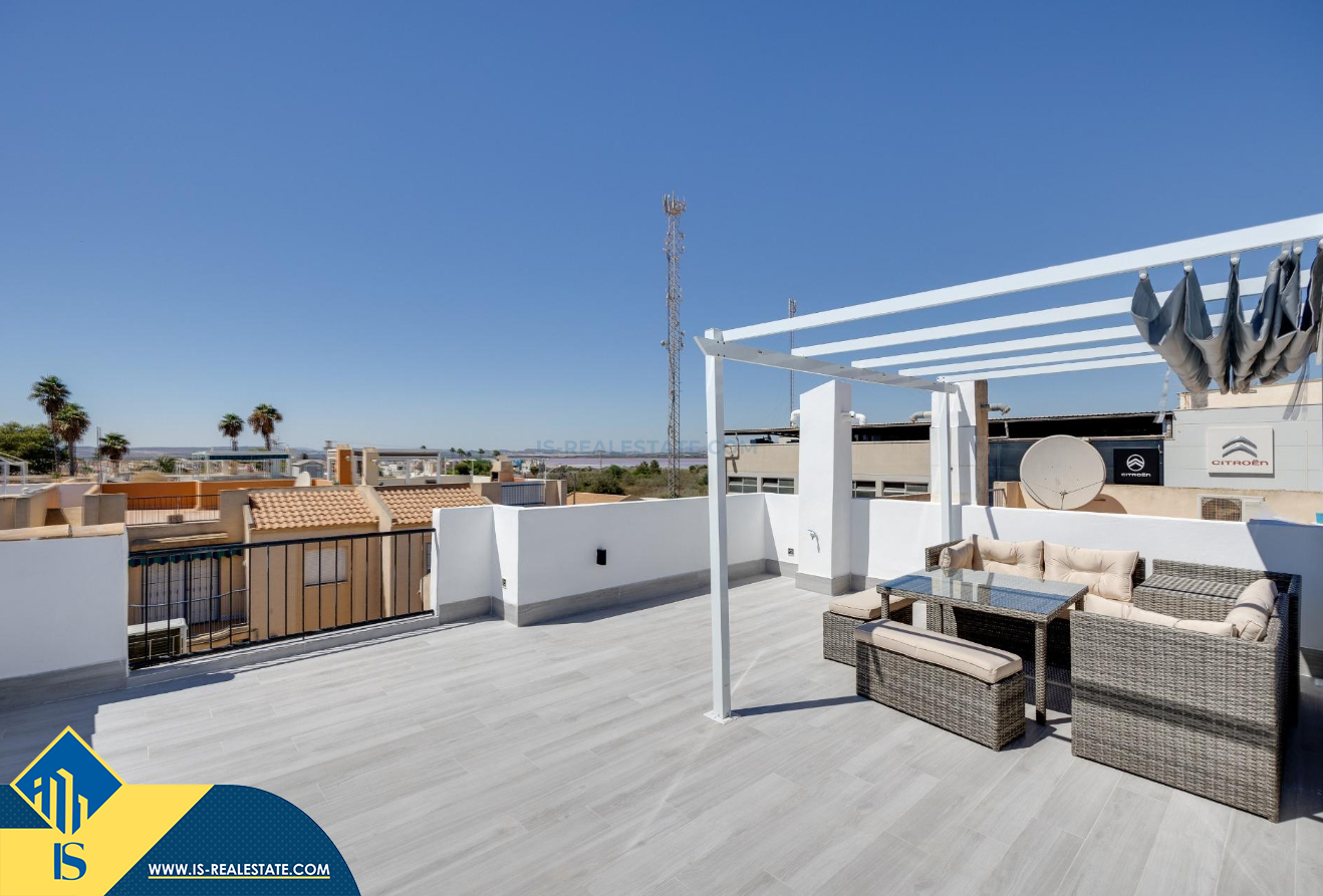 3-jų kambarių renovuotas duplex penthouse apartamentas su bendru baseinu, Ispanijoje, Alicante provincijoje, Torrevieja mieste, Torreta rajone, bendras plotas 55 m², 4 kilometrai iki jūros, 45 kilometrai iki Alicante oro uosto. Turtui priklauso bendras baseinas, terasa, soliariumas, vieta automobiliui. Netoli turto yra parduotuvės, restoranai, autobusų stotelės, degalinės, žalios zonos, kavinės, vaistinės