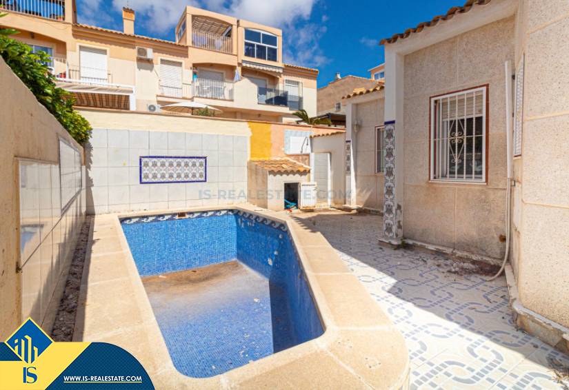 4-ių kambarių vila su privačiu baseinu, Ispanijoje, Alicante provincijoje, Orihuela Costa mieste, bendras plotas 120 m², 2 kilometrai iki jūros, 57 kilometrai iki Alicante oro uosto. Turtui priklauso privatus baseinas, terasa, vieta automobiliui, privatus kiemas, soliariumas. Netoli turto yra parduotuvės, restoranai, autobusų stotelės, vaikų zonos, degalinės, žalios zonos, kavinės, ligoninė