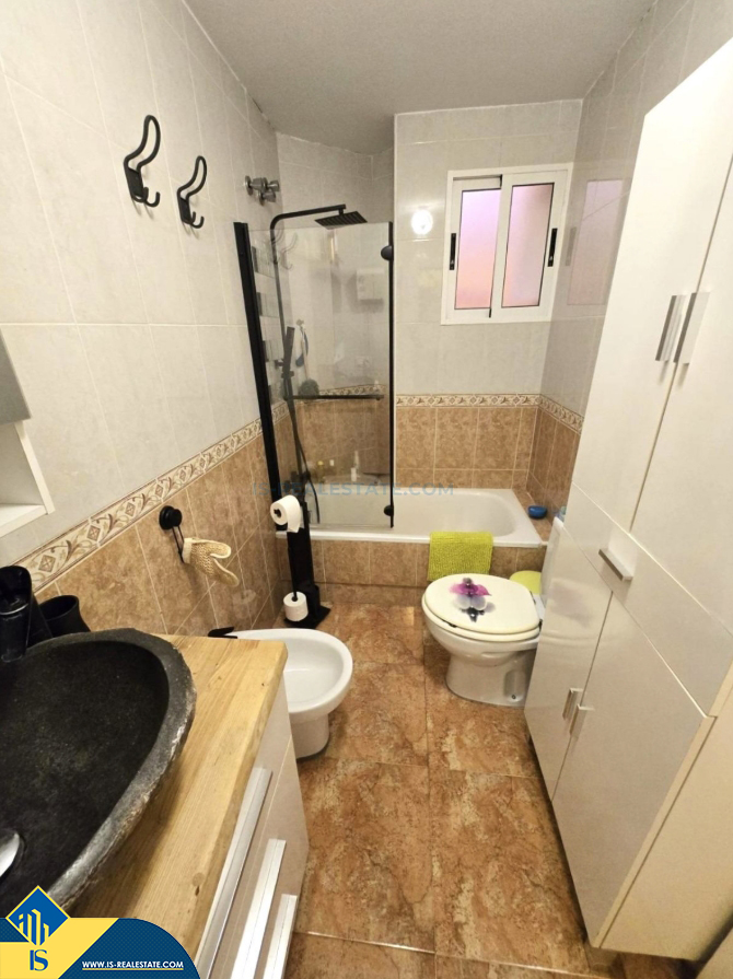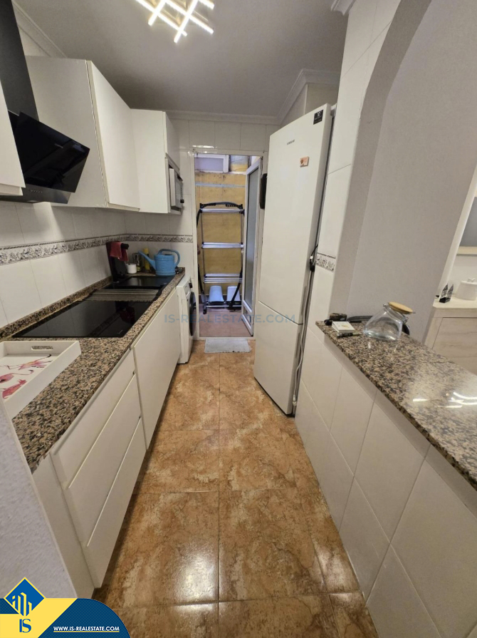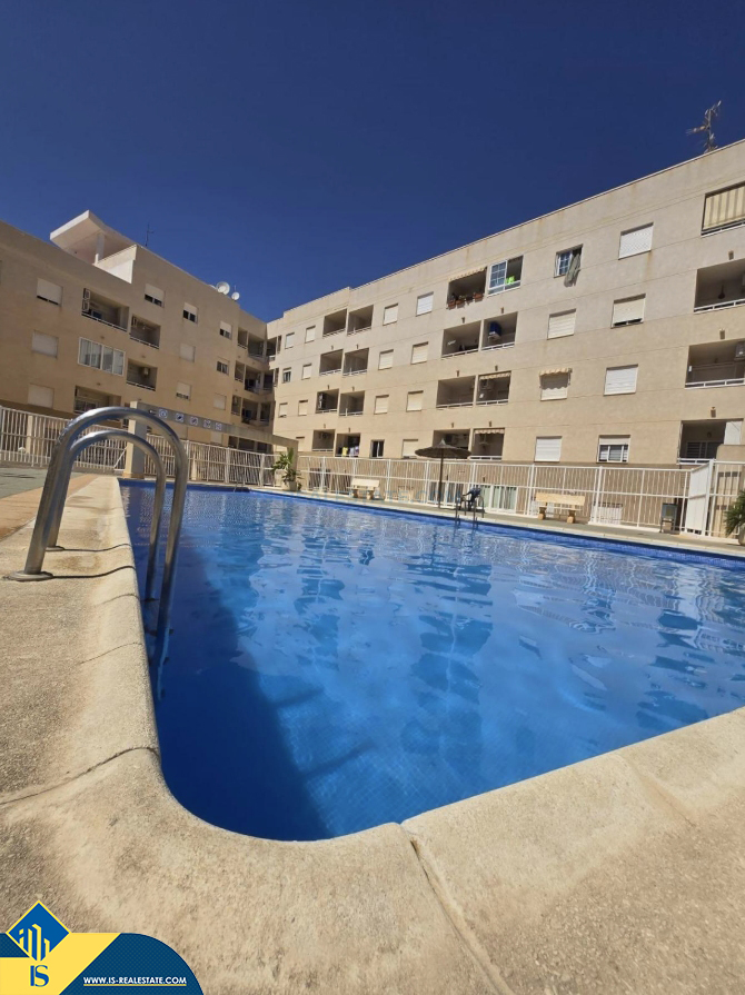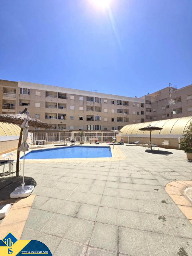 3-jų kambarių renovuotas apartamentas su bendru baseinu, Ispanijoje, Alicante provincijoje, Torrevieja mieste, bendras plotas 64 m², 1.2 kilometro iki jūros, 45 kilometrai iki Alicante oro uosto. Turtui priklauso bendras baseinas, balkonas, liftas, garažas, sandėliukas. Netoli turto yra parduotuvės, restoranai, vaistinės, autobusų stotelės, degalinės, žalios zonos, kavinės