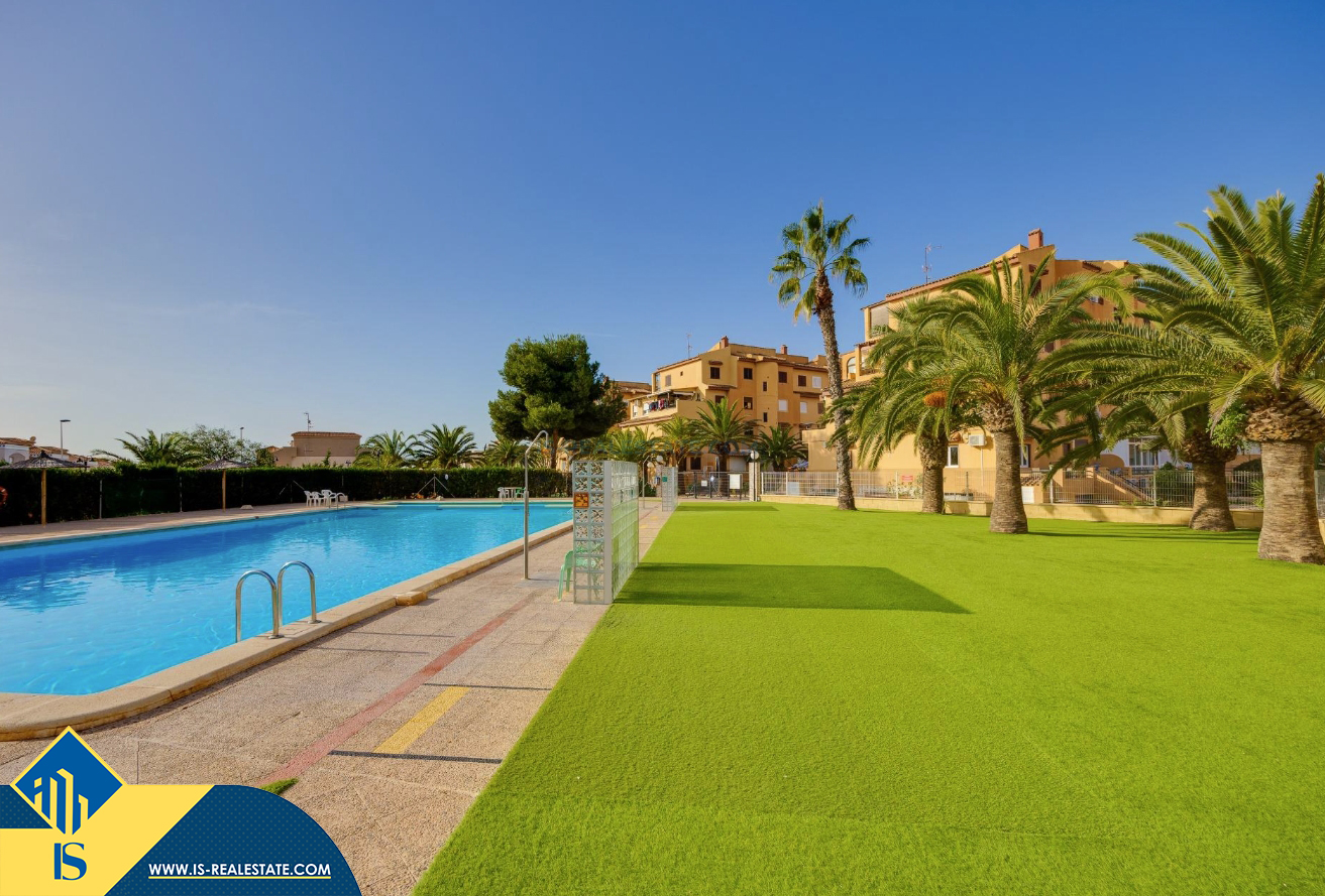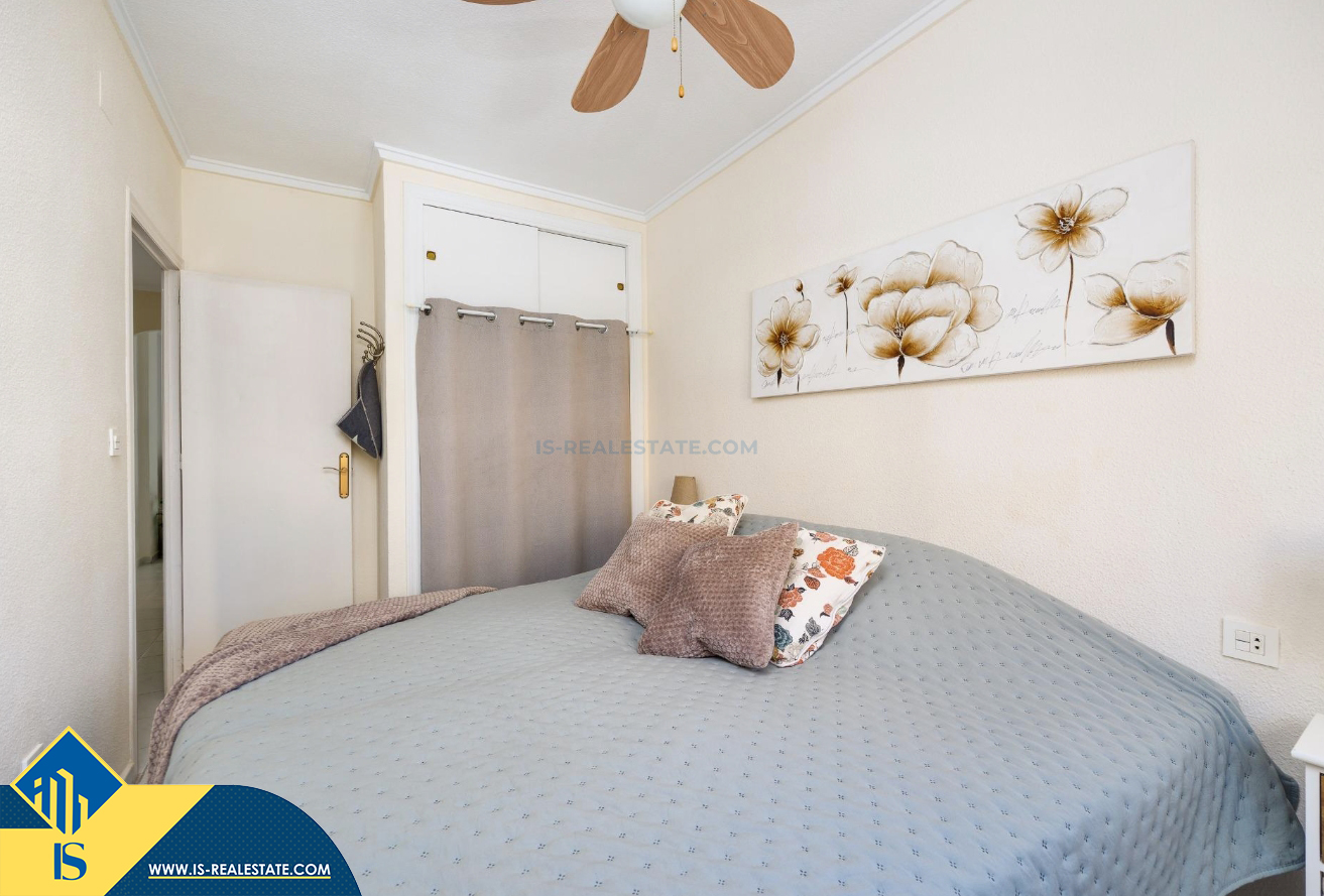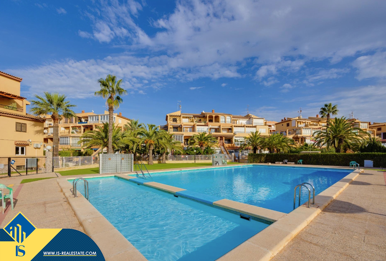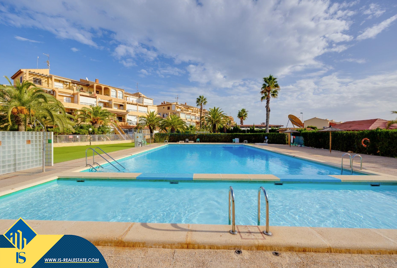 2-jų kambarių apartamentas su bendru baseinu, Ispanijoje, Alicante provincijoje, Torrevieja mieste, bendras plotas 39 m², 950 metrų iki jūros, 45 kilometrai iki Alicante oro uosto. Turtui priklauso bendras baseinas, balkonas. Netoli turto yra parduotuvės, restoranai, vaistinės, autobusų stotelės, degalinės, žalios zonos, kavinės