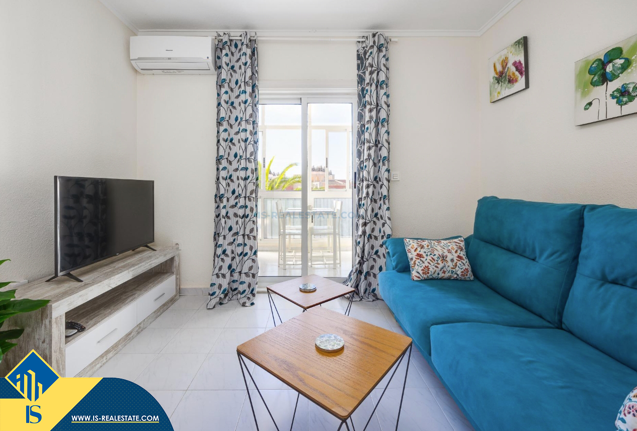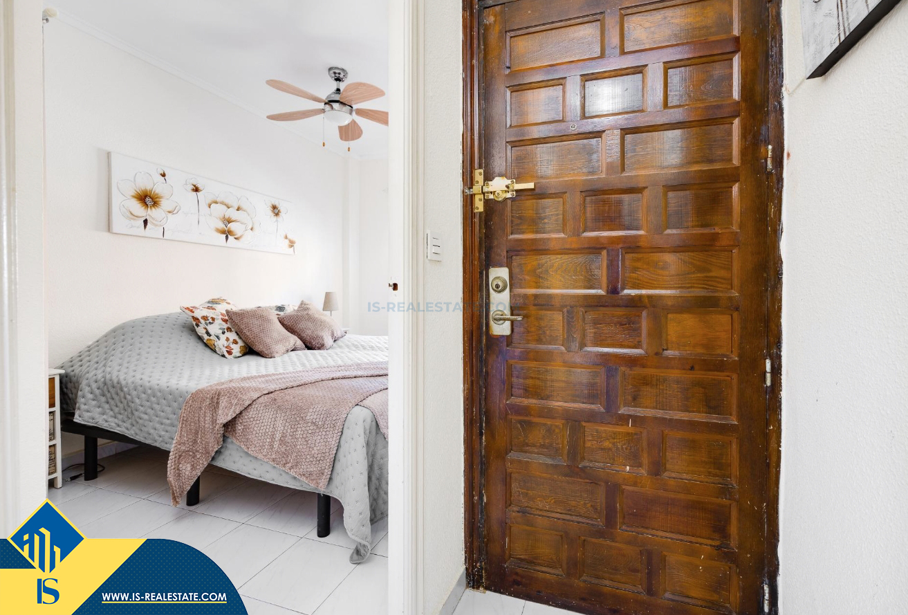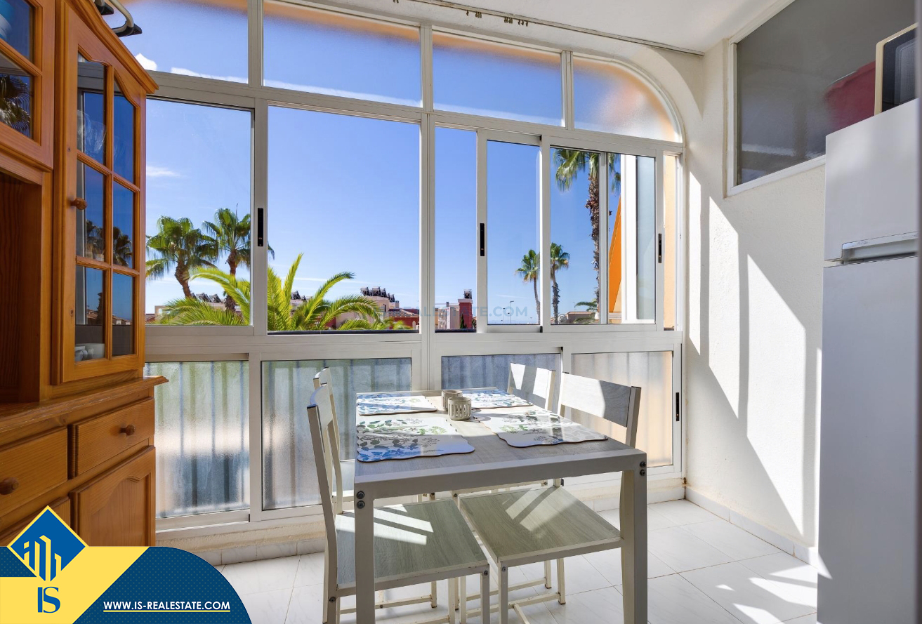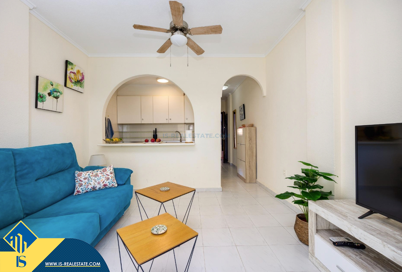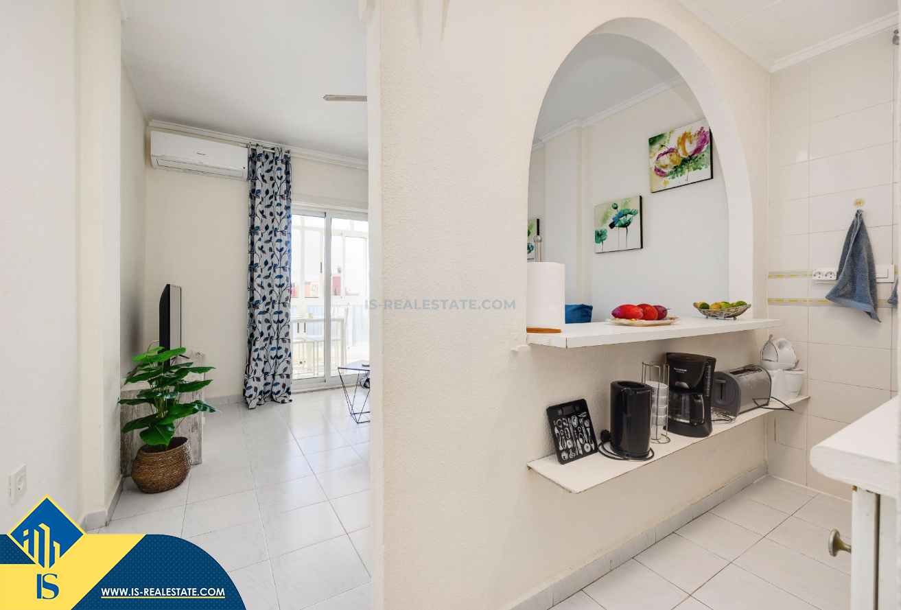 2-jų kambarių apartamentas su bendru baseinu, Ispanijoje, Alicante provincijoje, Torrevieja mieste, bendras plotas 39 m², 950 metrų iki jūros, 45 kilometrai iki Alicante oro uosto. Turtui priklauso bendras baseinas, balkonas. Netoli turto yra parduotuvės, restoranai, vaistinės, autobusų stotelės, degalinės, žalios zonos, kavinės