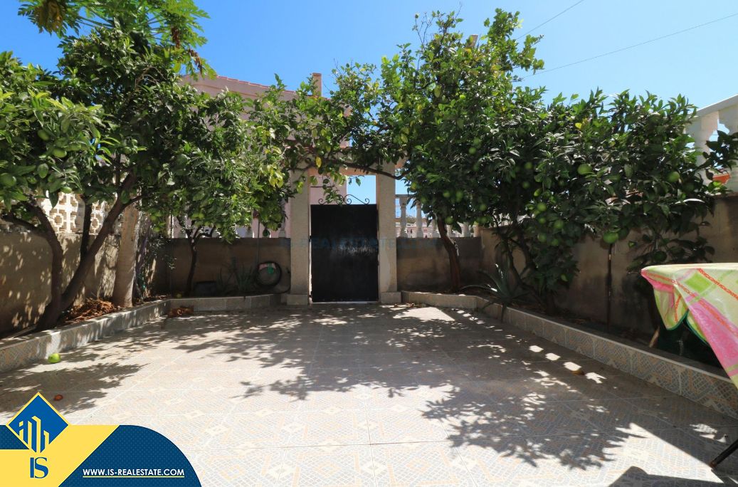 4-ių kambarių bungalas su terasa, Ispanijoje, Alicante provincijoje, Torrevieja mieste, Playa del Acequión rajone, bendras plotas 90 m², 250 metrų iki jūros, 45 kilometrai iki Alicante miesto oro uosto. Netoli turto yra parduotuvės, restoranai, vaistinės, autobusų stotelės, degalinės, žalios zonos, kavinės