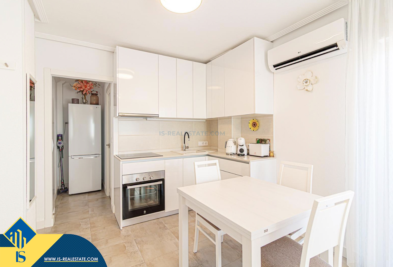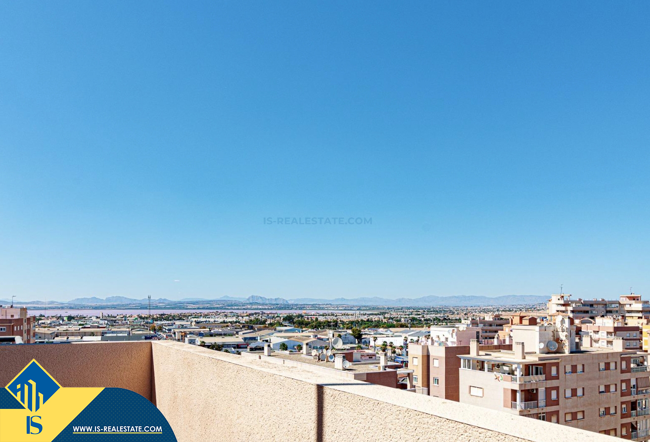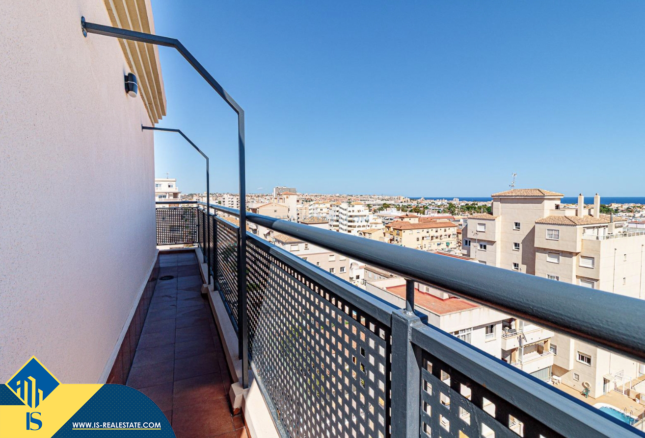 2-jų kambarių renovuotas duplex penthouse apartamentas su terasa, Ispanijoje, Alicante provincijoje, Torrevieja mieste, bendras plotas 58 m², 1 kilometras iki jūros, 45 kilometrai iki Alicante oro uosto. Turtui priklauso terasa, liftas, garažas. Netoli turto yra parduotuvės, restoranai, autobusų stotelės, degalinės, žalios zonos, kavinės, vaistinės