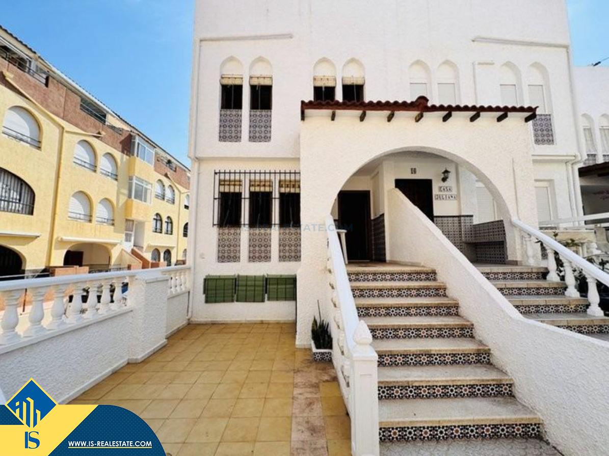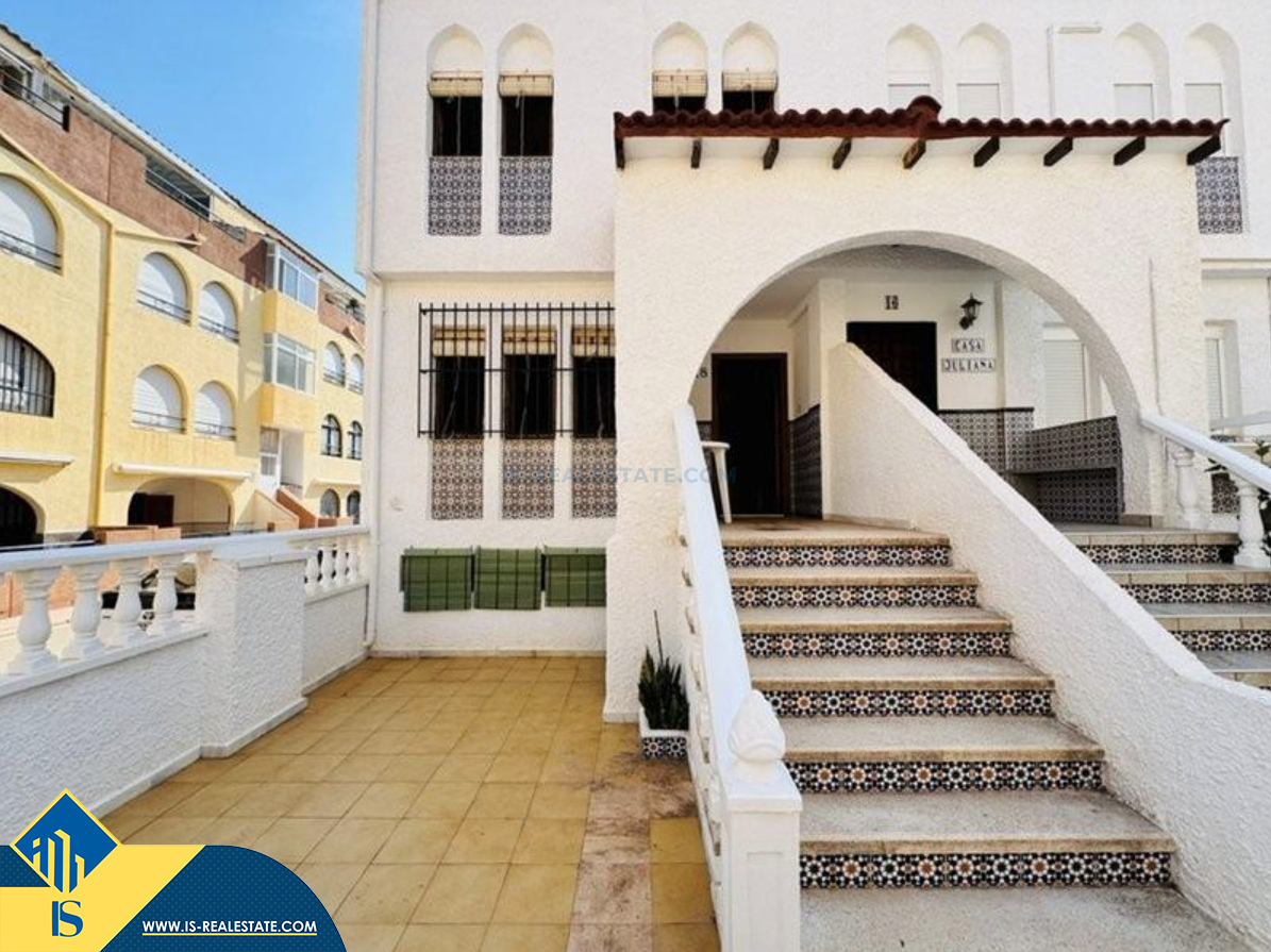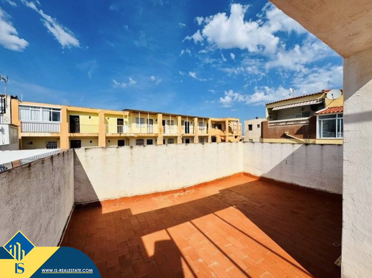 4-ių kambarių namas su terasa, Ispanijoje, Alicante provincijoje, Torrevieja mieste, La Mata rajone, bendras plotas 100 m², 300 metrų iki jūros, 38 kilometrai iki Alicante oro uosto. Turtui priklauso terasa, soliariumas. Netoli turto yra parduotuvės, restoranai, autobusų stotelės, vaikų zonos, degalinės, žalios zonos, kavinės