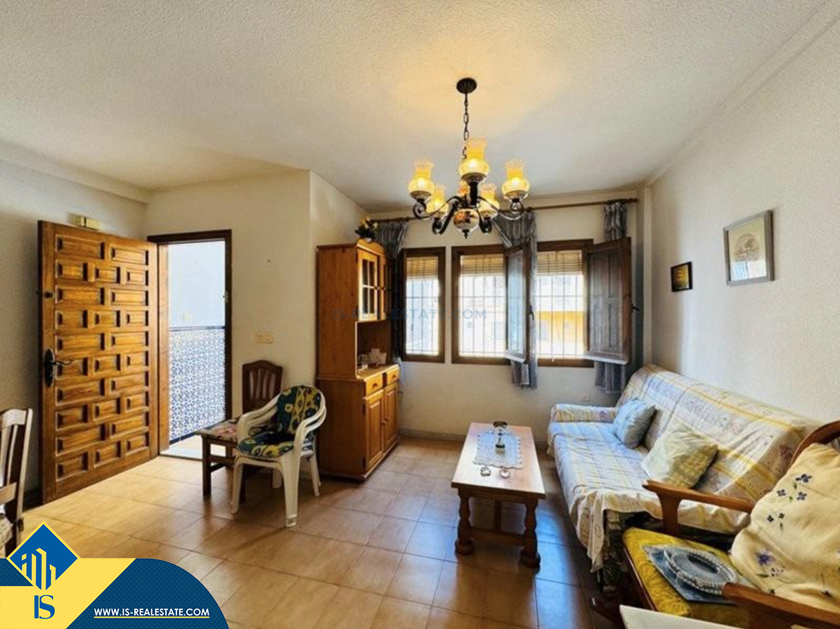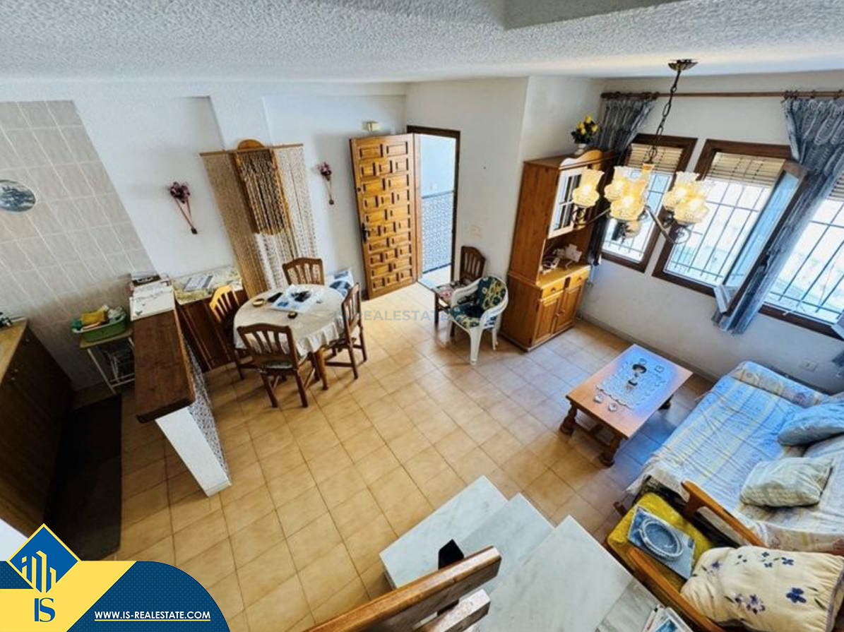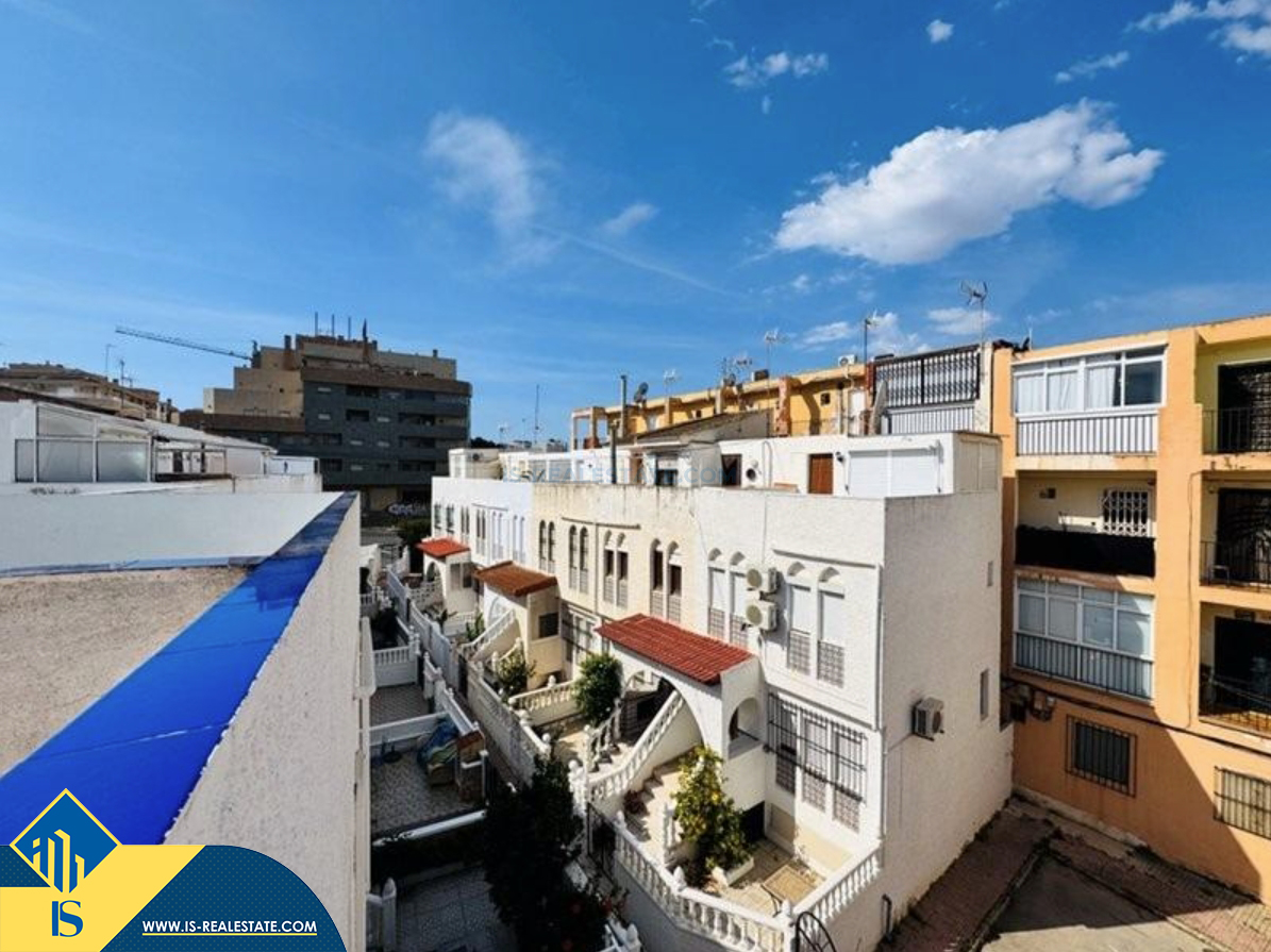 4-ių kambarių namas su terasa, Ispanijoje, Alicante provincijoje, Torrevieja mieste, La Mata rajone, bendras plotas 100 m², 300 metrų iki jūros, 38 kilometrai iki Alicante oro uosto. Turtui priklauso terasa, soliariumas. Netoli turto yra parduotuvės, restoranai, autobusų stotelės, vaikų zonos, degalinės, žalios zonos, kavinės