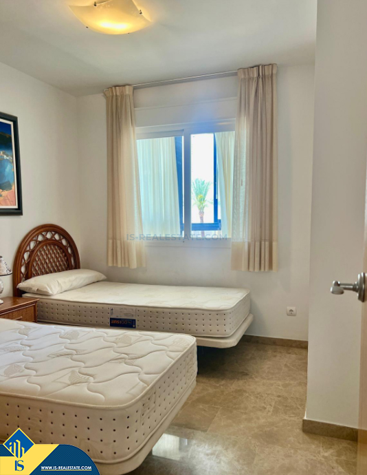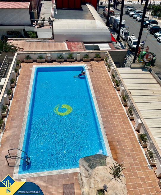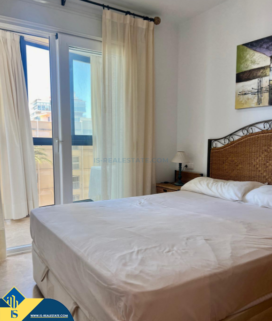 4-ių kambarių apartamentas su bendru baseinu, Ispanijoje, Alicante provincijoje, Benidorm mieste, bendras plotas 118 m², 100 metrų iki jūros, 55 kilometrai iki Alicante oro uosto. Turtui priklauso bendras baseinas, terasa, liftas, vieta automobiliui. Netoli turto yra parduotuvės, restoranai, autobusų stotelės, vaikų zonos, degalinės, žalios zonos, kavinės
