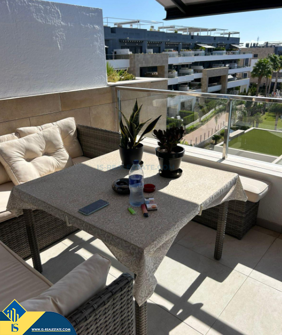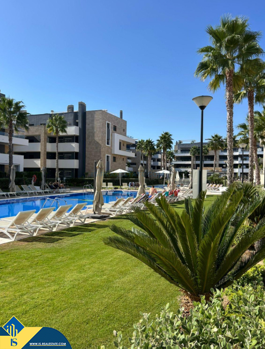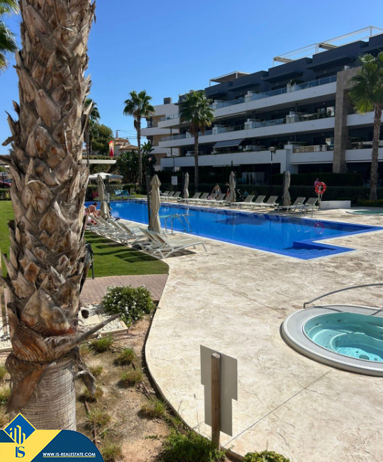 3-jų kambarių apartamentas su bendru baseinu, Ispanijoje, Alicante provincijoje, Orihuela Costa mieste, bendras plotas 80 m², 1 kilometras iki jūros, 57 kilometrai iki Alicante oro uosto. Turtui priklauso bendras baseinas, terasa, liftas, vieta automobiliui. Netoli turto yra parduotuvės, restoranai, autobusų stotelės, vaikų zonos, degalinės, žalios zonos, kavinės, ligoninė