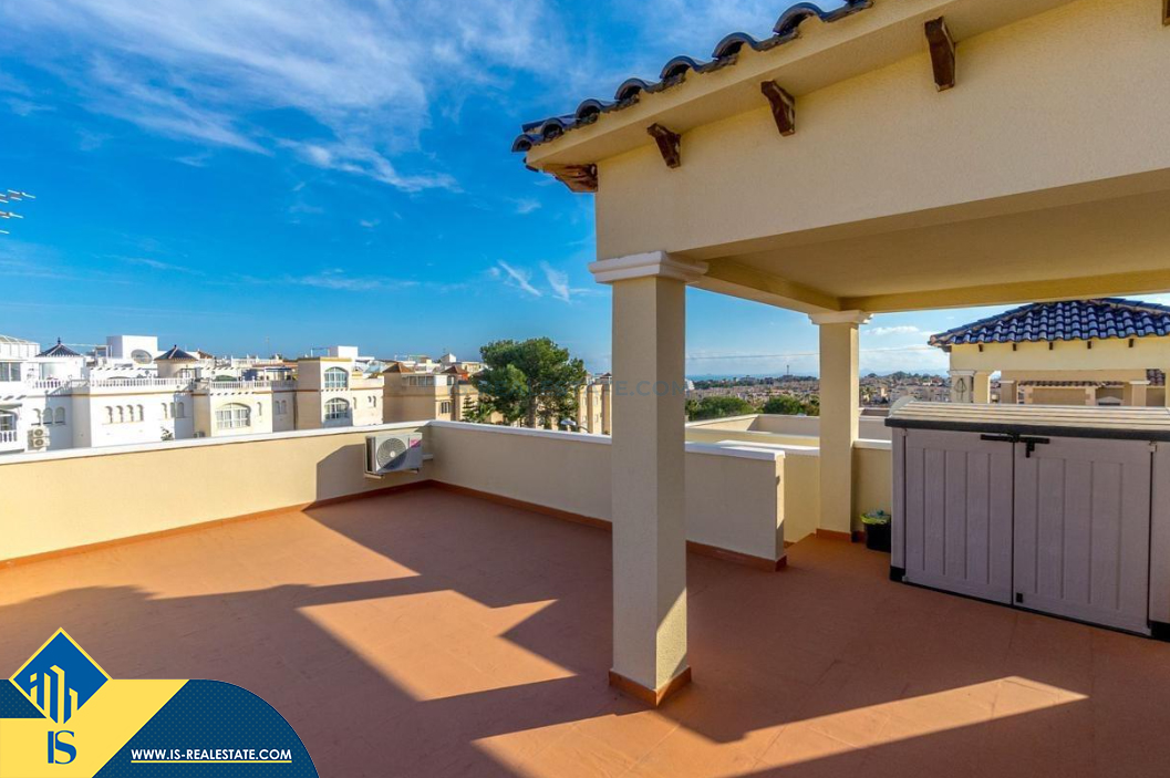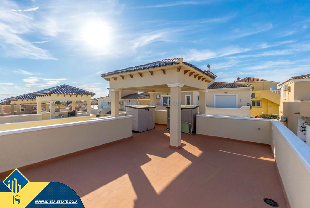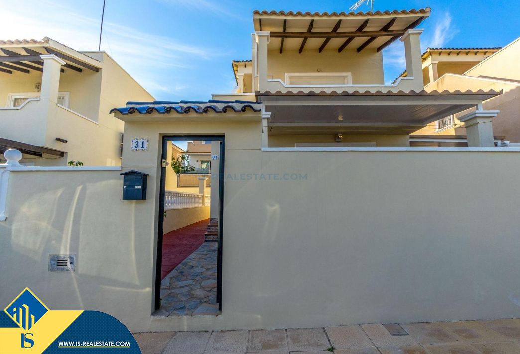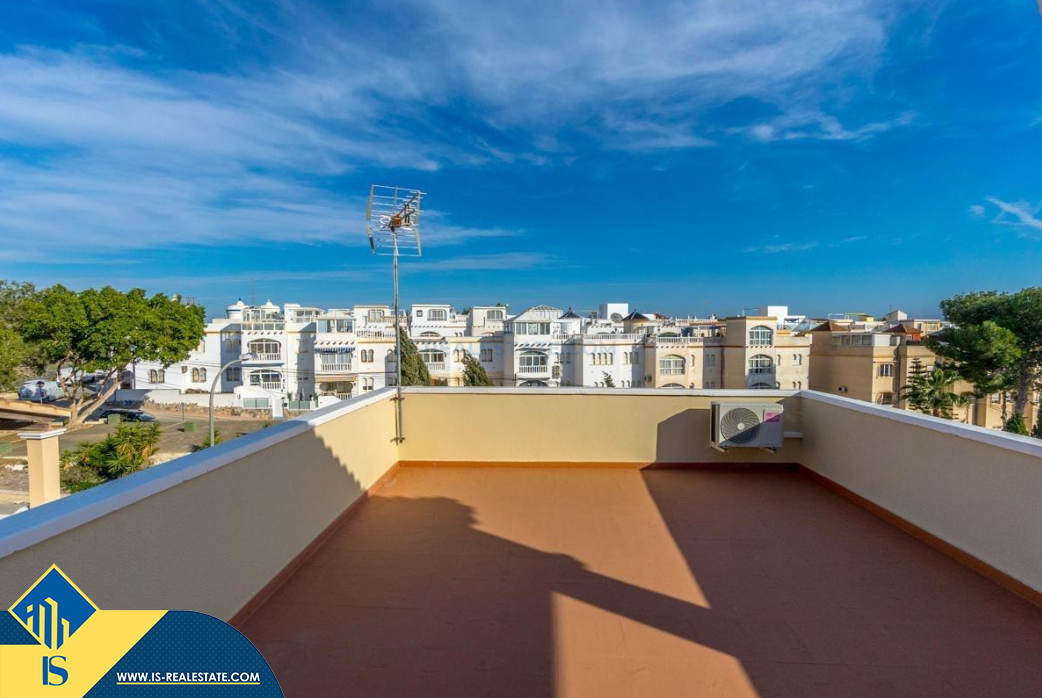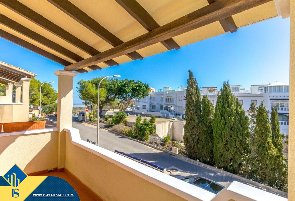 4-ių kambarių namas su bendru baseinu, Ispanijoje, Alicante provincijoje, Orihuela Costa mieste, bendras plotas 105 m², 4 kilometrai iki jūros, 57 kilometrai iki Alicante oro uosto. Turtui priklauso bendras baseinas, terasa, vieta automobiliui, privatus kiemas. Netoli turto yra parduotuvės, restoranai, autobusų stotelės, vaikų zonos, degalinės, žalios zonos, kavinės, ligoninė