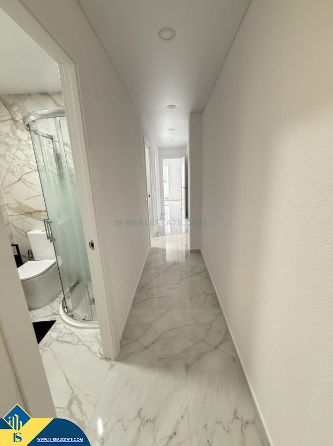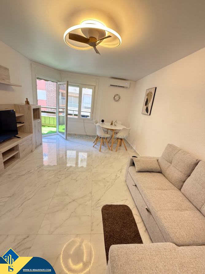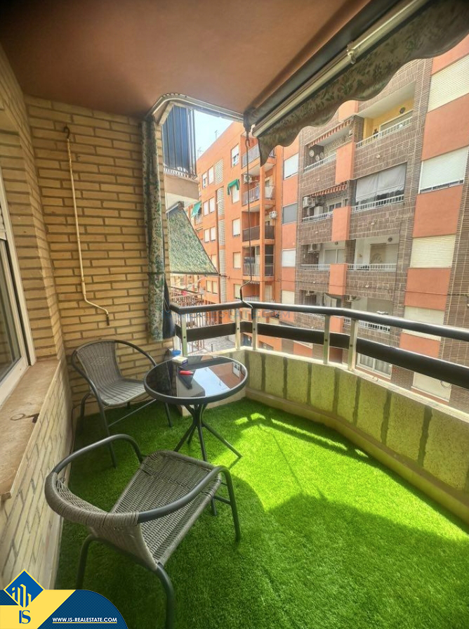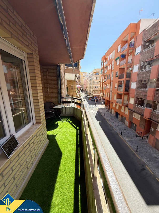 4-ių kambarių renovuotas apartamentas su terasa, Ispanijoje, Alicante provincijoje, Torrevieja mieste, Playa del Cura rajone, bendras plotas 105 m², 100 metrų iki jūros, 45 kilometrai iki Alicante oro uosto. Turtui priklauso terasa. Netoli turto yra parduotuvės, restoranai, vaistinės, autobusų stotelės, degalinės, žalios zonos, kavinės