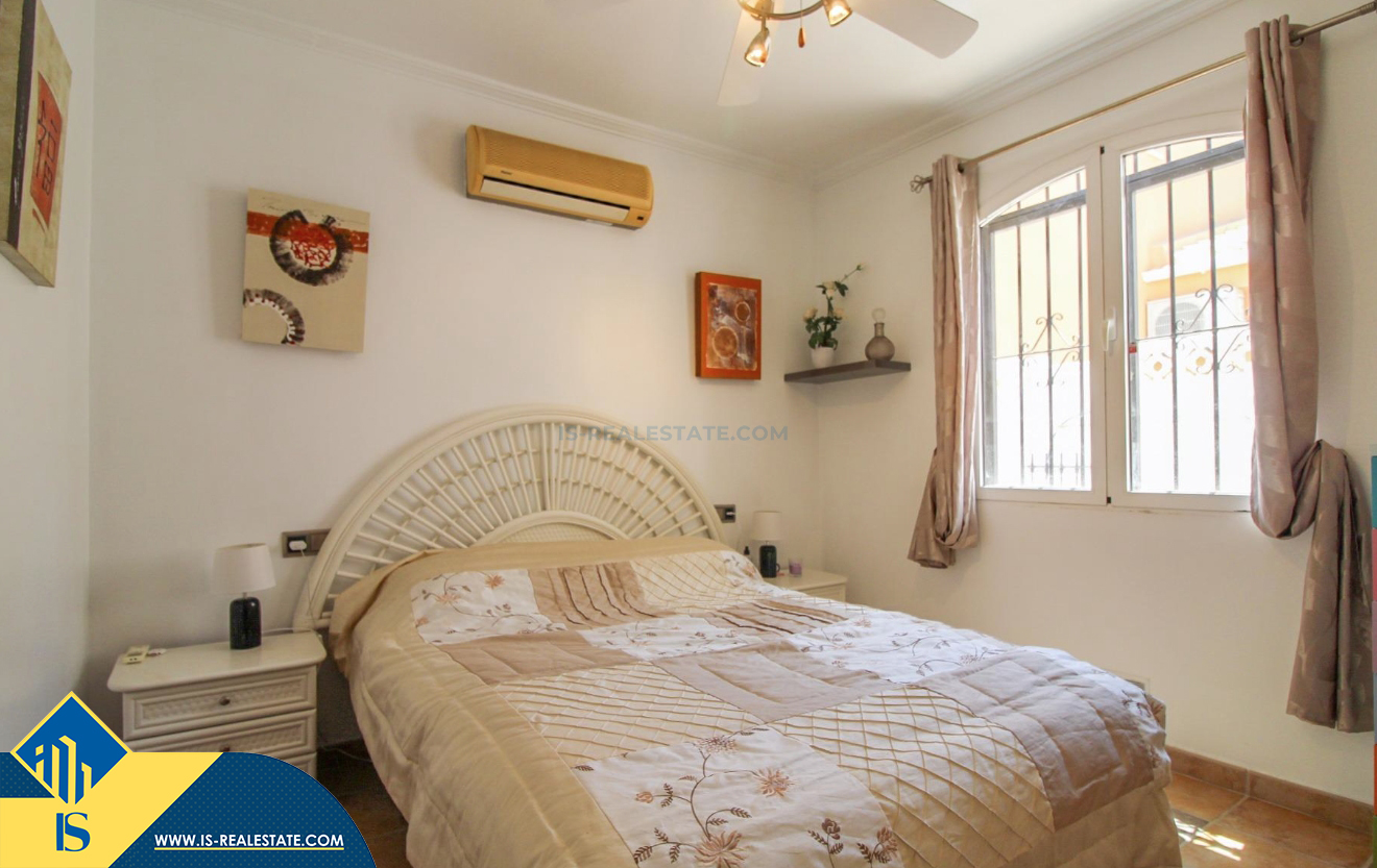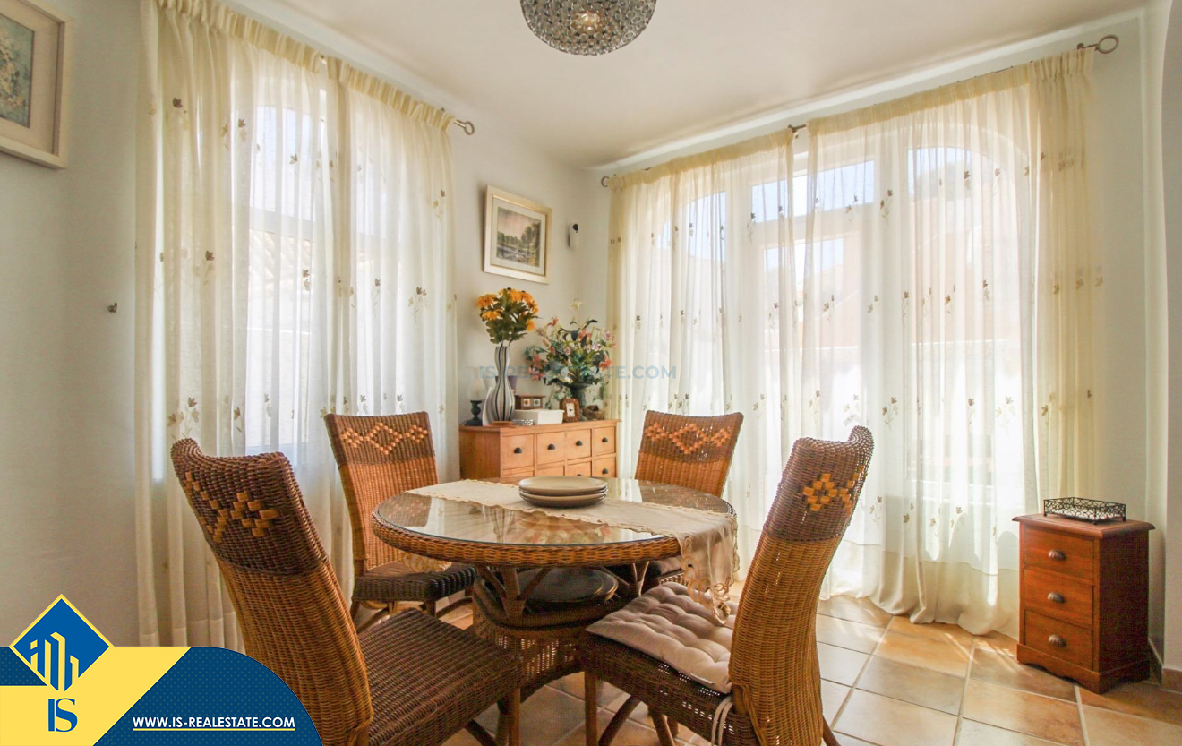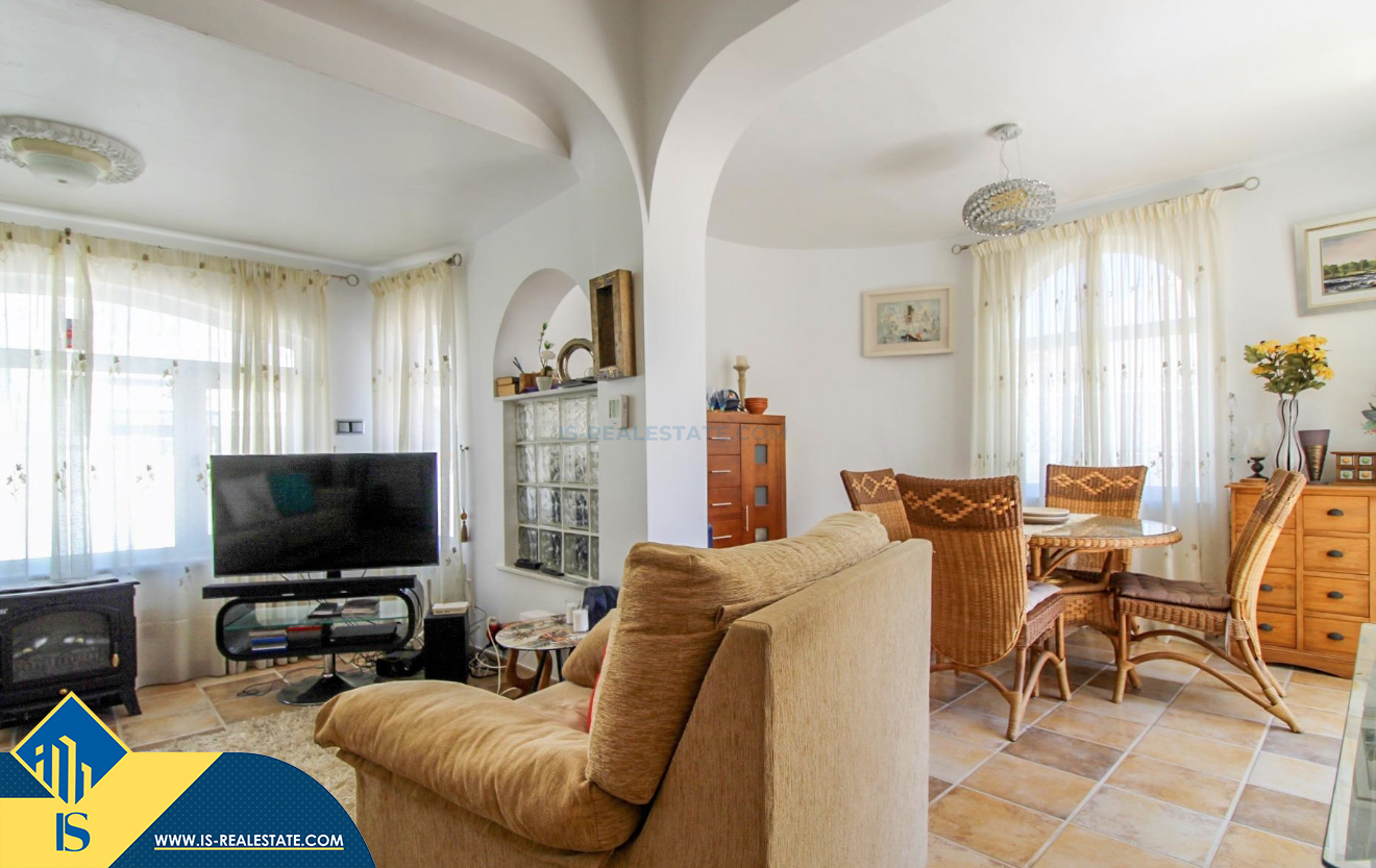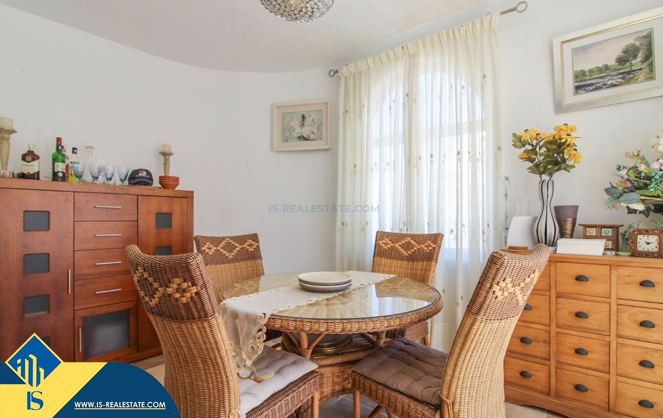 4-ių kambarių vila su terasa, Ispanijoje, Alicante provincijoje, Orihuela Costa mieste, bendras plotas 120 m², 400 metrų iki jūros, 57 kilometrai iki Alicante oro uosto. Turtui priklauso terasa, vieta automobiliui, privatus kiemas. Netoli turto yra parduotuvės, restoranai, autobusų stotelės, vaikų zonos, degalinės, žalios zonos, kavinės, ligoninė
