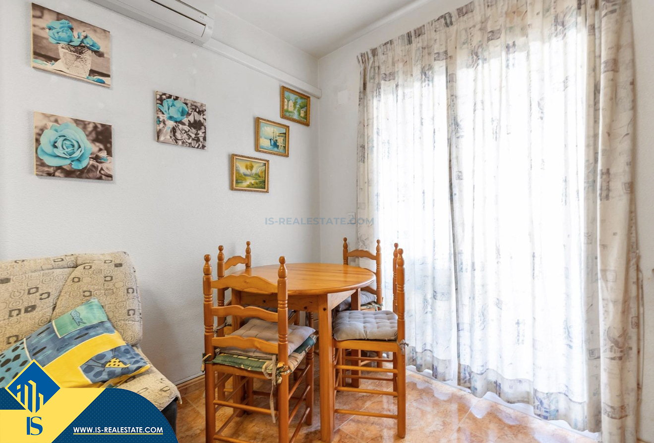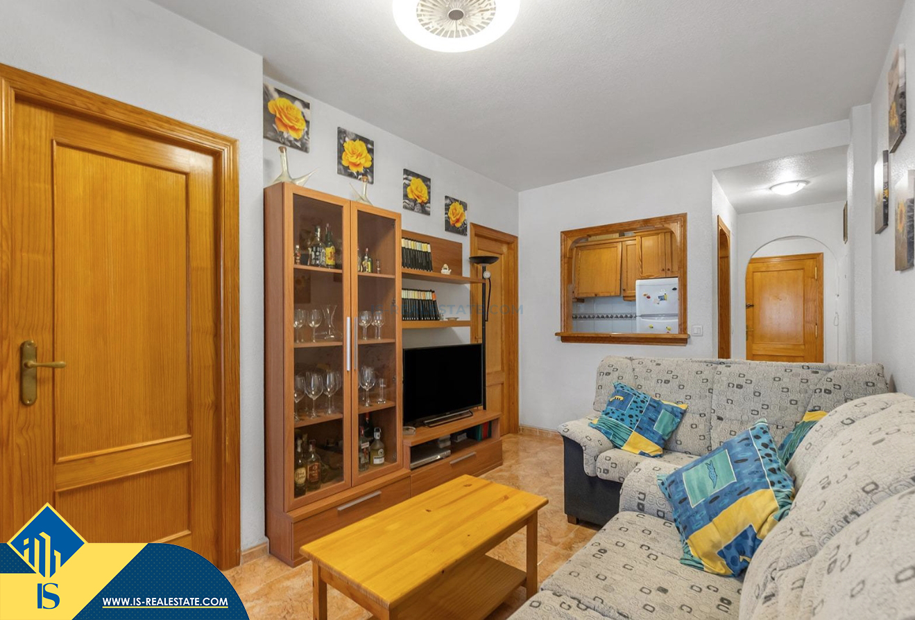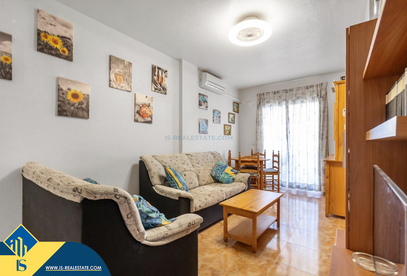 3-jų kambarių apartamentas su bendru baseinu, Ispanijoje, Alicante provincijoje, Torrevieja mieste, bendras plotas 58 m², 650 metrų iki jūros, 45 kilometrai iki Alicante oro uosto. Turtui priklauso bendras baseinas, terasa, liftas, garažas. Netoli turto yra parduotuvės, restoranai, vaistinės, autobusų stotelės, degalinės, žalios zonos, kavinės