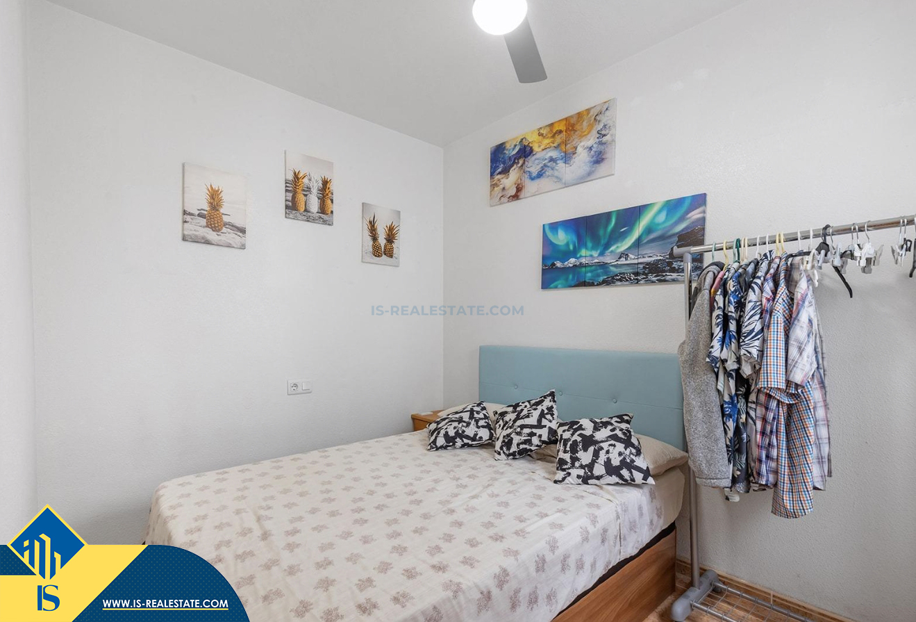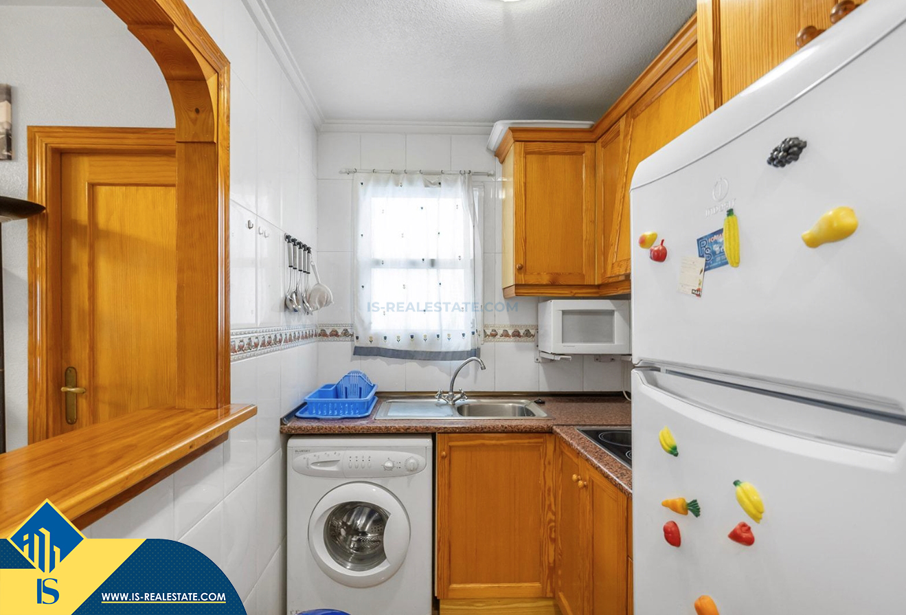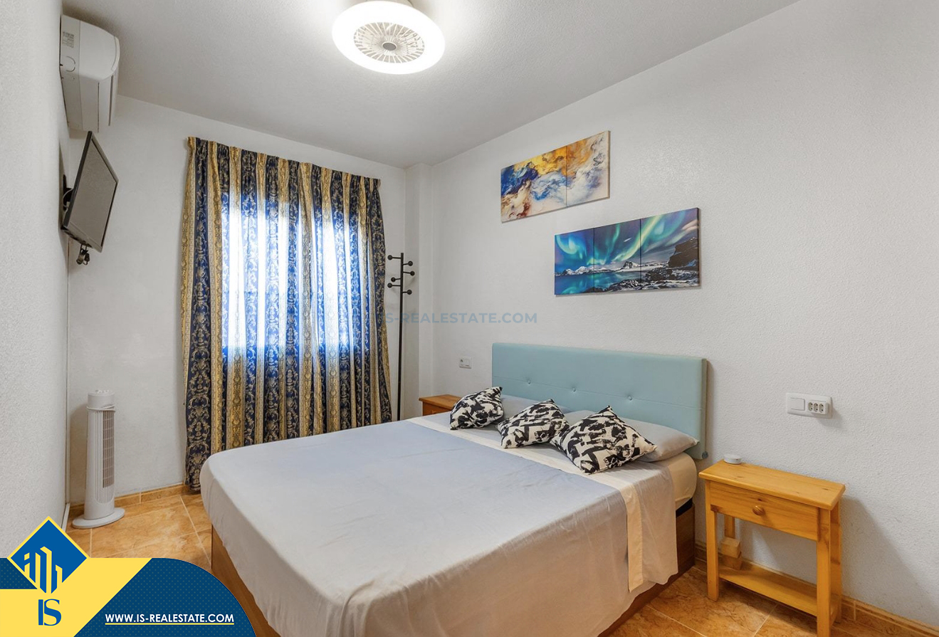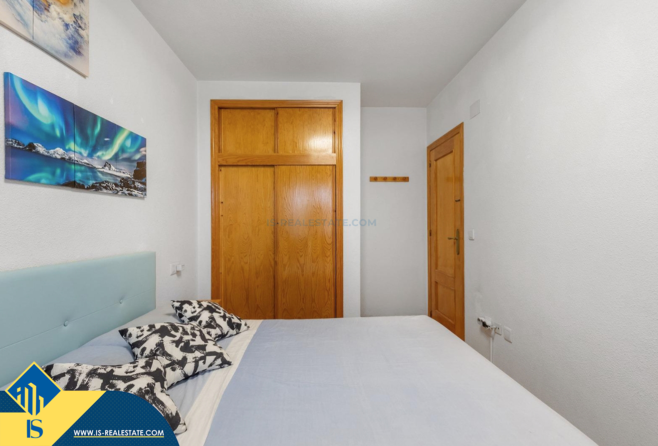 3-jų kambarių apartamentas su bendru baseinu, Ispanijoje, Alicante provincijoje, Torrevieja mieste, bendras plotas 58 m², 650 metrų iki jūros, 45 kilometrai iki Alicante oro uosto. Turtui priklauso bendras baseinas, terasa, liftas, garažas. Netoli turto yra parduotuvės, restoranai, vaistinės, autobusų stotelės, degalinės, žalios zonos, kavinės