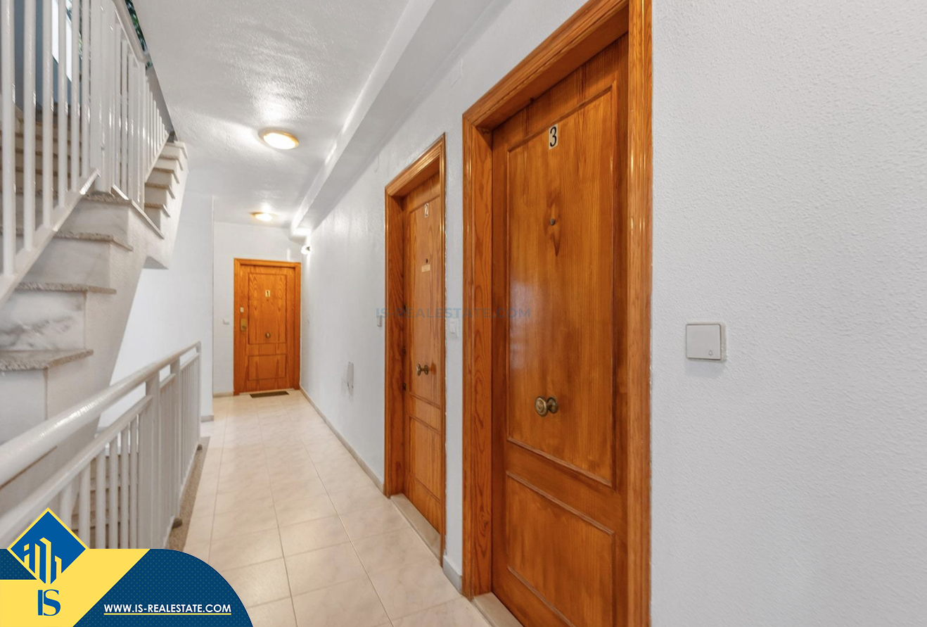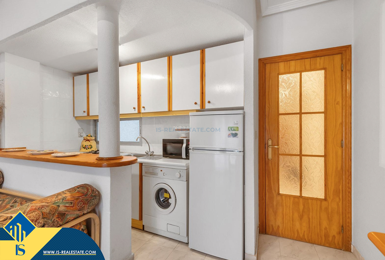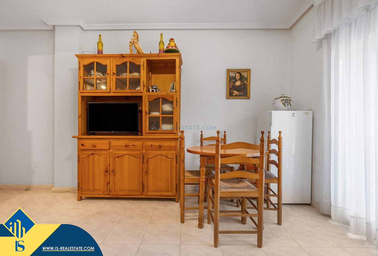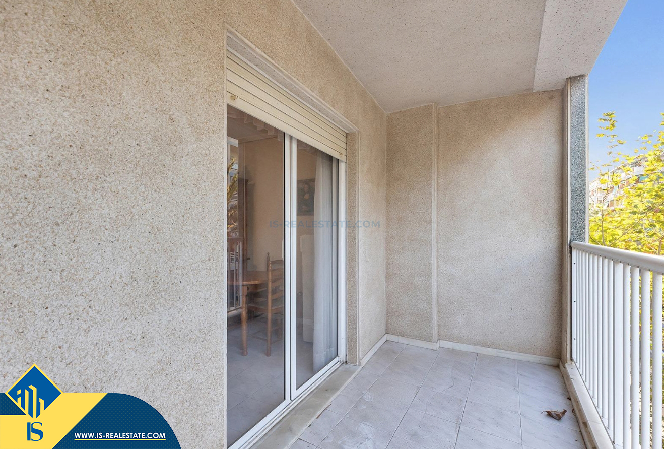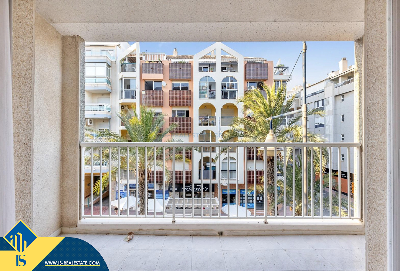 2-jų kambarių apartamentas su terasa, Ispanijoje, Alicante provincijoje, Torrevieja mieste, bendras plotas 60 m², 400 metrų iki jūros, 45 kilometrai iki Alicante oro uosto. Turtui priklauso terasa, liftas. Netoli turto yra parduotuvės, restoranai, vaistinės, autobusų stotelės, degalinės, žalios zonos, kavinės