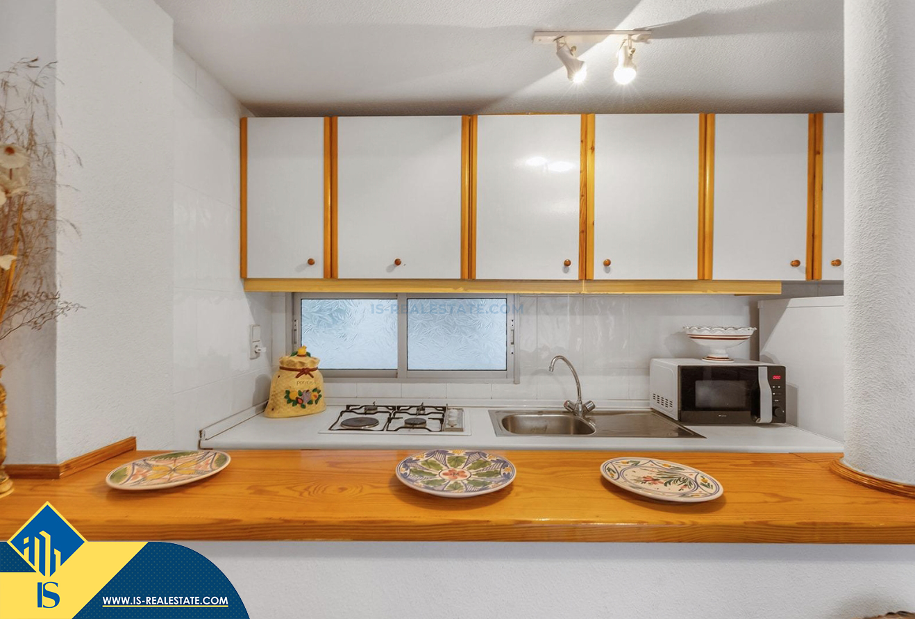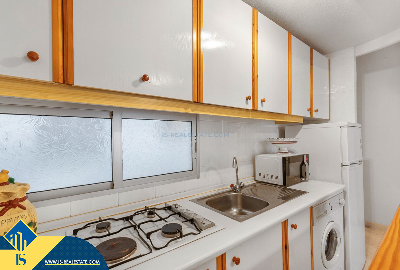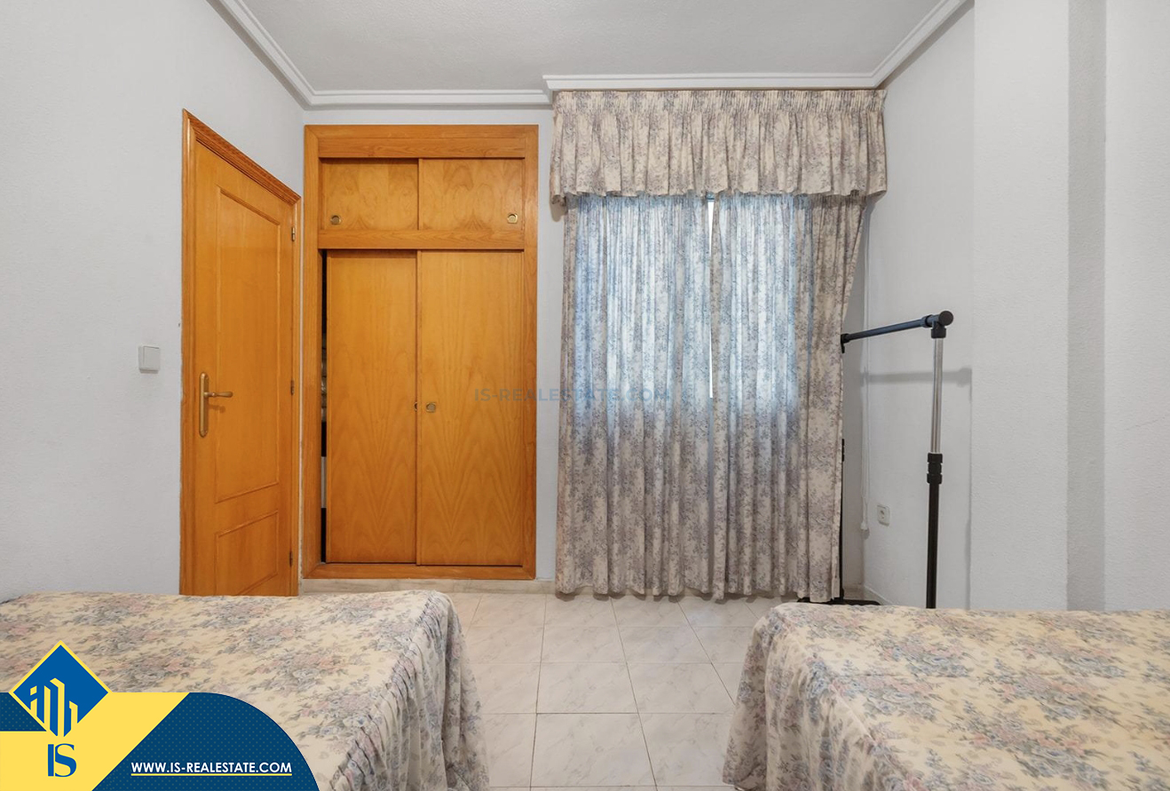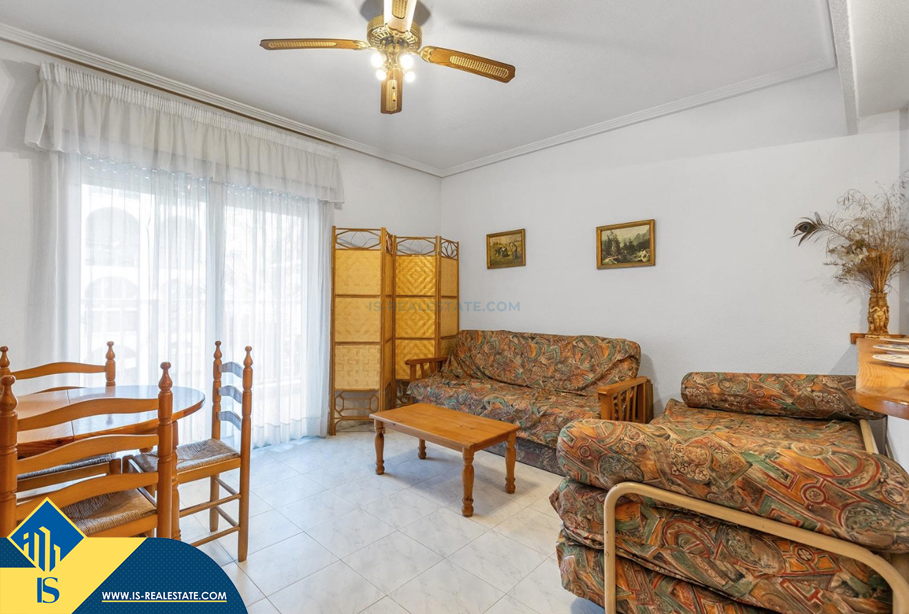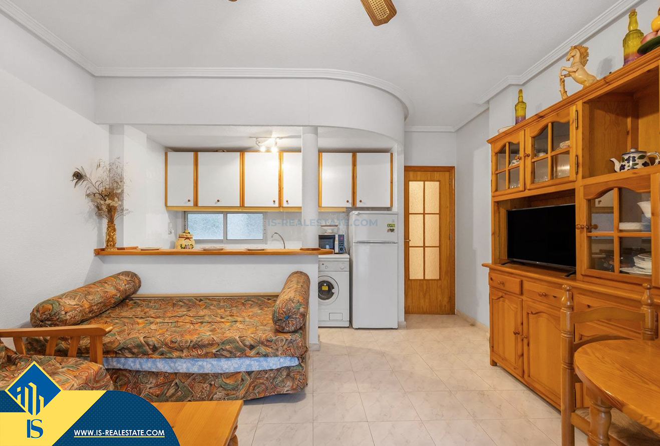 2-jų kambarių apartamentas su terasa, Ispanijoje, Alicante provincijoje, Torrevieja mieste, bendras plotas 60 m², 400 metrų iki jūros, 45 kilometrai iki Alicante oro uosto. Turtui priklauso terasa, liftas. Netoli turto yra parduotuvės, restoranai, vaistinės, autobusų stotelės, degalinės, žalios zonos, kavinės