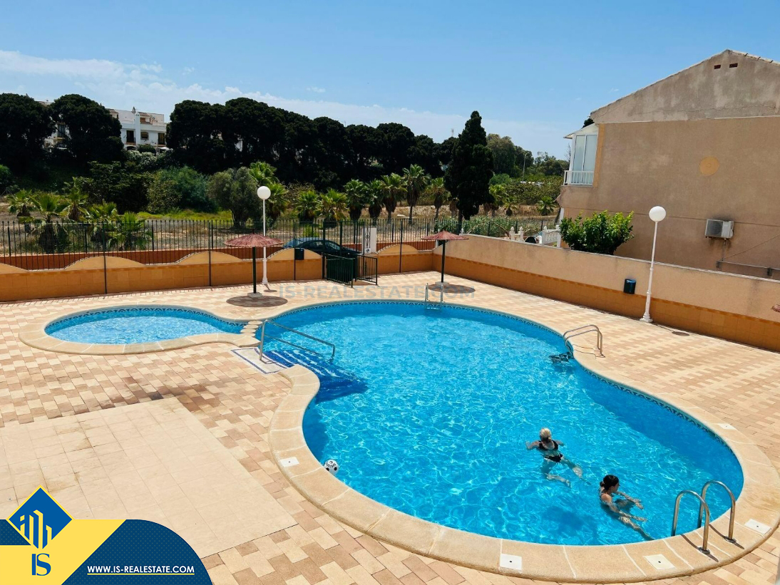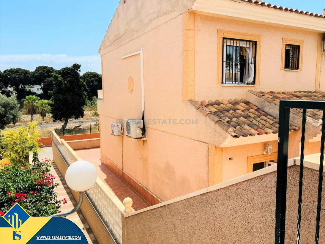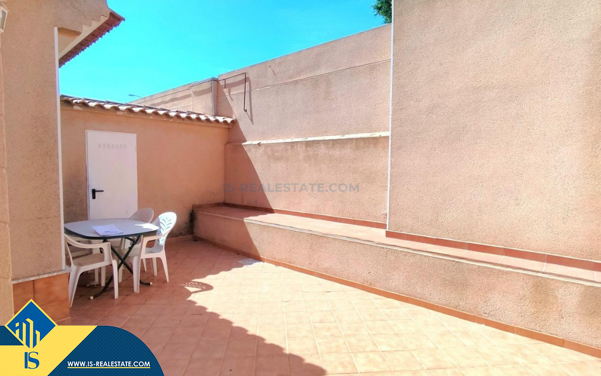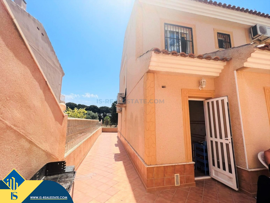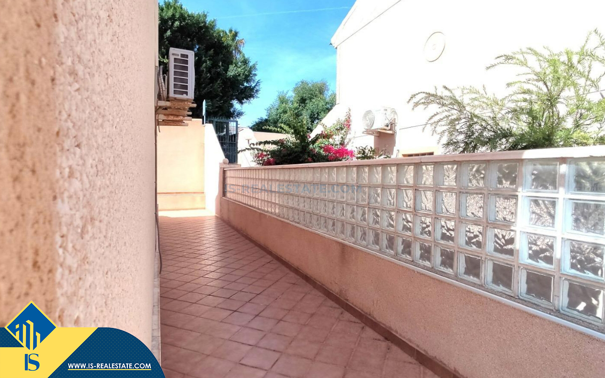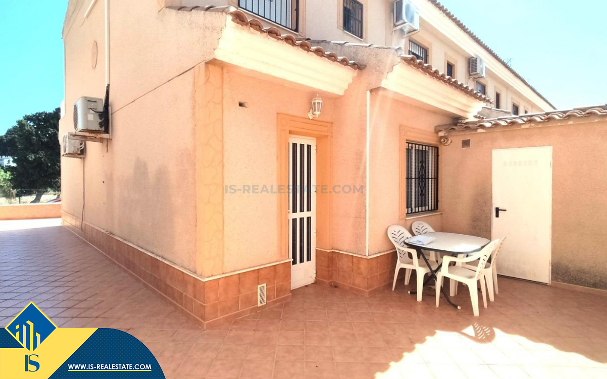 4-ių kambarių namas su bendru baseinu, Ispanijoje, Alicante provincijoje, Torrevieja mieste, bendras plotas 87 m², 1.6 kilometro iki jūros, 45 kilometrai iki Alicante oro uosto. Turtui priklauso bendras baseinas, terasa, vieta automobiliui, privatus kiemas. Netoli turto yra parduotuvės, restoranai, autobusų stotelės, vaikų zonos, degalinės, žalios zonos, kavinės, vaistinės