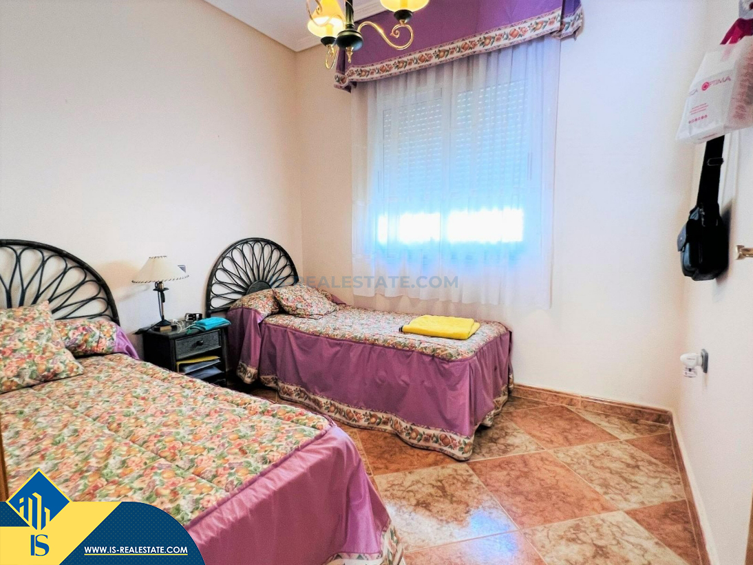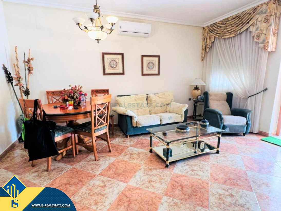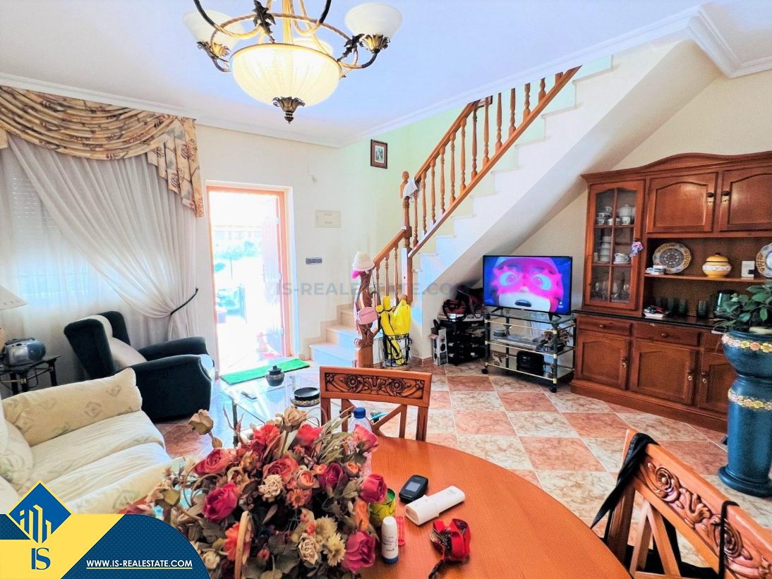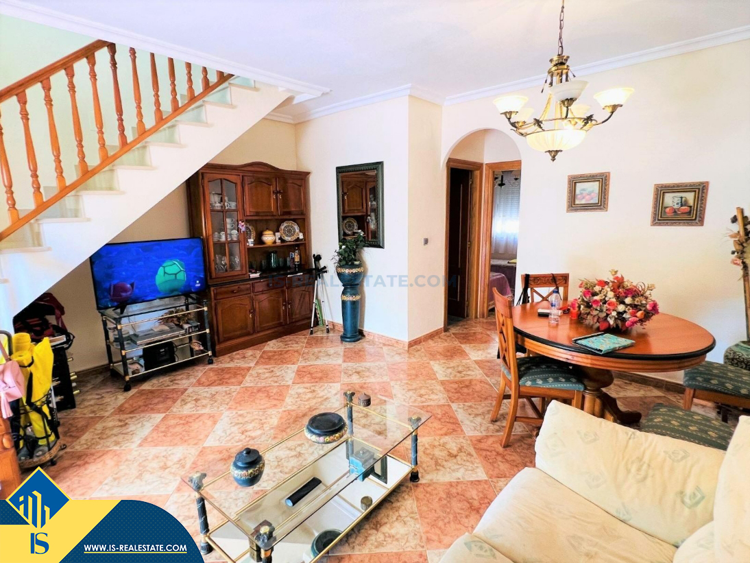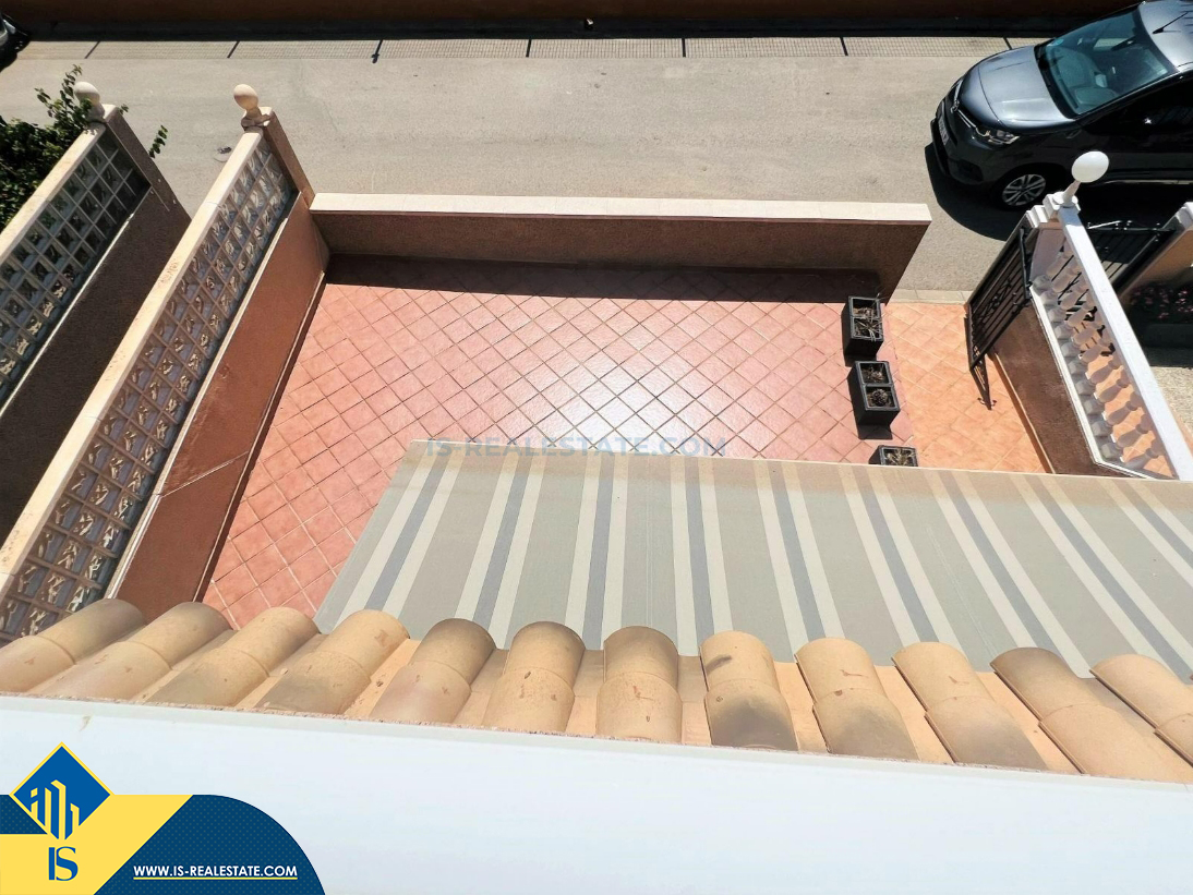 4-ių kambarių namas su bendru baseinu, Ispanijoje, Alicante provincijoje, Torrevieja mieste, bendras plotas 87 m², 1.6 kilometro iki jūros, 45 kilometrai iki Alicante oro uosto. Turtui priklauso bendras baseinas, terasa, vieta automobiliui, privatus kiemas. Netoli turto yra parduotuvės, restoranai, autobusų stotelės, vaikų zonos, degalinės, žalios zonos, kavinės, vaistinės