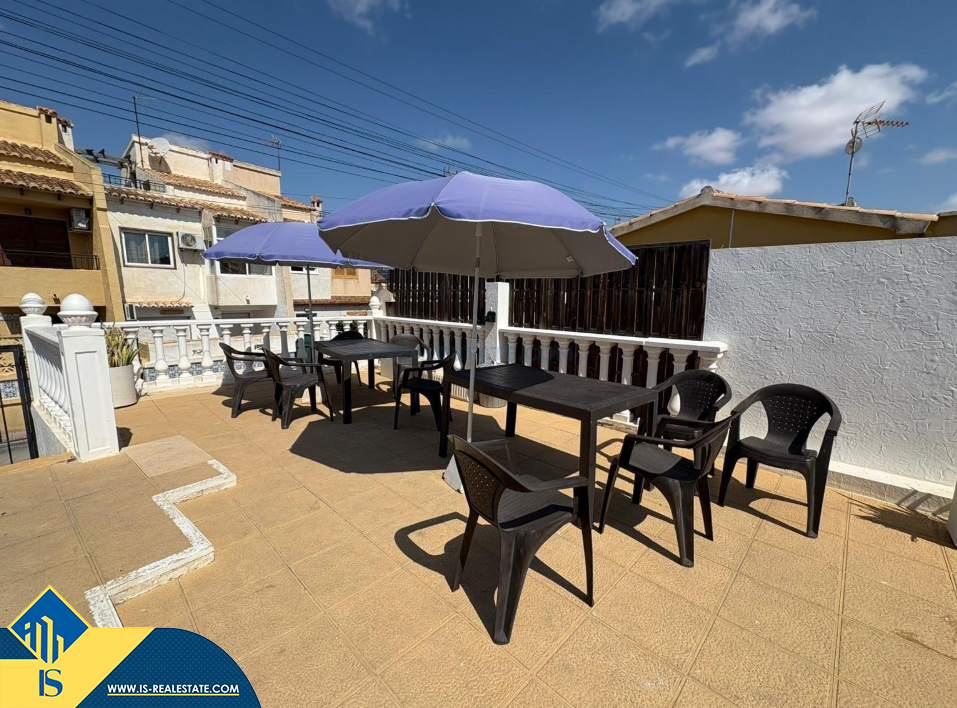 4-ių kambarių namas su bendru baseinu, Ispanijoje, Alicante provincijoje, Torrevieja mieste, Los Balcones rajone, bendras plotas 78 m², 2 kilometrai iki jūros, 45 kilometrai iki Alicante oro uosto. Turtui priklauso bendras baseinas, terasa. Netoli turto yra parduotuvės, restoranai, autobusų stotelės, vaikų zonos, degalinės, žalios zonos, kavinės