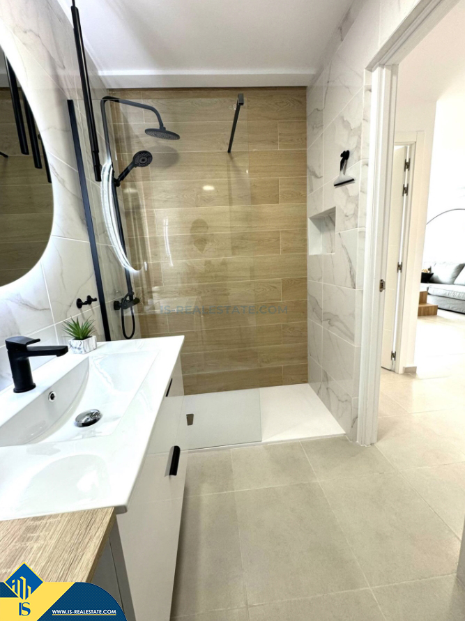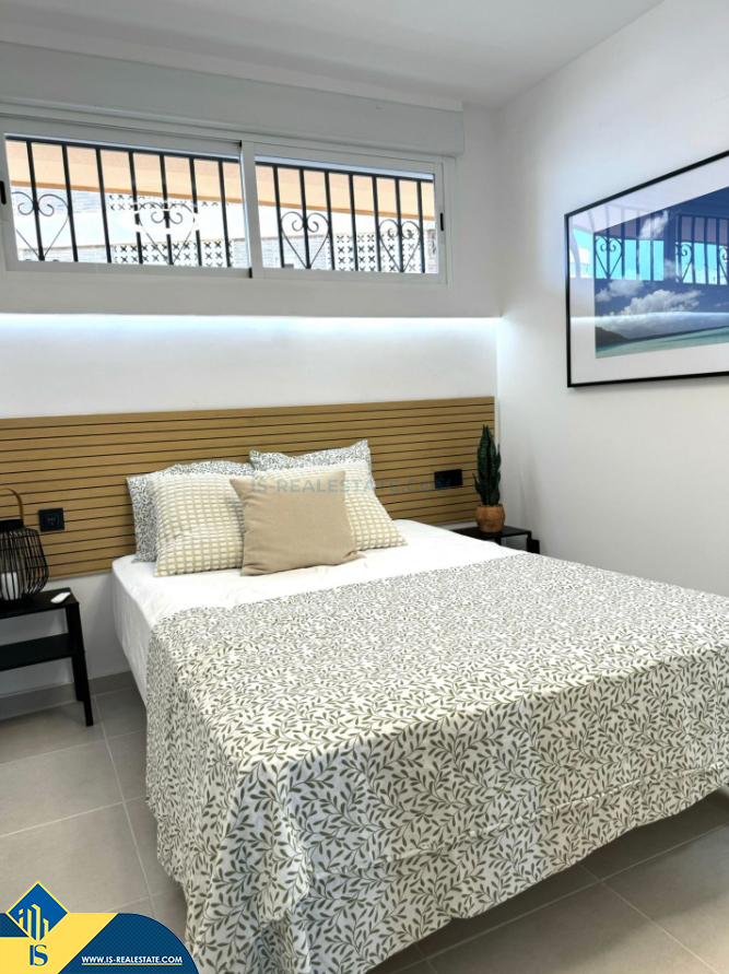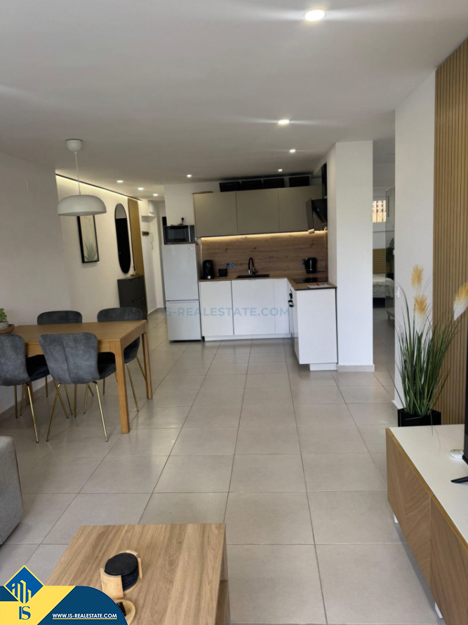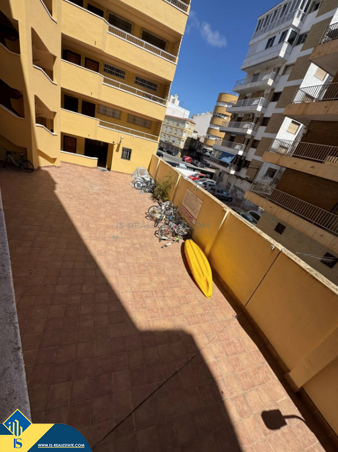 4-ių kambarių renovuotas apartamentas su terasa, Ispanijoje, Alicante provincijoje, Torrevieja mieste, bendras plotas 88 m², 200 metrų iki jūros, 45 kilometrai iki Alicante oro uosto. Turtui priklauso terasa, liftas. Netoli turto yra parduotuvės, restoranai, vaistinės, autobusų stotelės, degalinės, žalios zonos, kavinės
