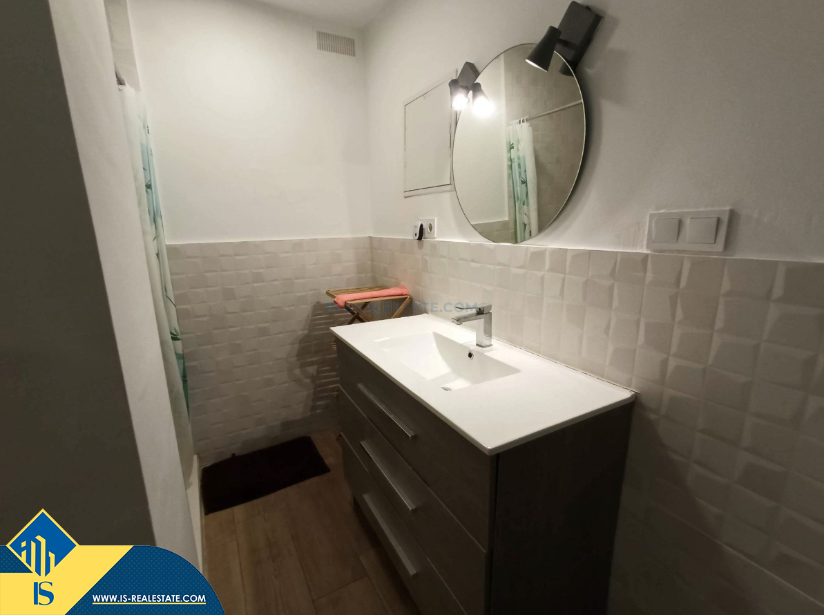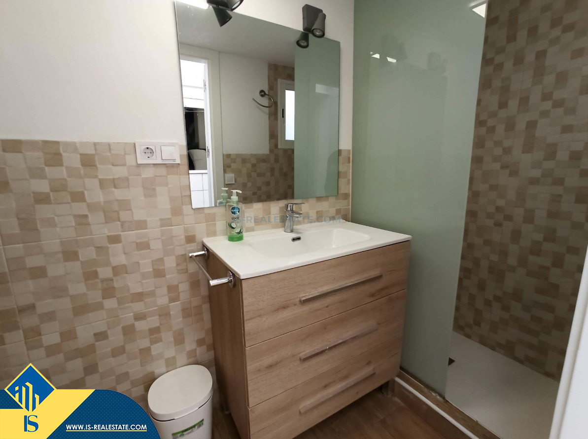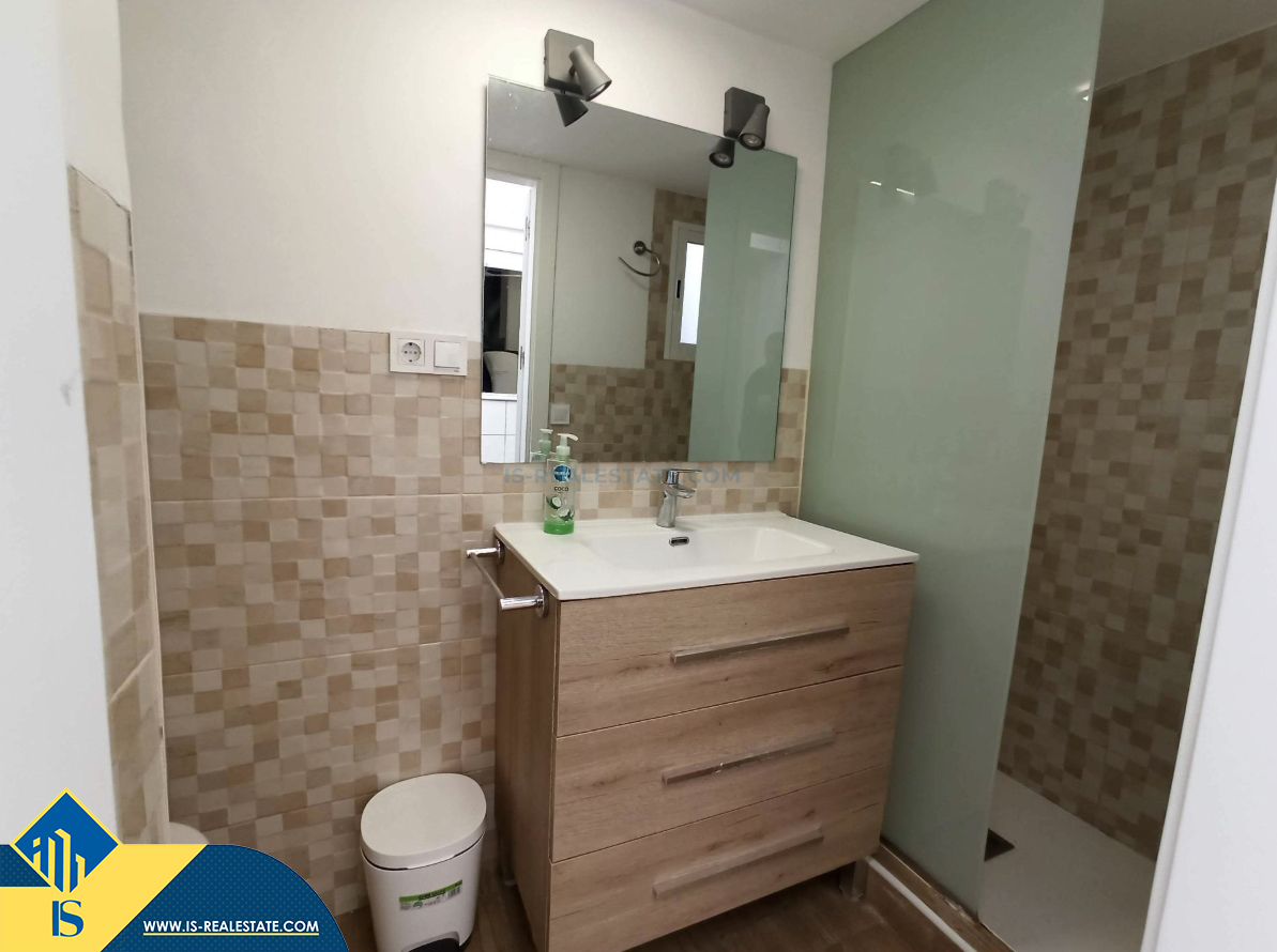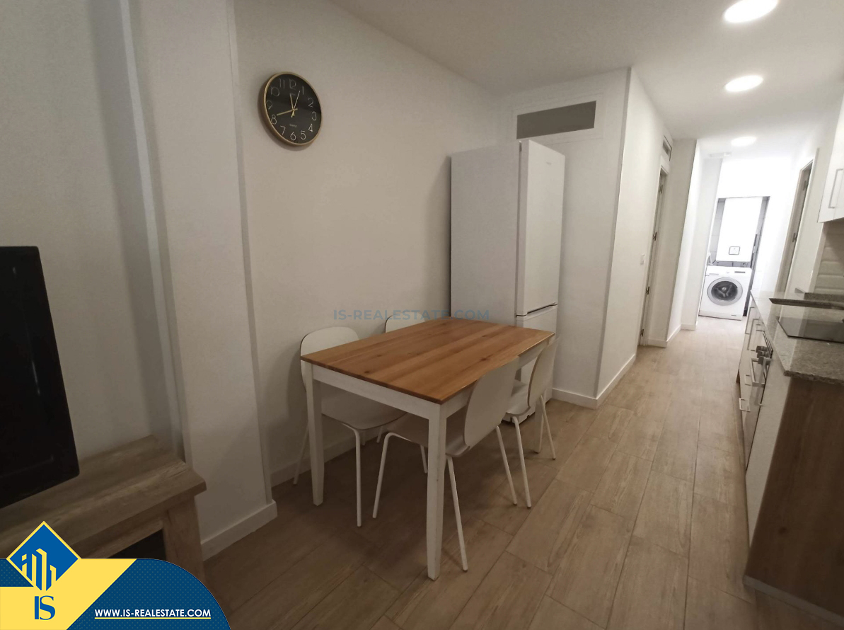 3-jų kambarių renovuotas apartamentas su kiemeliu, Ispanijoje, Alicante provincijoje, Elche mieste, bendras plotas 50 m², 14 kilometrų iki jūros, 14 kilometrų iki oro uosto. Turtui priklauso kiemelis. Netoli turto yra parduotuvės, restoranai, autobusų stotelės, degalinės, žalios zonos, kavinės, mokyklos