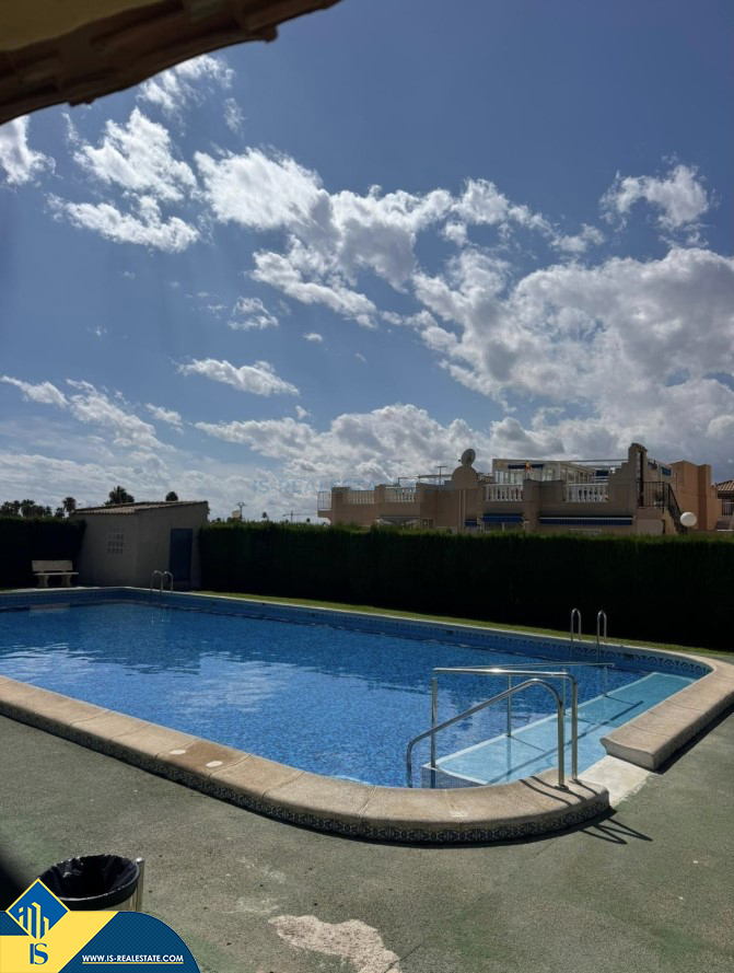 4-ių kambarių namas su bendru baseinu, Ispanijoje, Alicante provincijoje, Torrevieja mieste, Torreta rajone, bendras plotas 71 m², 4 kilometrai iki jūros, 45 kilometrai iki Alicante oro uosto. Turtui priklauso bendras baseinas, terasa, privatus kiemas. Netoli turto yra parduotuvės, restoranai, autobusų stotelės, vaikų zonos, degalinės, žalios zonos, kavinės, vaistinės