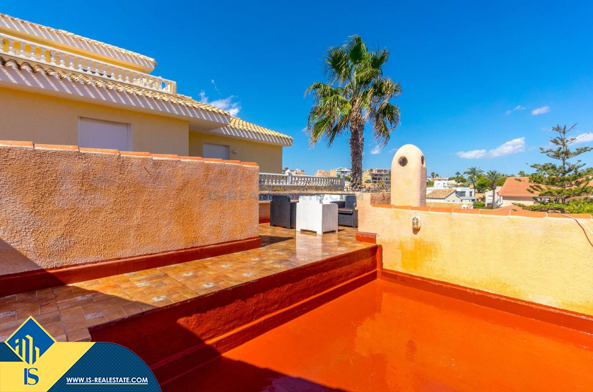 4-ių kambarių vila, Ispanijoje, Alicante provincijoje, Orihuela Costa mieste, 300 metrų iki jūros, bendras plotas 245 m², 55 kilometrai iki Alicante miesto oro uosto. Turtui priklauso privatus baseinas, terasa, vieta automobiliui. Netoli turto yra parduotuvės, restoranai, autobusų stotelės, vaikų zonos, degalinės, žalios zonos, kavinės, ligoninė