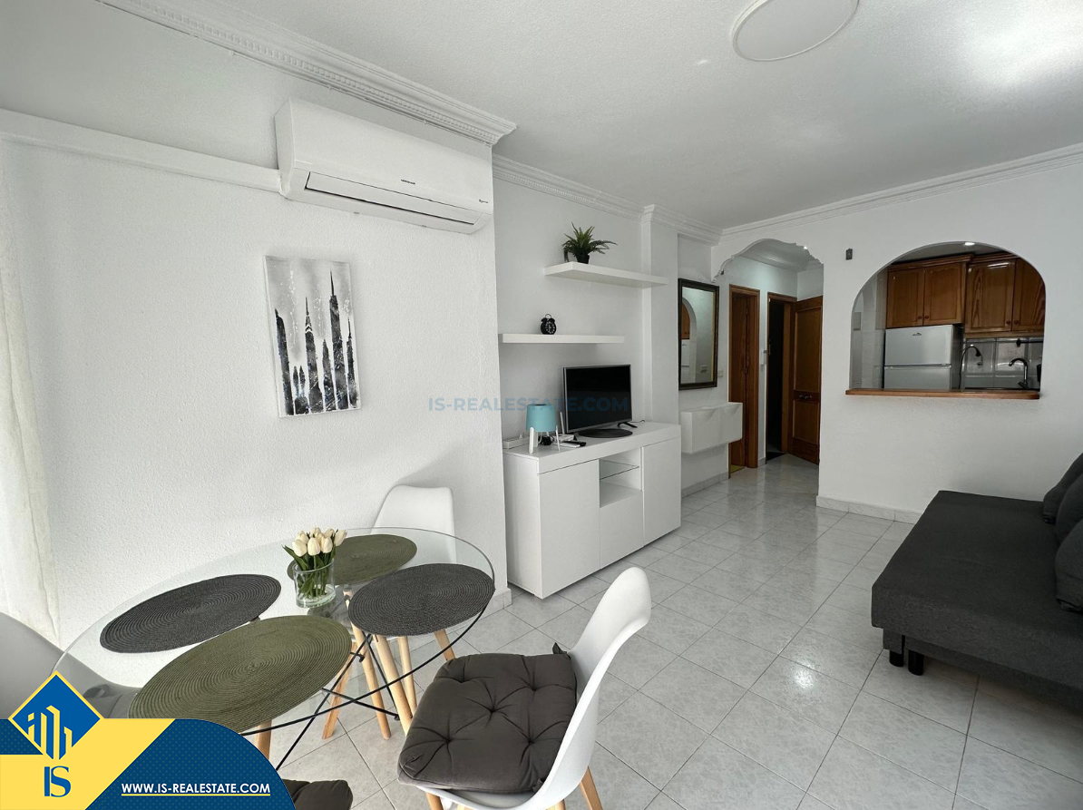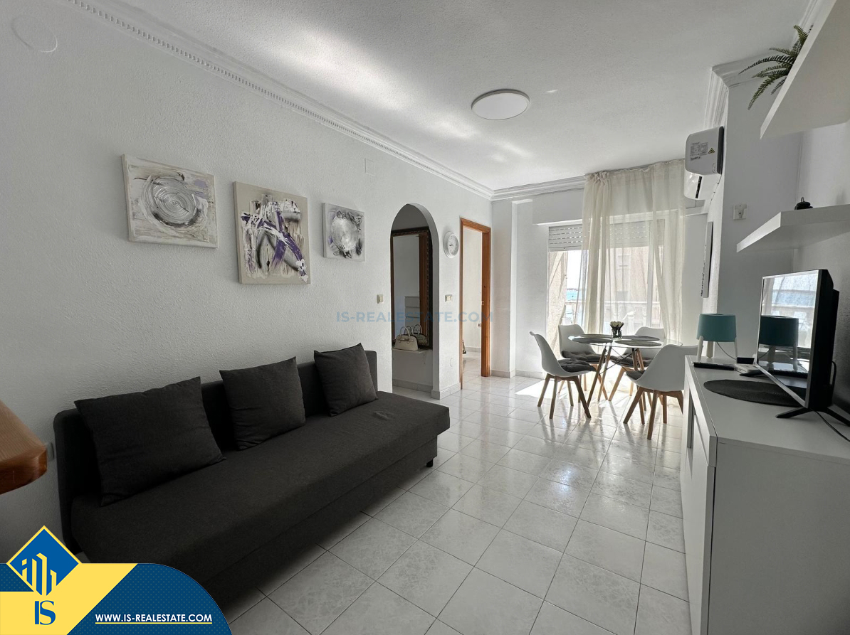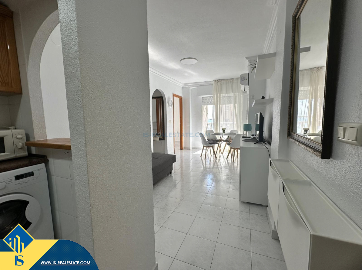 4-ių kambarių apartamentas su terasa, Ispanijoje, Alicante provincijoje, Torrevieja mieste, Playa del Acequión rajone, bendras plotas 56 m², 50 metrų iki jūros, 45 kilometrai iki Alicante oro uosto. Turtui priklauso terasa, balkonas, liftas. Netoli turto yra parduotuvės, restoranai, vaistinės, autobusų stotelės, degalinės, žalios zonos, kavinės