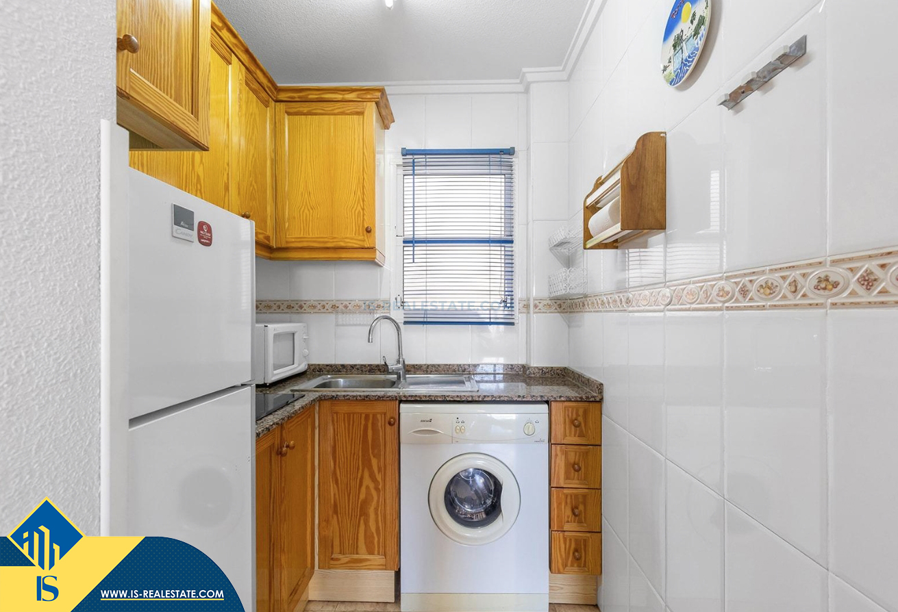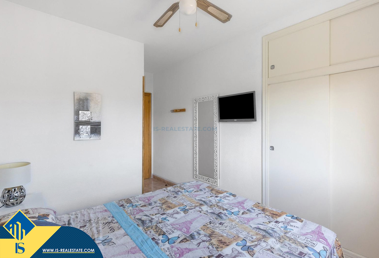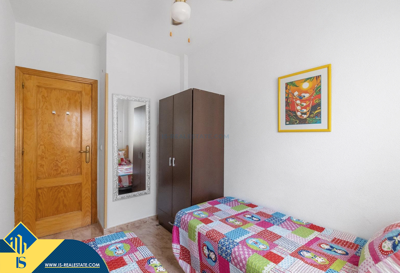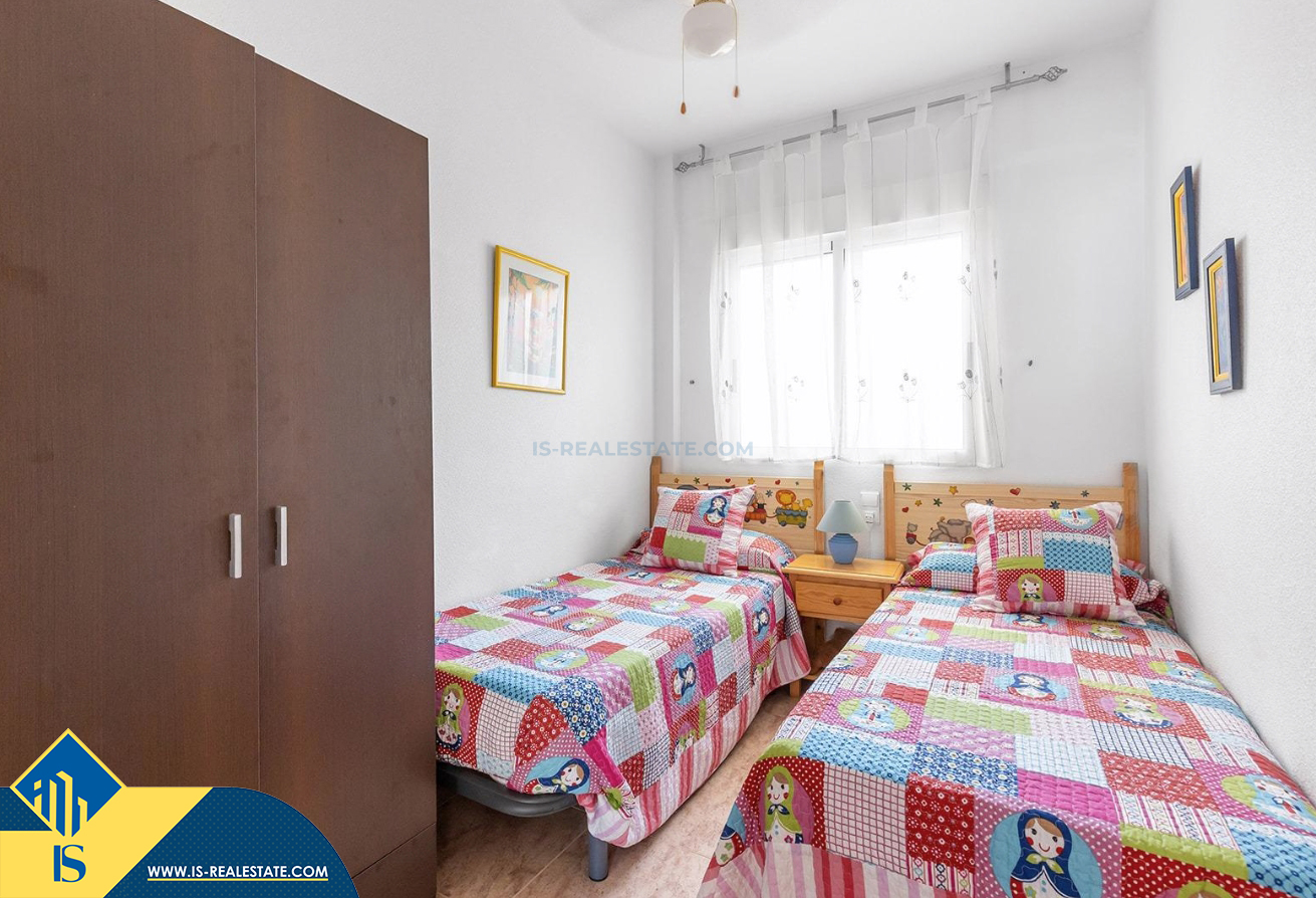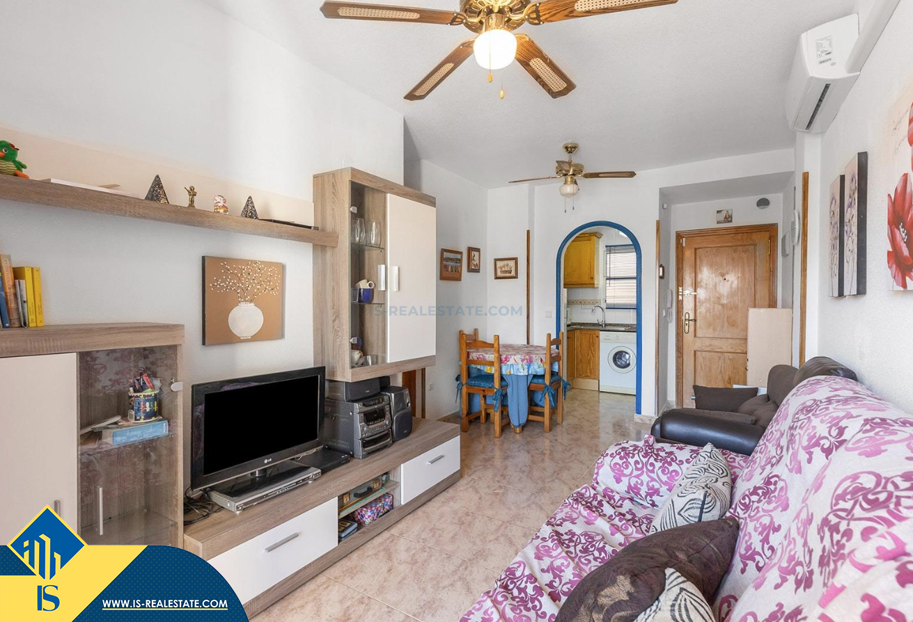3-jų kambarių apartamentas su bendru baseinu, Ispanijoje, Alicante provincijoje, Torrevieja mieste, bendras plotas 51 m², 900 metrų iki jūros, 45 kilometrai iki Alicante oro uosto. Turtui priklauso bendras baseinas, terasa, liftas. Netoli turto yra parduotuvės, restoranai, vaistinės, autobusų stotelės, degalinės, žalios zonos, kavinės