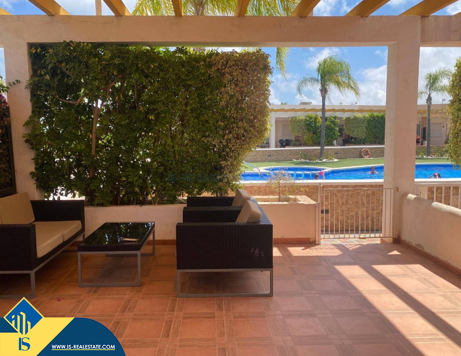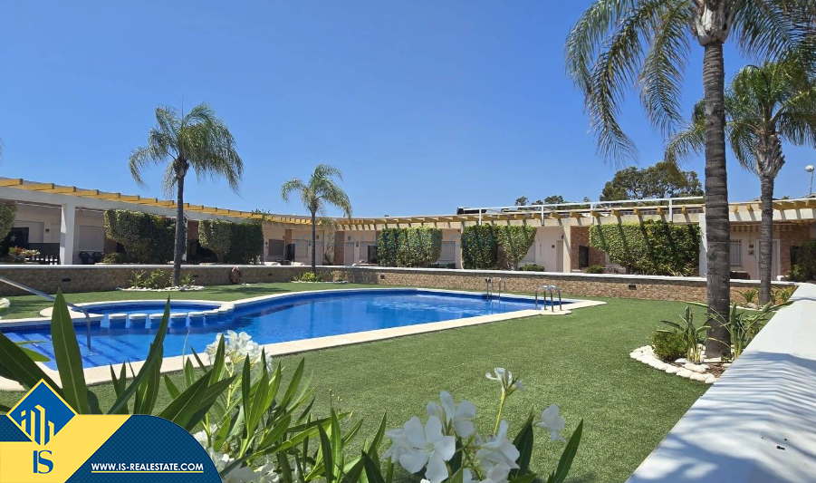 3-jų kambarių namas su bendru baseinu, Ispanijoje, Alicante provincijoje, Orihuela Costa mieste, bendras plotas 65 m², 1 kilometras iki jūros, 57 kilometrai iki Alicante oro uosto. Turtui priklauso bendras baseinas, terasa, garažas, sandėliukas. Netoli turto yra parduotuvės, restoranai, autobusų stotelės, vaikų zonos, degalinės, žalios zonos, kavinės, ligoninė