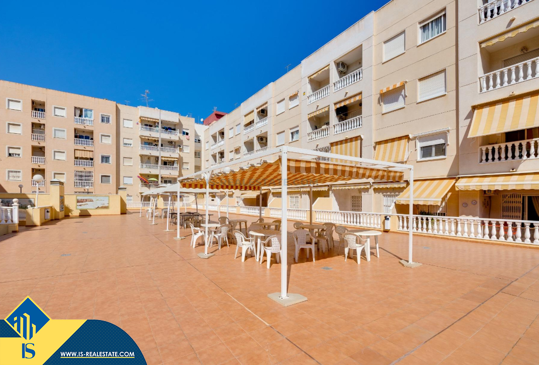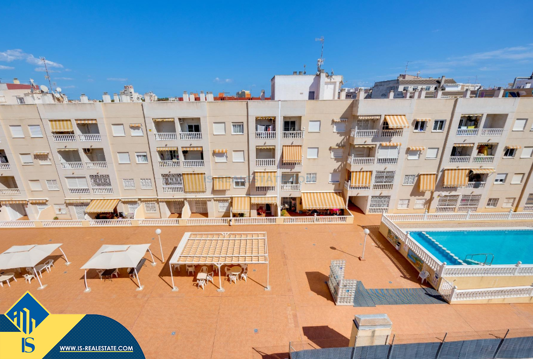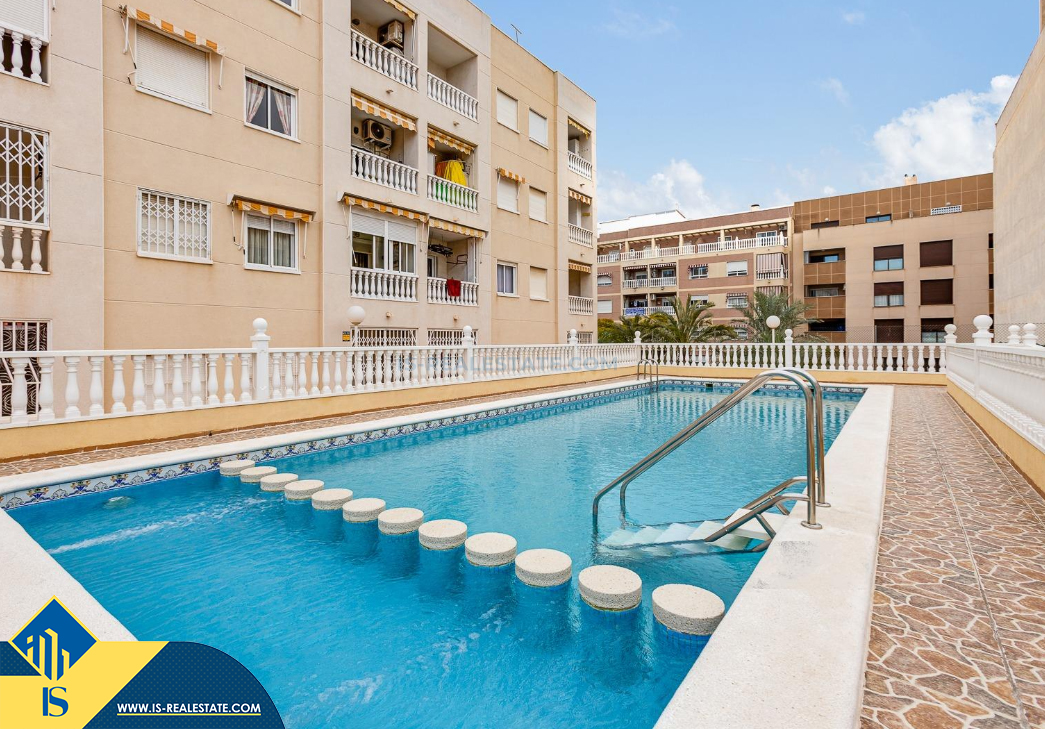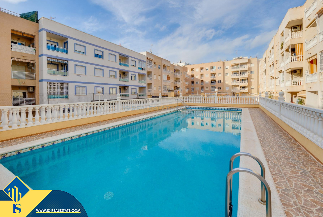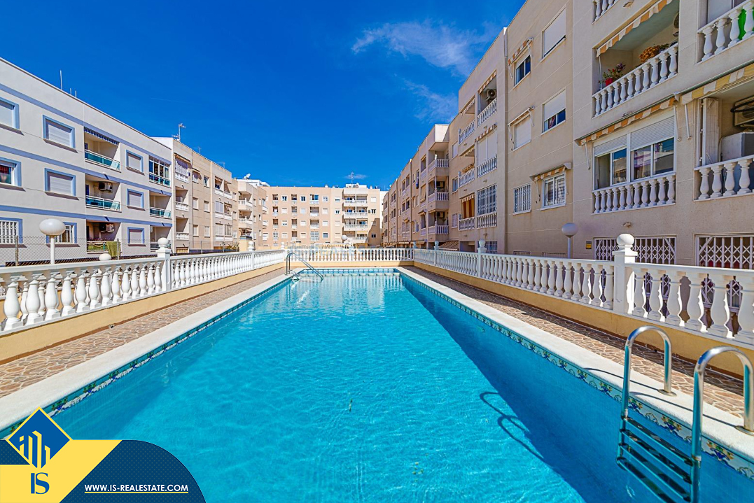 2-jų kambarių apartamentas su bendru baseinu, Ispanijoje, Alicante provincijoje, Torrevieja mieste, Playa del Cura rajone, bendras plotas 59 m², 900 metrų iki jūros, 45 kilometrai iki Alicante oro uosto. Turtui priklauso bendras baseinas, terasa, liftas, soliariumas. Netoli turto yra parduotuvės, restoranai, vaistinės, autobusų stotelės, degalinės, žalios zonos, kavinės, Habaneras alėja