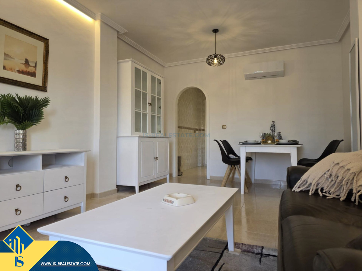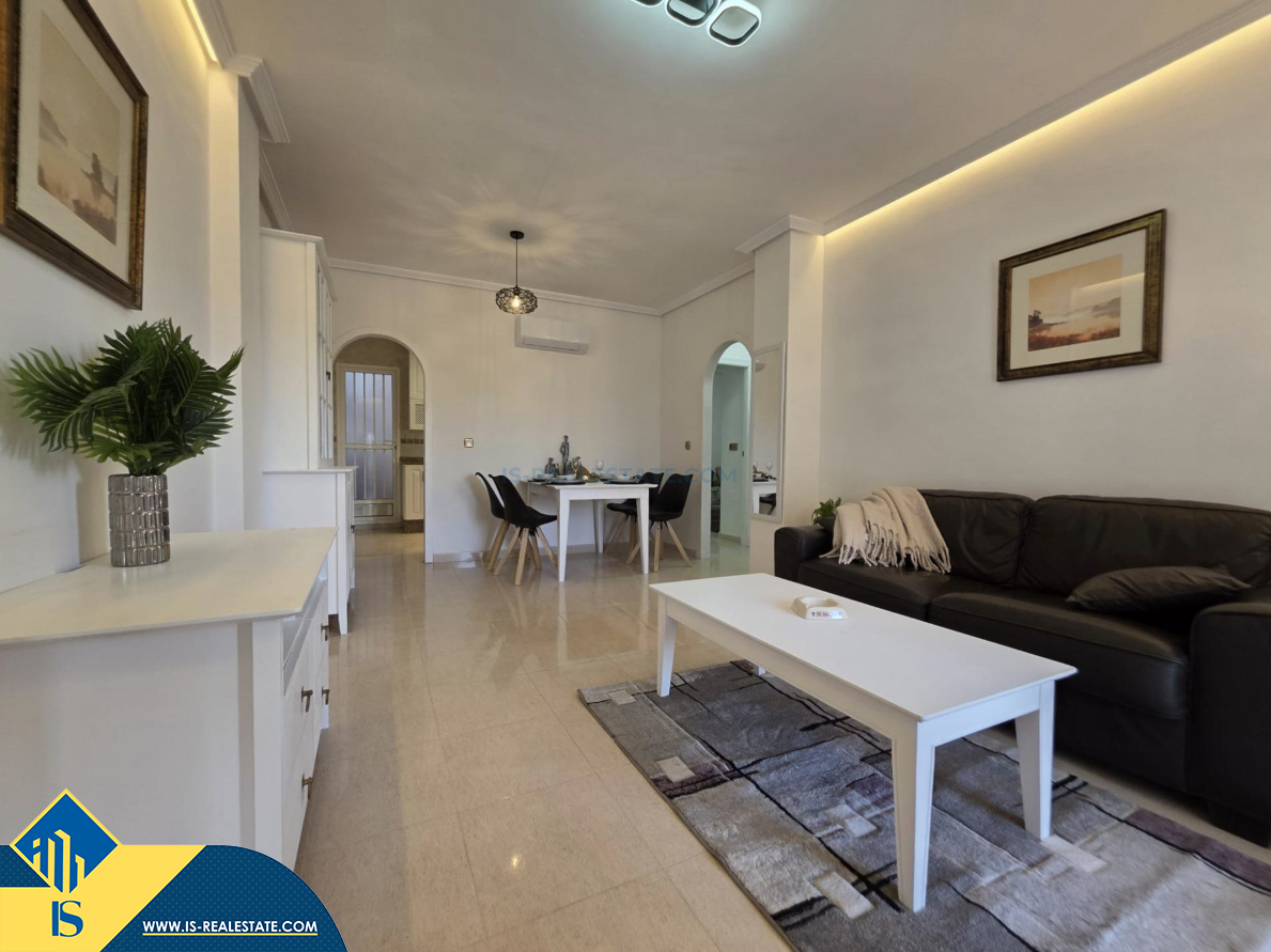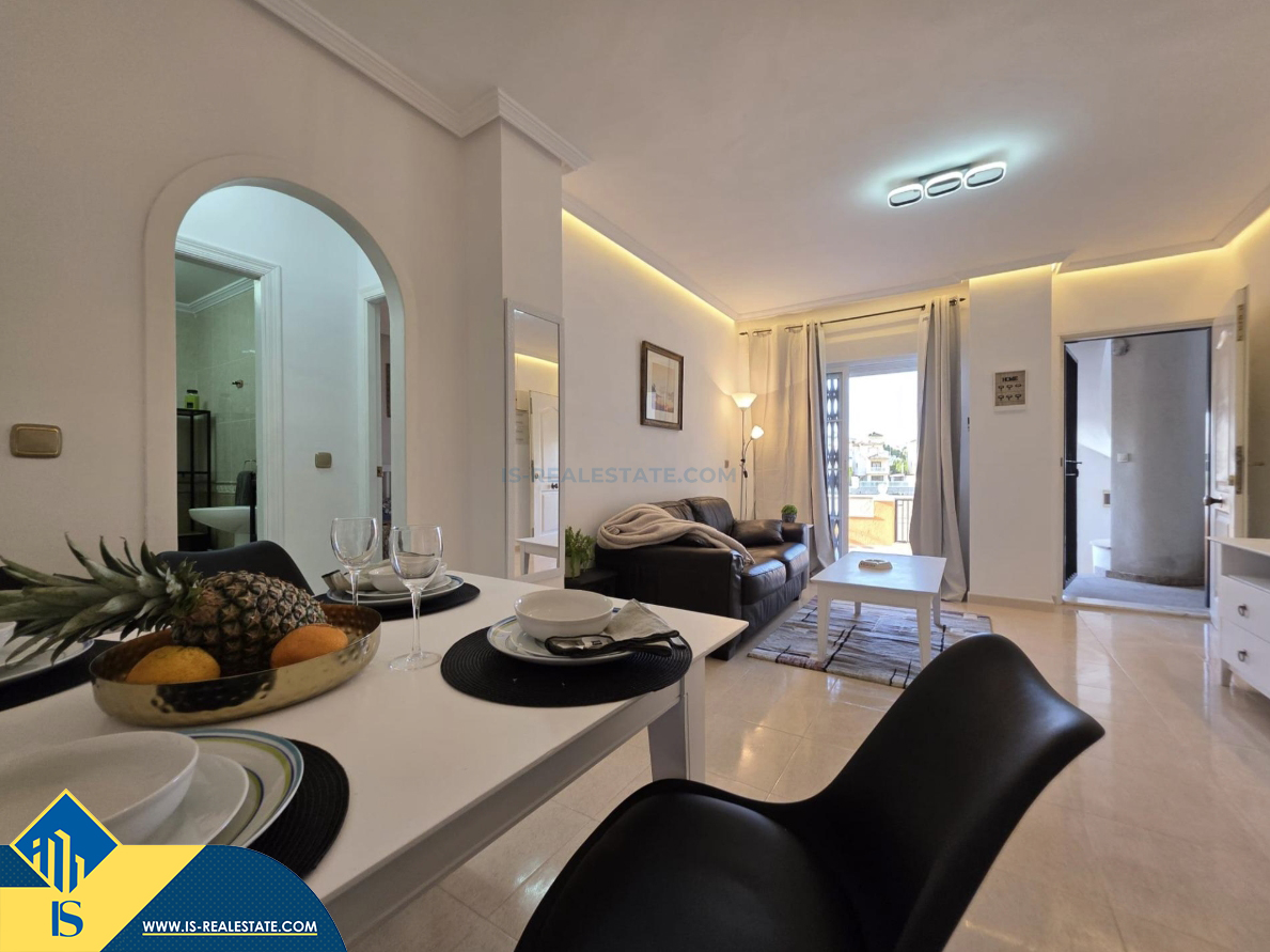 3-jų kambarių renovuotas apartamentas su terasa, Ispanijoje, Alicante provincijoje, Orihuela Costa mieste, bendras plotas 72 m², 3 kilometrai iki jūros, 57 kilometrai iki Alicante oro uosto. Turtui priklauso terasa. Netoli turto yra parduotuvės, restoranai, autobusų stotelės, vaikų zonos, degalinės, žalios zonos, kavinės, ligoninė